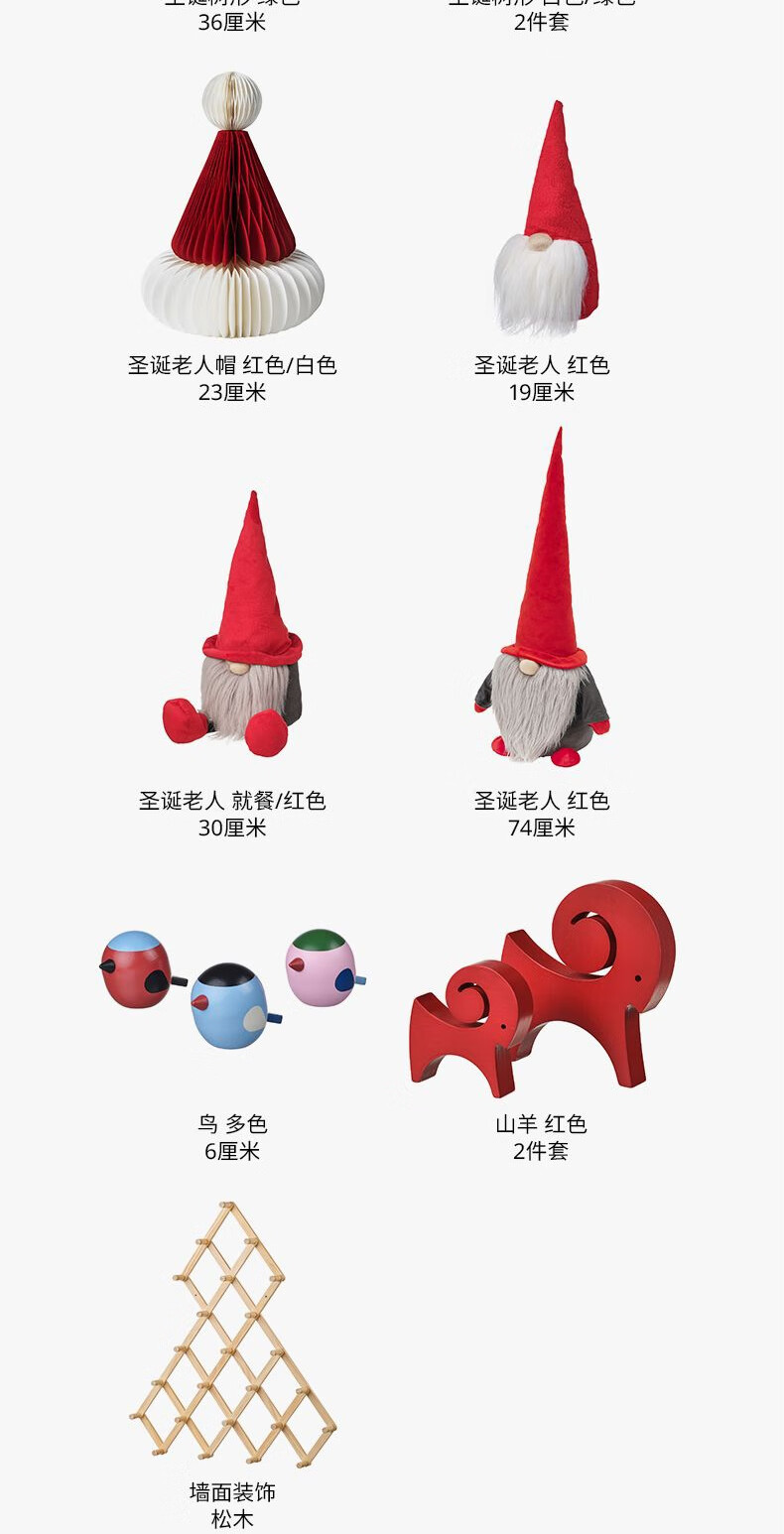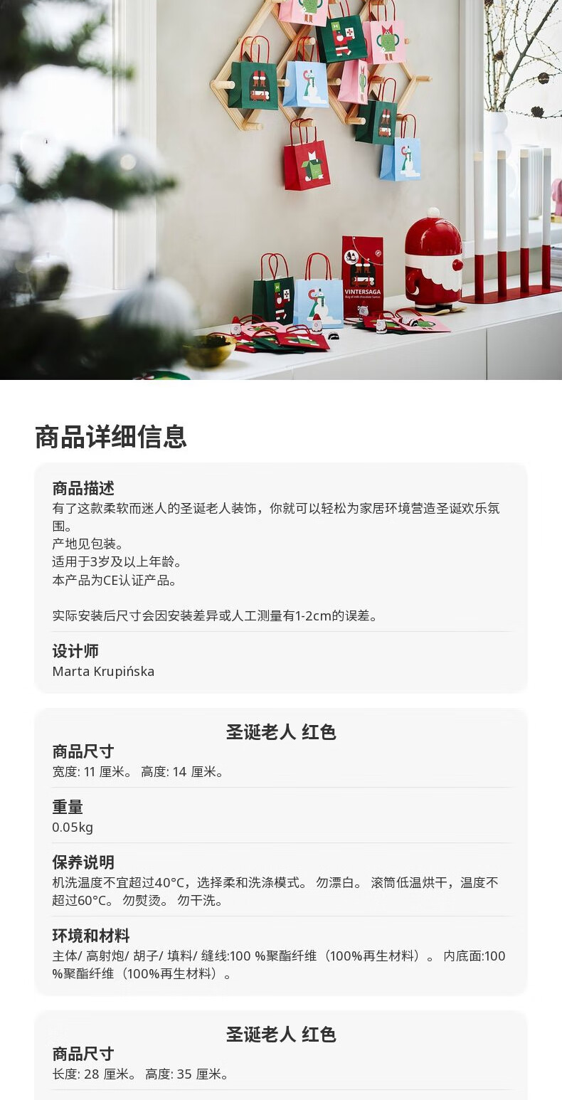 宜家(IKEA)【新品】VINTERFINT云芬特装饰品节日装饰圣诞老人公仔毛绒玩具 圣诞老人红色35cm