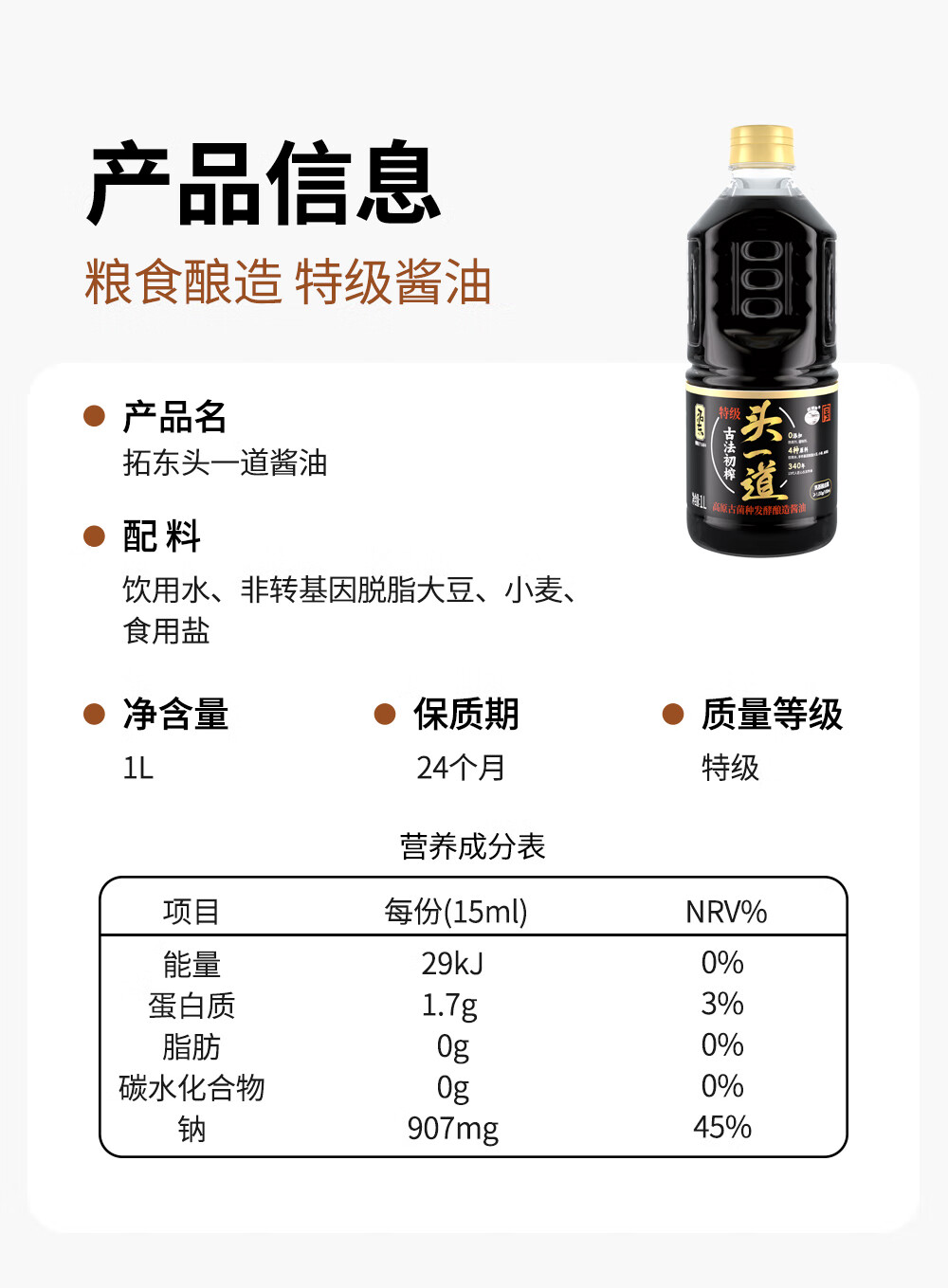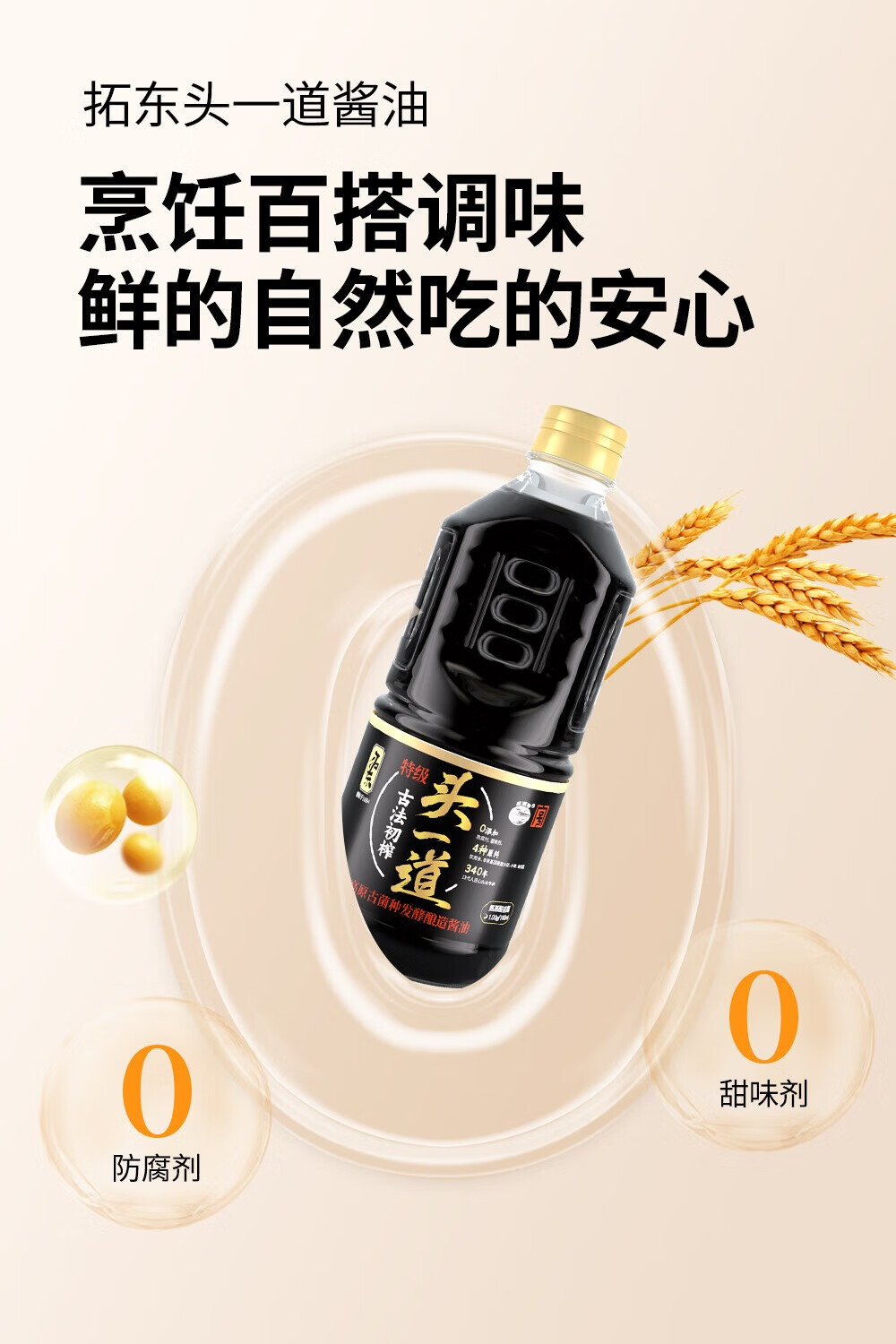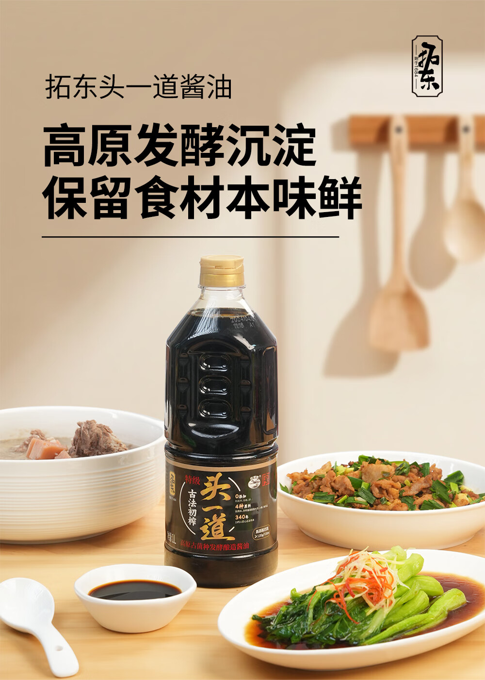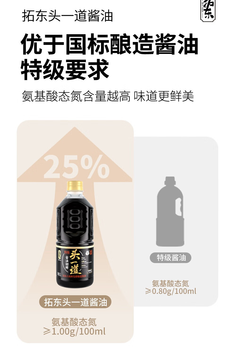 拓东【古法特级零添加】1L*1瓶特级头一道无糖酿造酱油生抽头抽原油