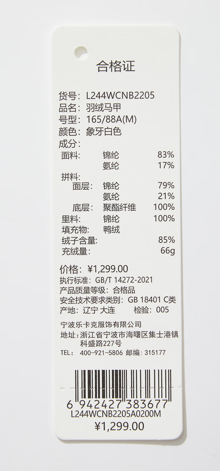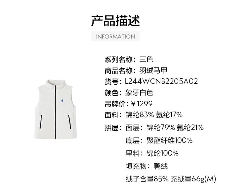 Le coq sportif乐卡克【三色】法国公鸡秋冬女款运动羽绒马甲L244WCNB2205
