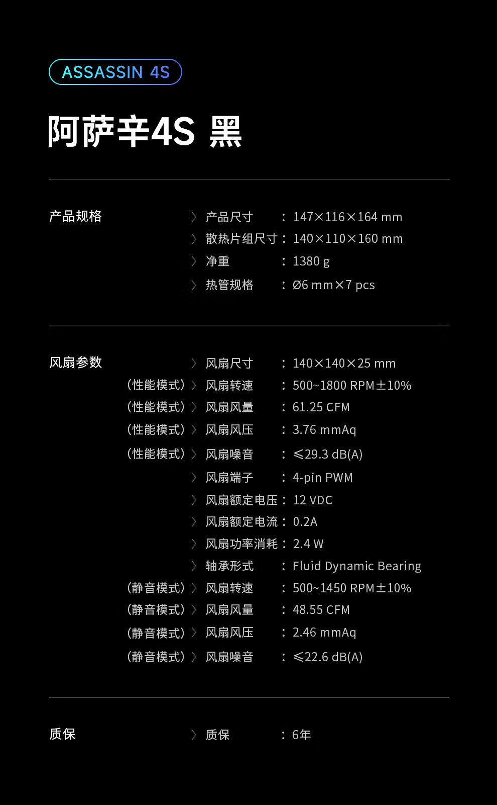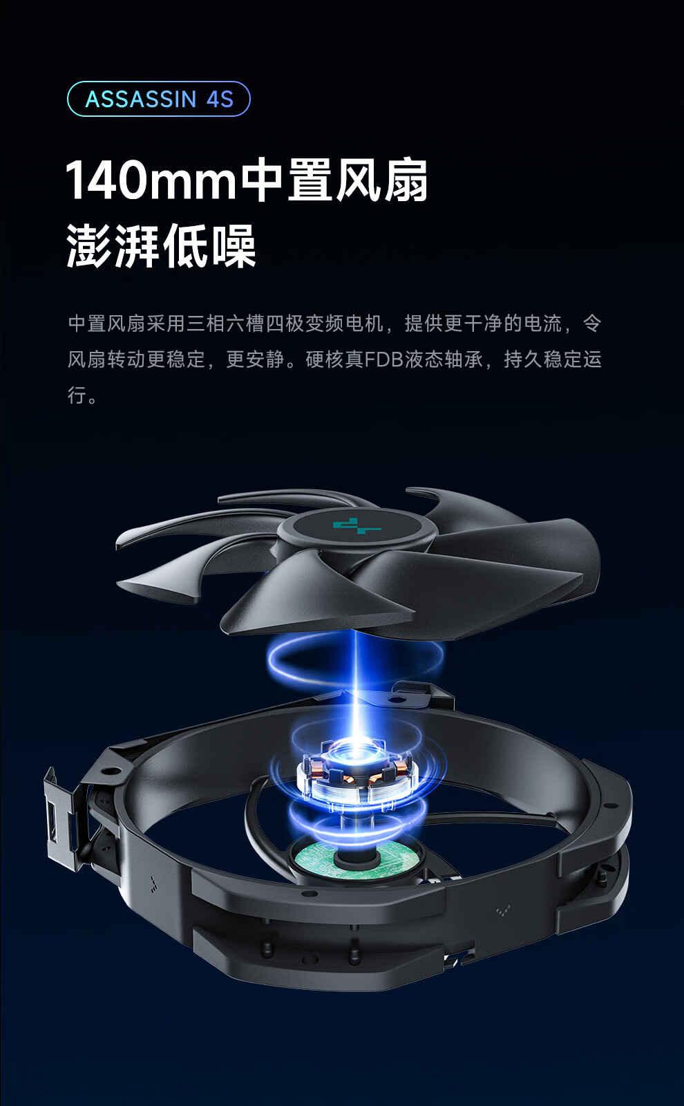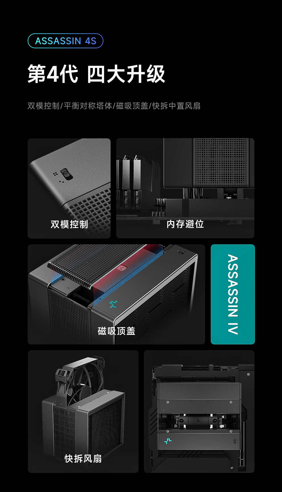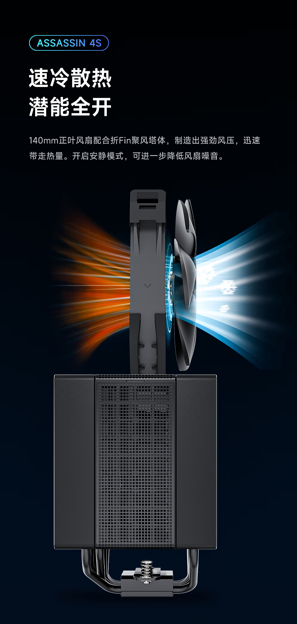九州风神(DEEPCOOL)阿萨辛4S风冷CPU散热器(7热管/双模式散热/内存全避位/快拆风扇/磁吸顶盖/附螺丝刀硅脂)