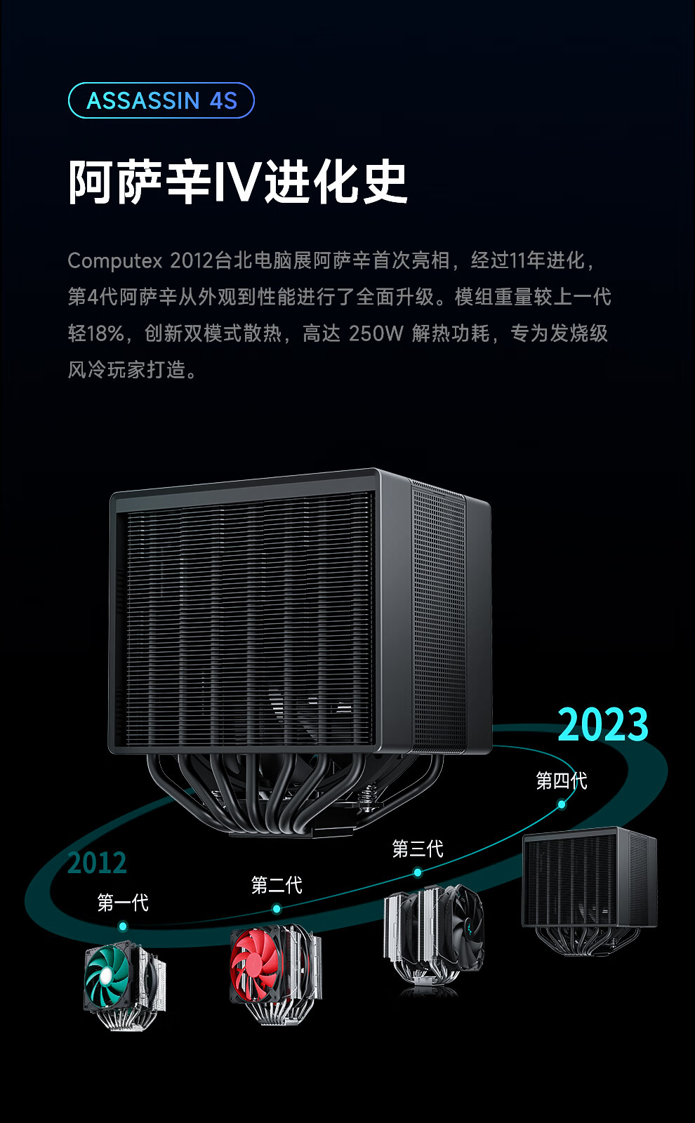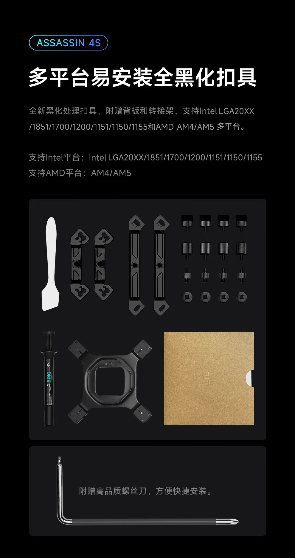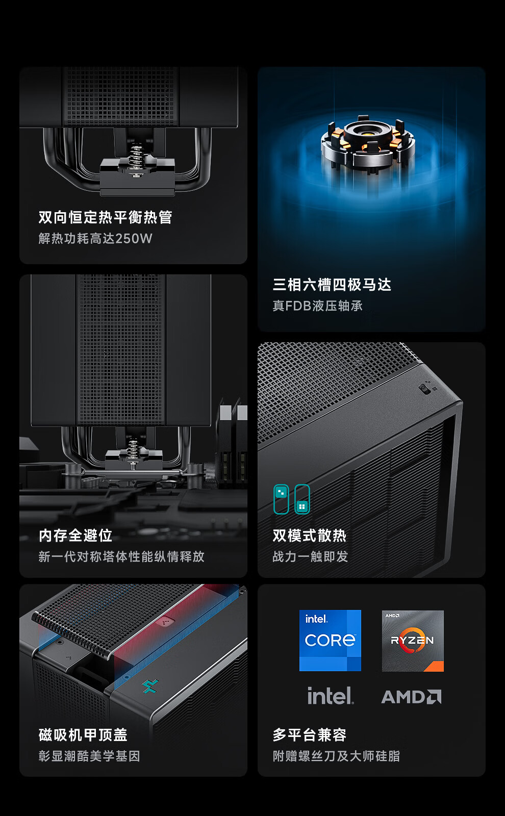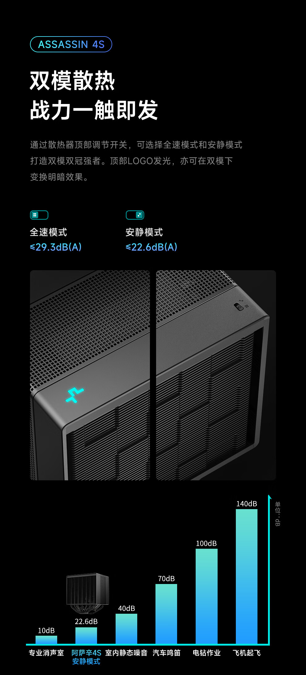 九州风神(DEEPCOOL)阿萨辛4S风冷CPU散热器(7热管/双模式散热/内存全避位/快拆风扇/磁吸顶盖/附螺丝刀硅脂)