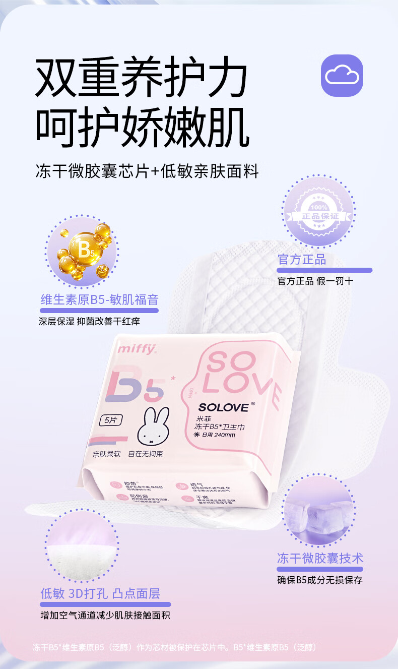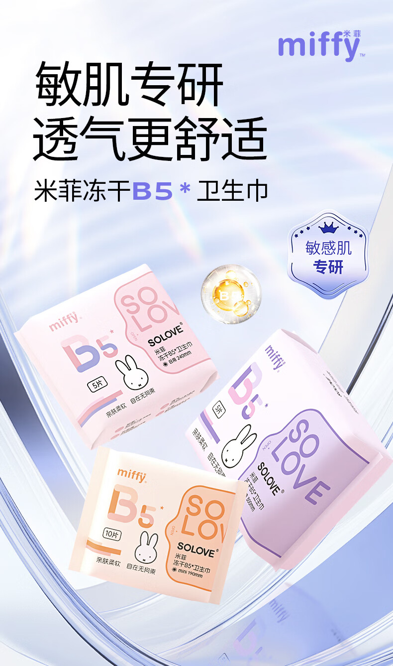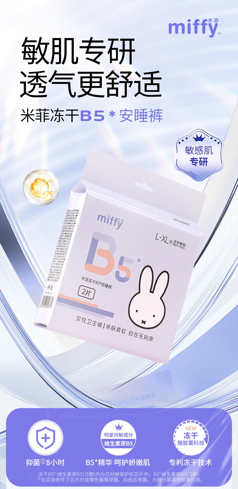 米菲Miffy日夜用卫生巾护垫透气学生安睡裤安心裤姨妈巾组合随心选 蚕丝日用卫生巾240mm【1包*8片】