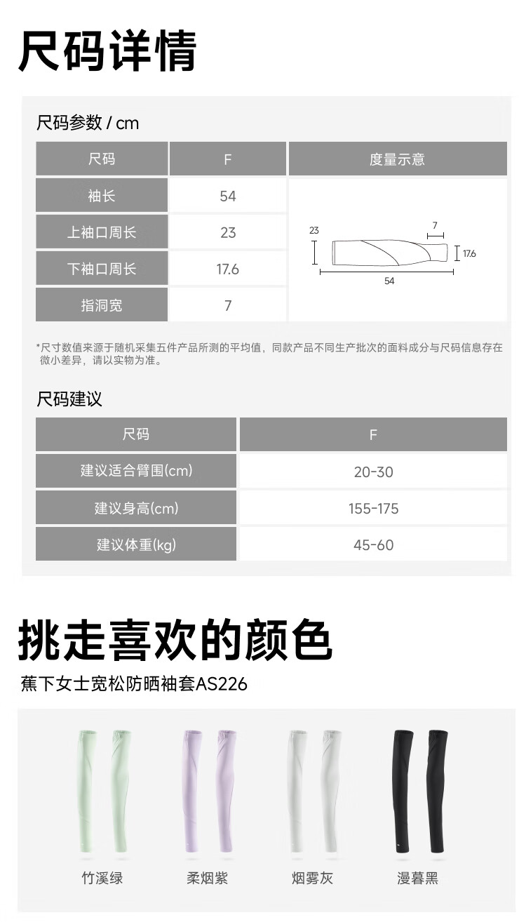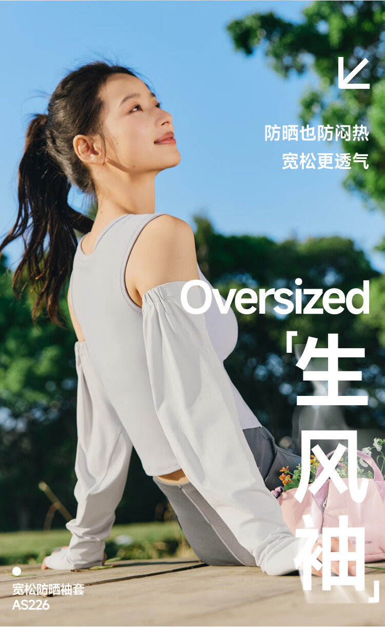 蕉下(beneunder)冰袖防晒袖套女宽松套袖凉感透气开车防晒手臂防紫外线烟雾灰