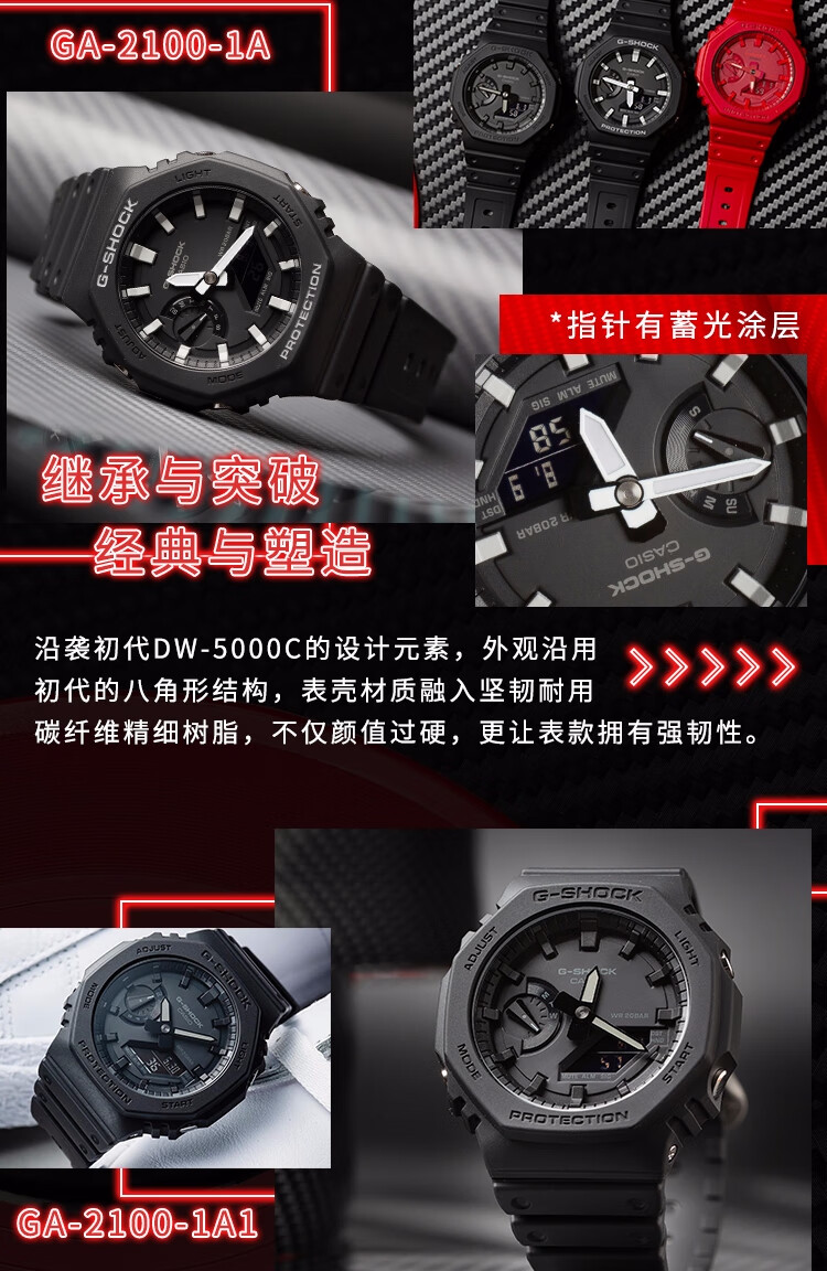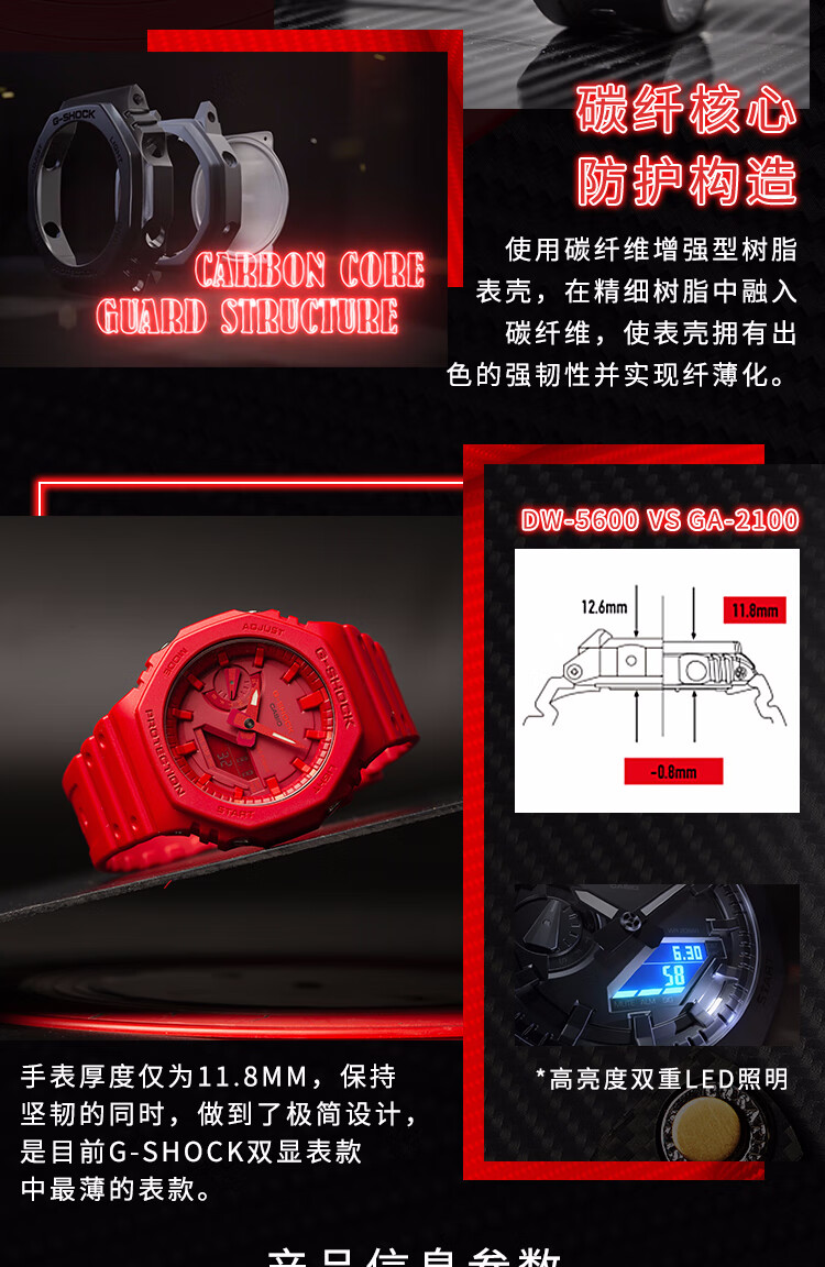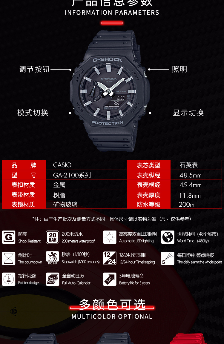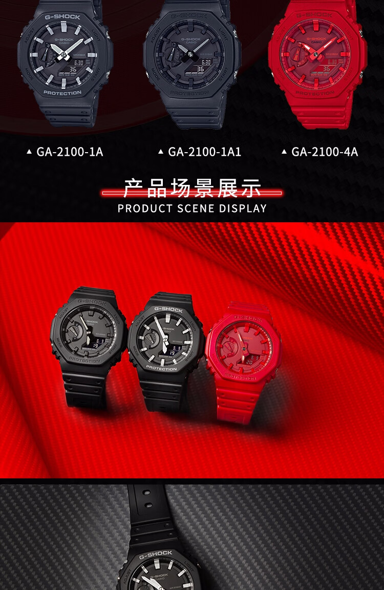 卡西欧(CASIO)手表男G-SHOCK八王子轻薄双显运动电子表送男友礼物GA-2100-4A