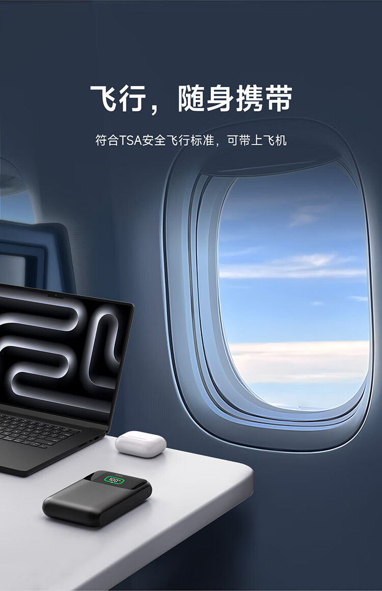 倍思(Baseus)【3C认证可上飞机】自带线充电宝20000毫安22.5W迷你快充大容量移动电源便携适用苹果华为小米手机
