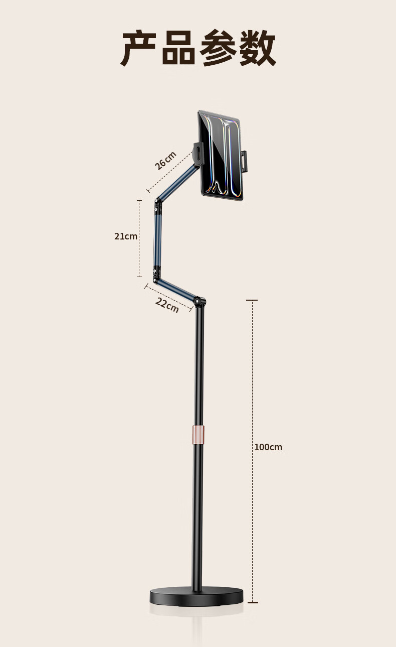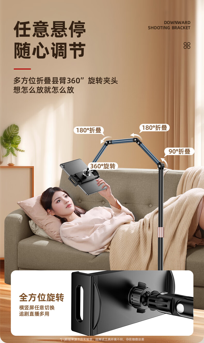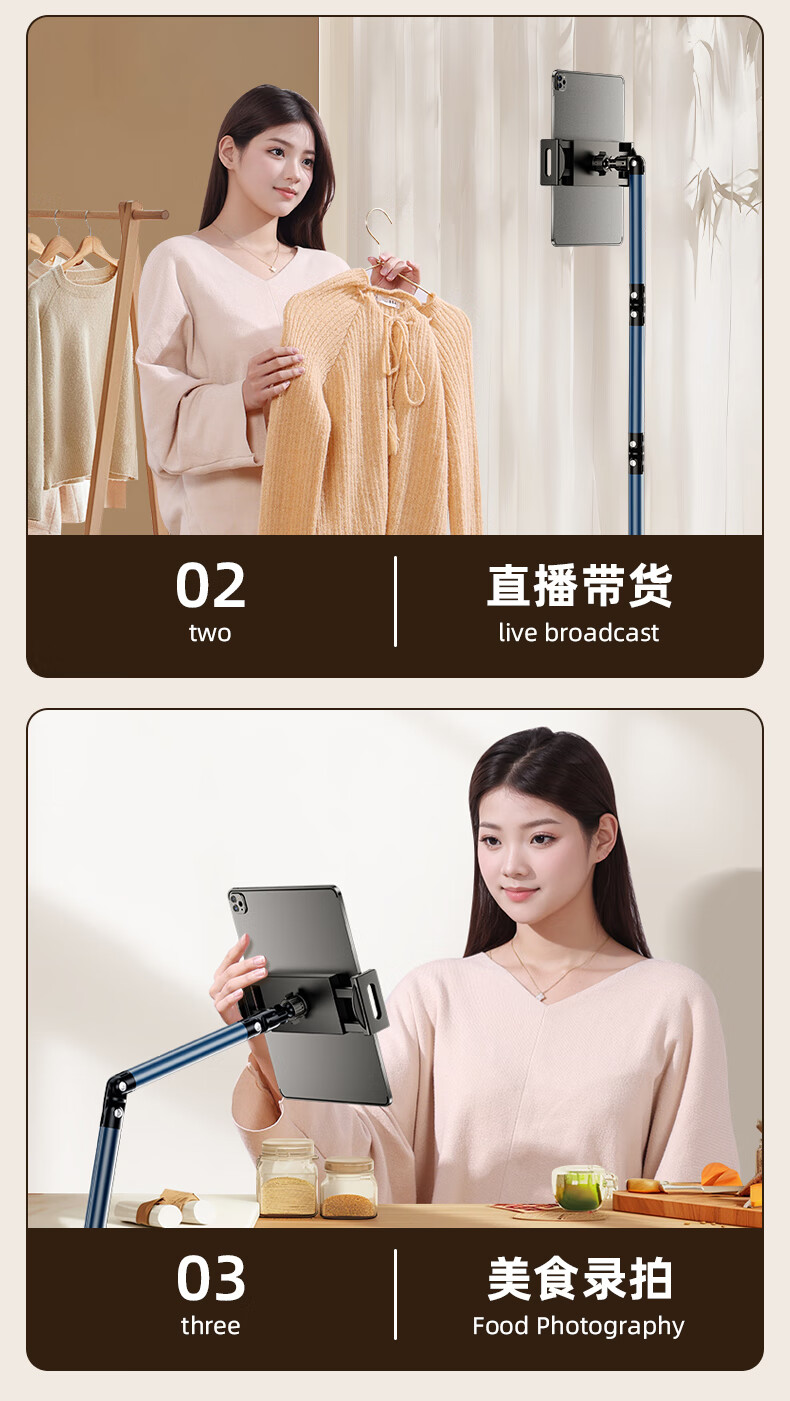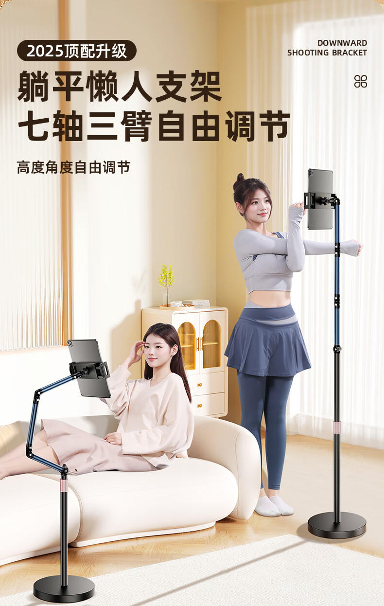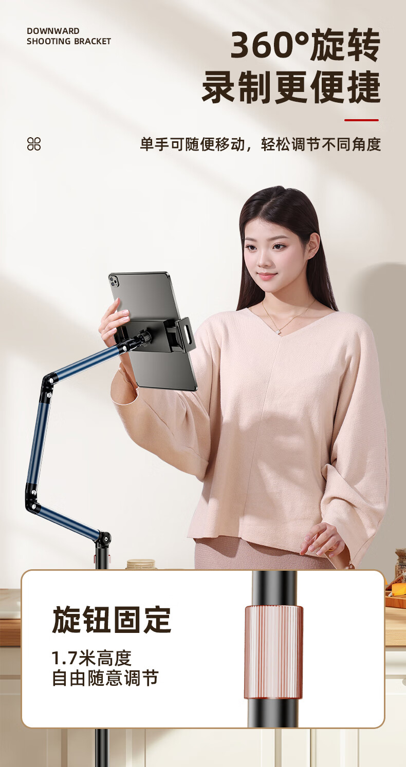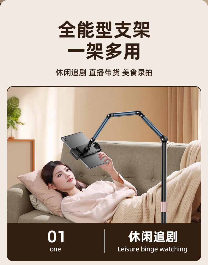 硕图平板支架落地手机支架ipad床头懒人支架直播俯拍悬臂支架360°旋转伸缩调节追剧拍摄多功能支撑架