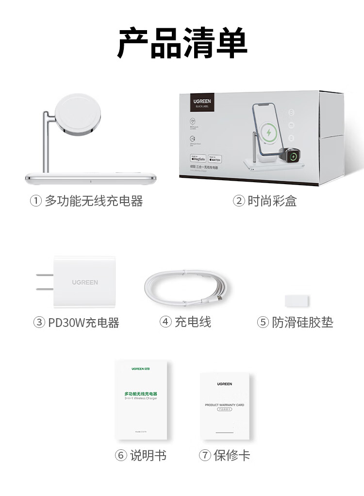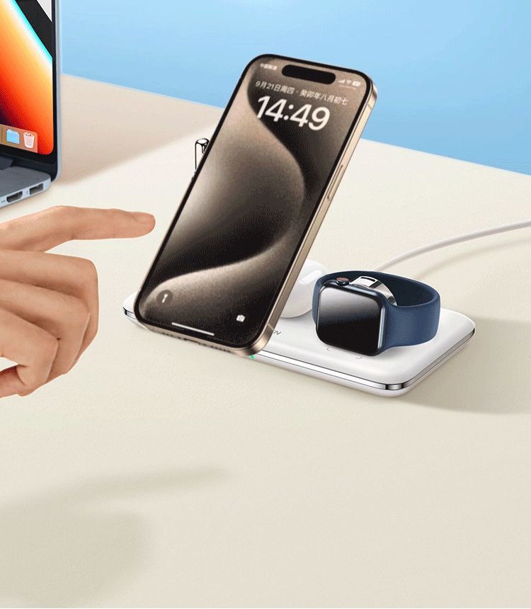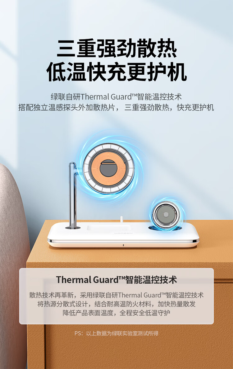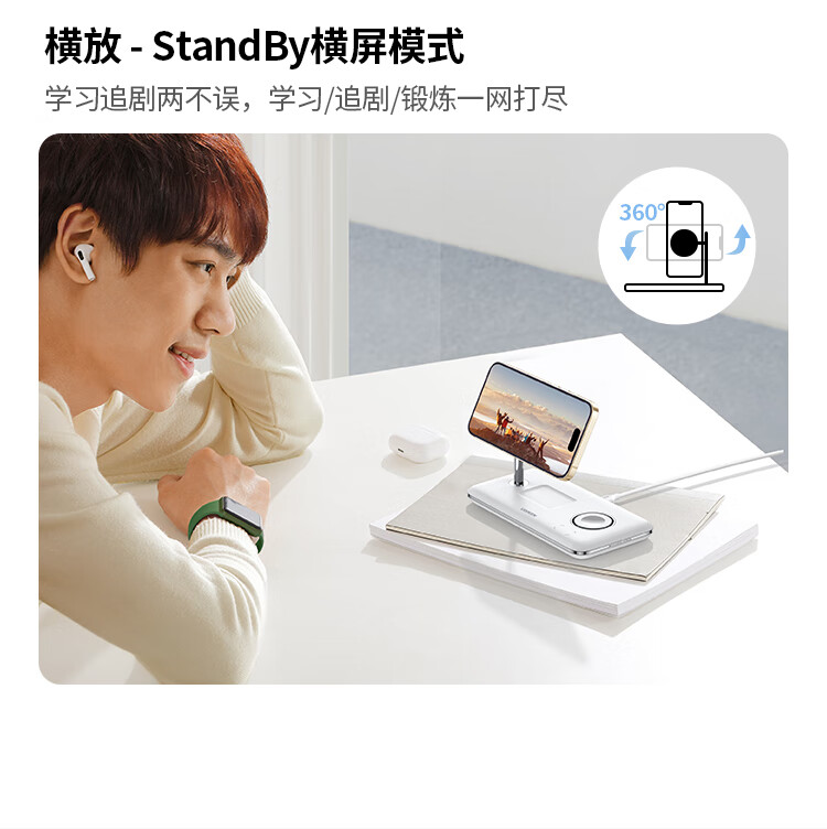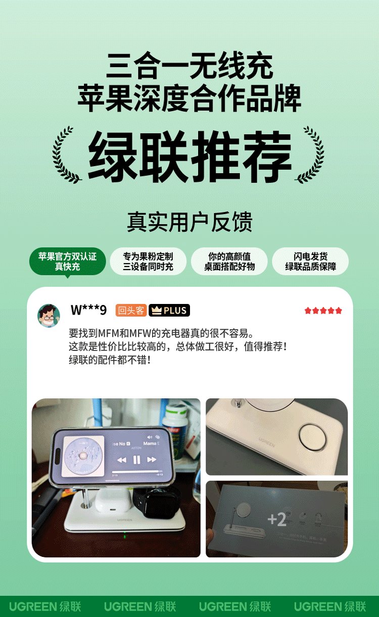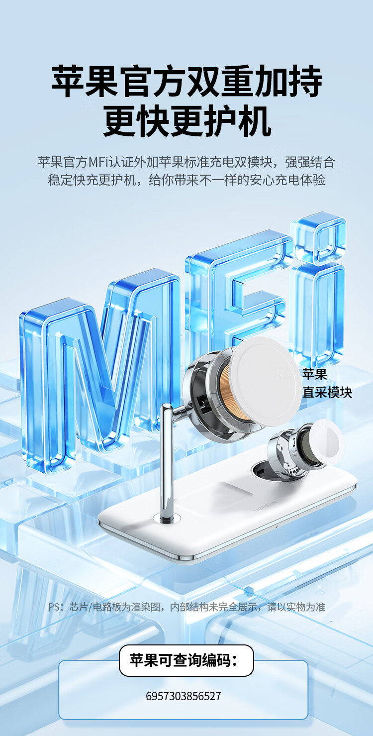绿联MFi认证适用苹果三合一无线充电器MagSafe磁吸充电支架15W快充iPhone17/16/15/14苹果手表耳机通用