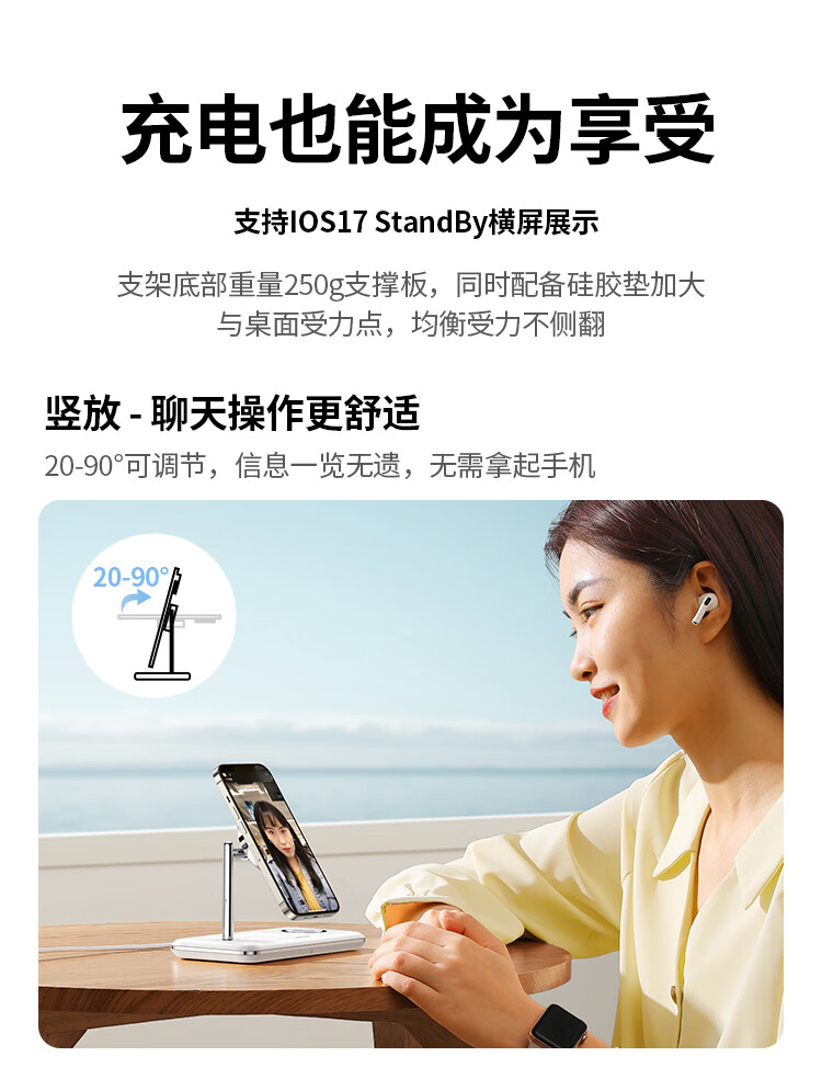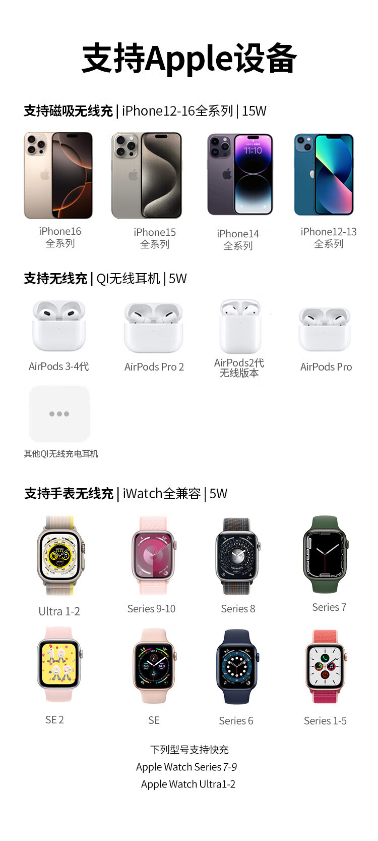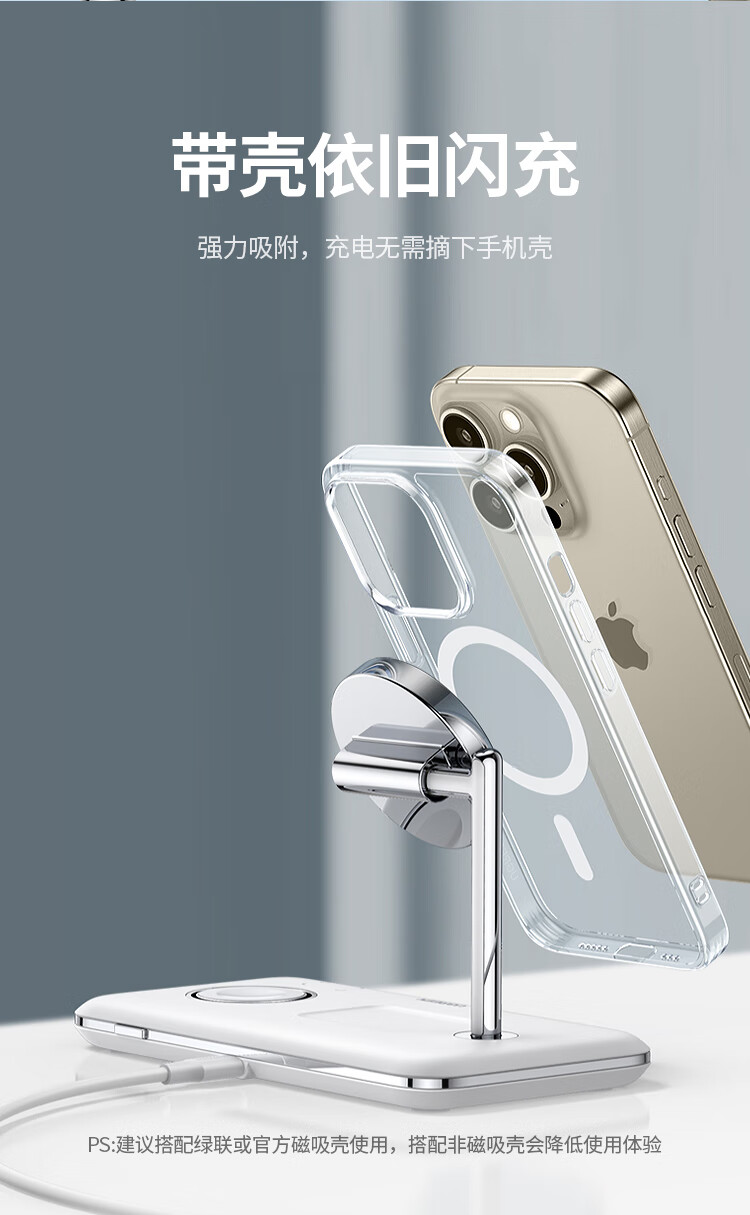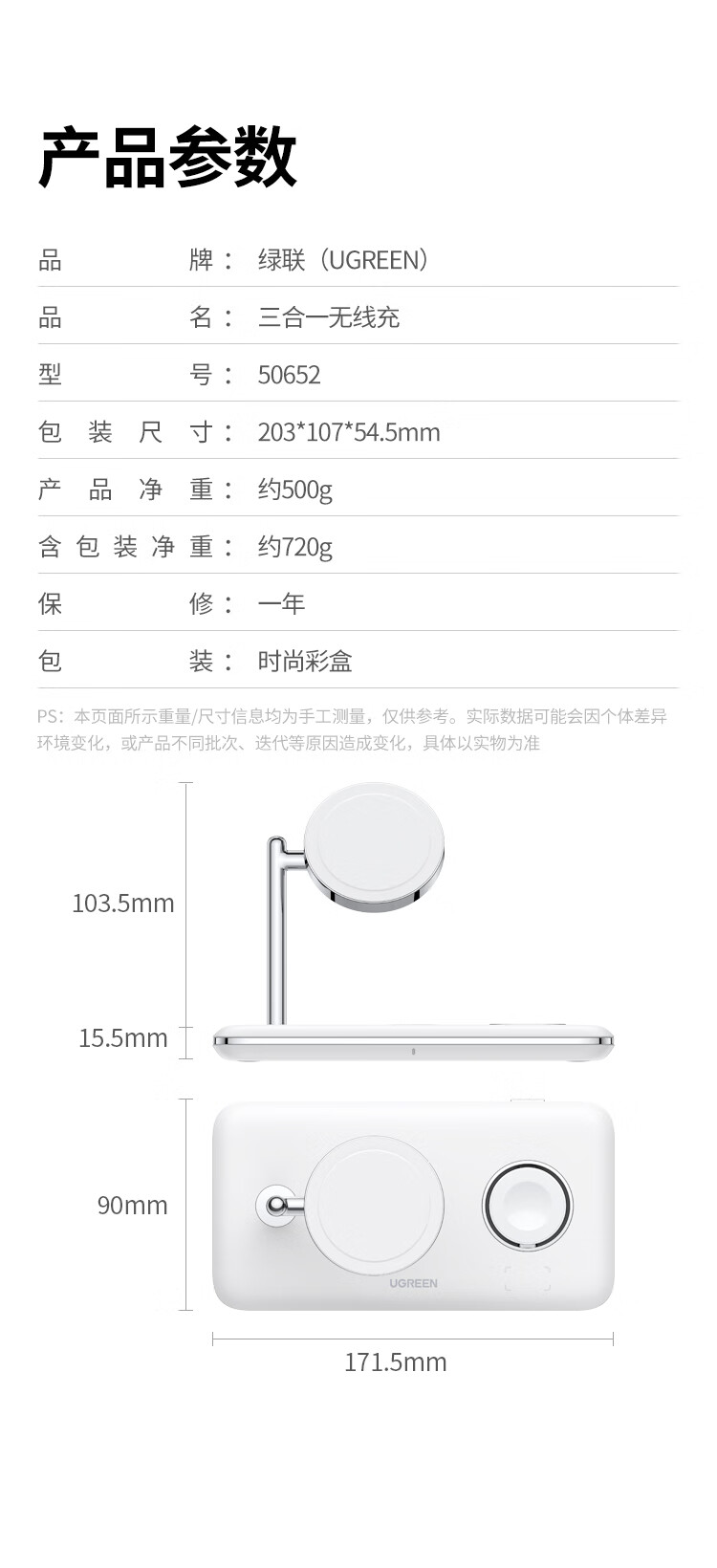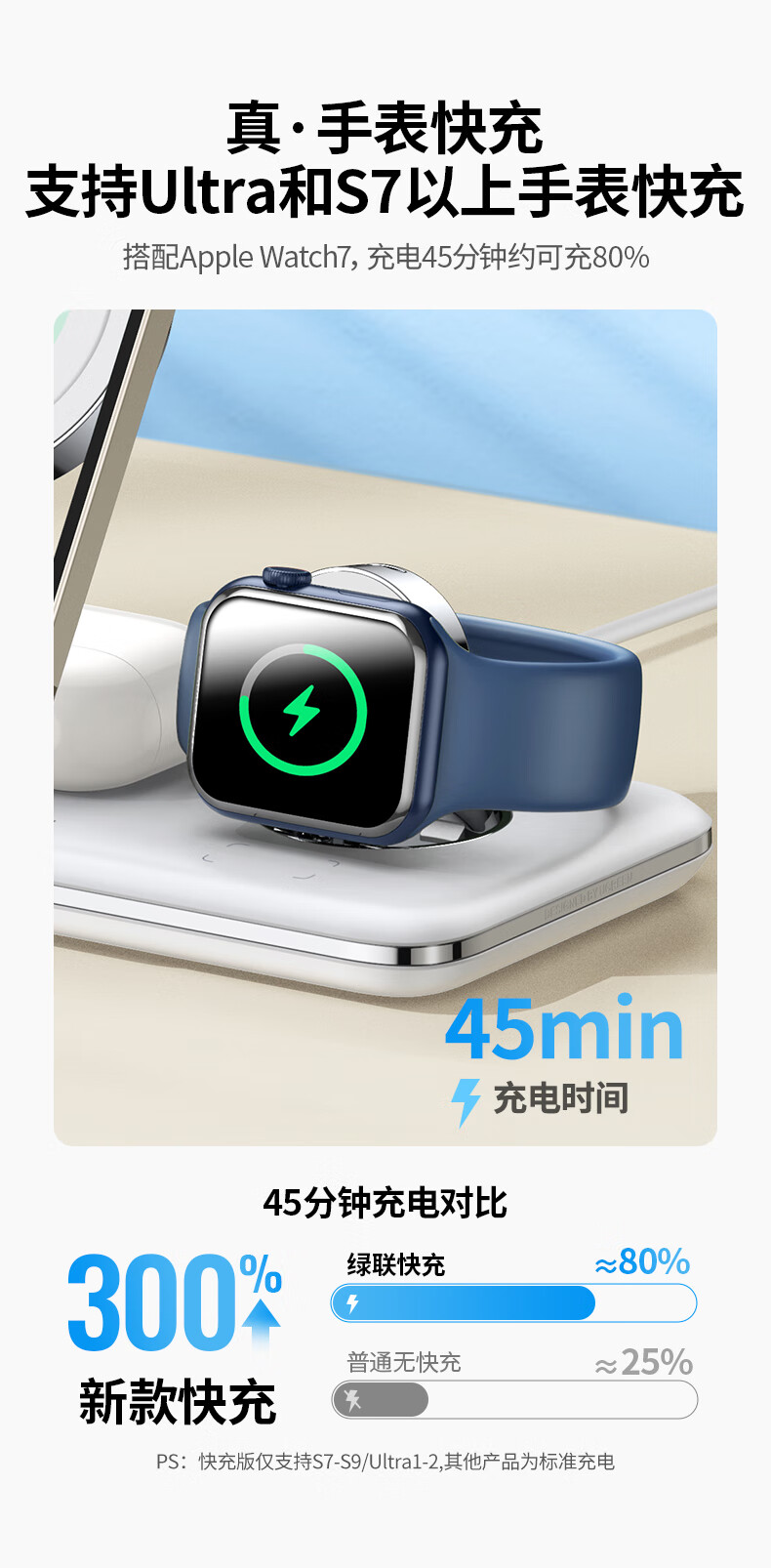 绿联MFi认证适用苹果三合一无线充电器MagSafe磁吸充电支架15W快充iPhone17/16/15/14苹果手表耳机通用