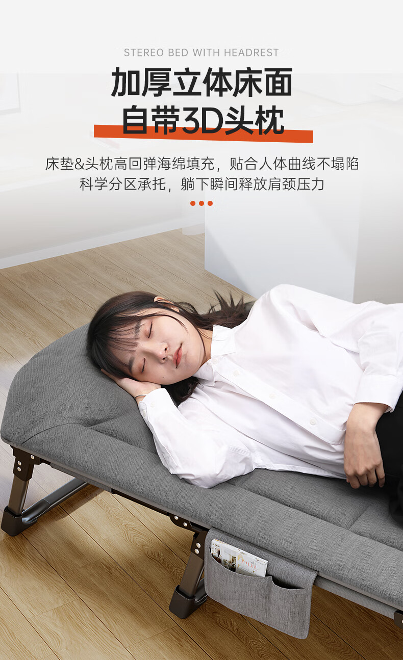 奥凯弗OKeefe折叠床躺椅午休床多功能单人行军床办公室午睡床陪护床灰色