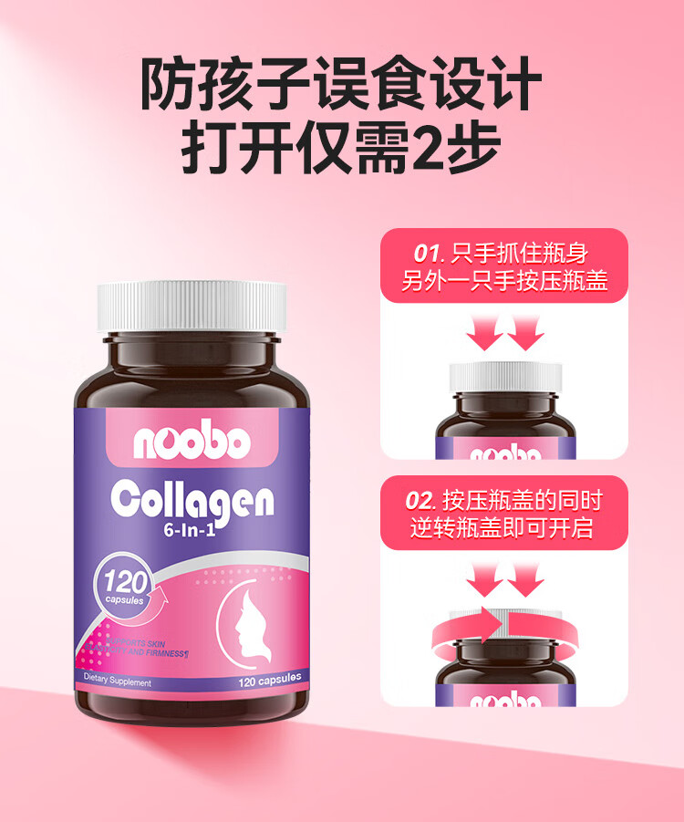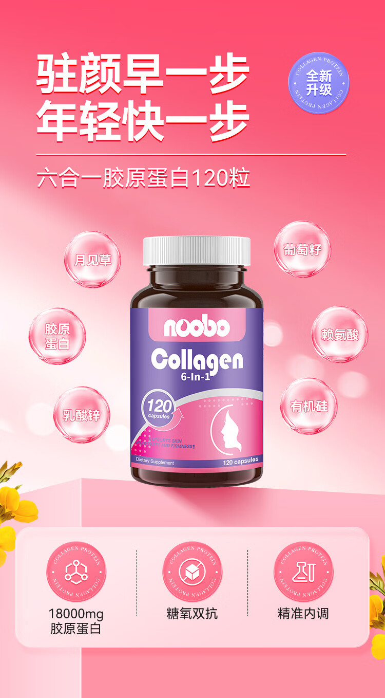 NOOBO美国进口小分子胶原蛋白口服胶囊美白抗衰美颜葡萄籽淡斑 【2瓶改善装】胶原蛋白7倍抗皱+焕白