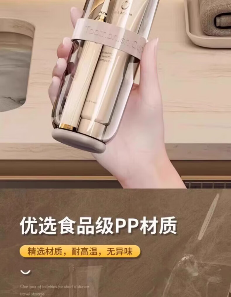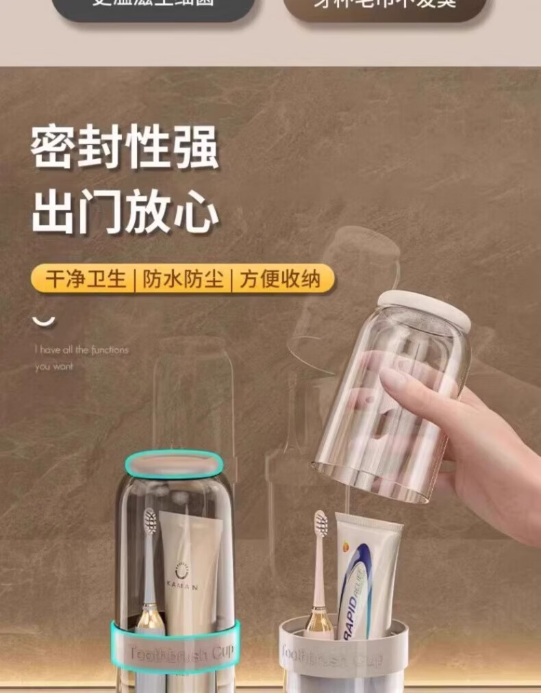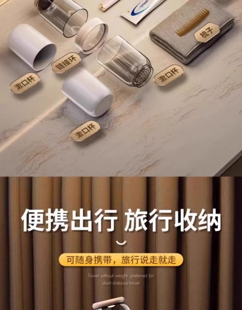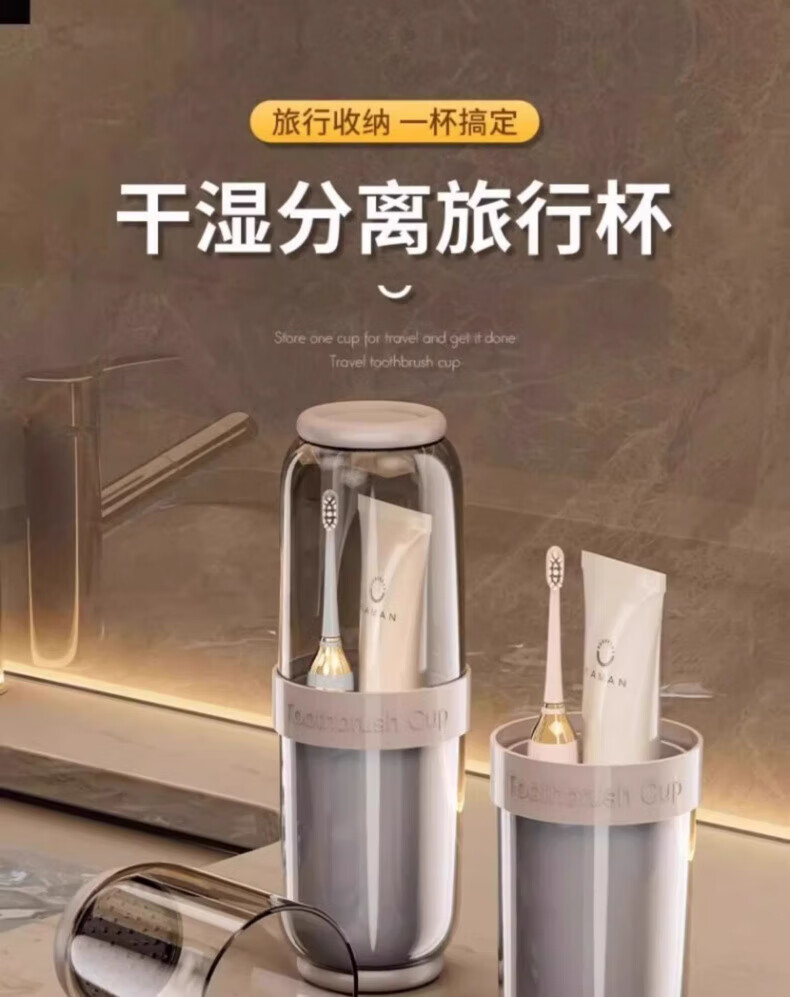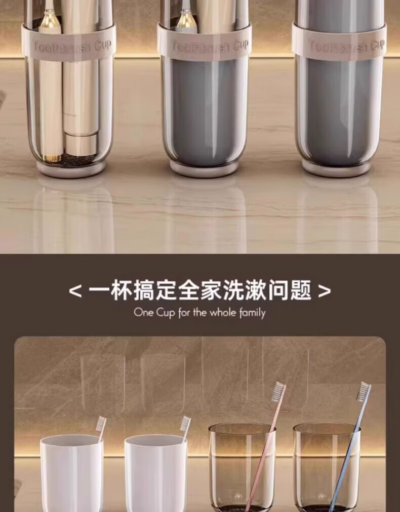 AILUKI日本旅行洗漱套装漱口杯三合一便携式牙刷牙膏食品级沥水防霉 奶黄色【共2杯_可沥水可防菌_O异