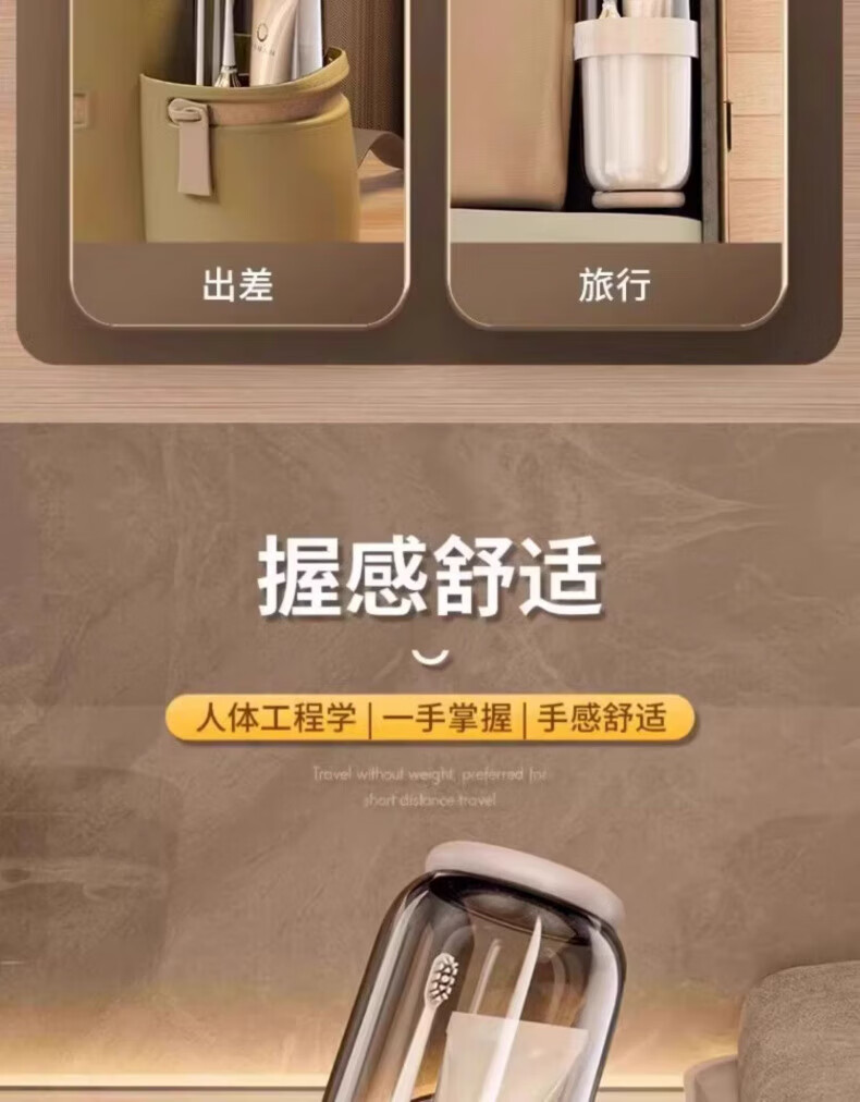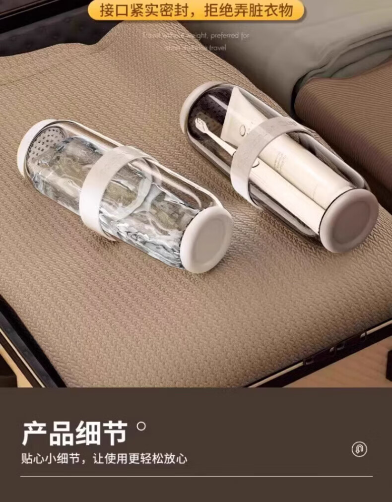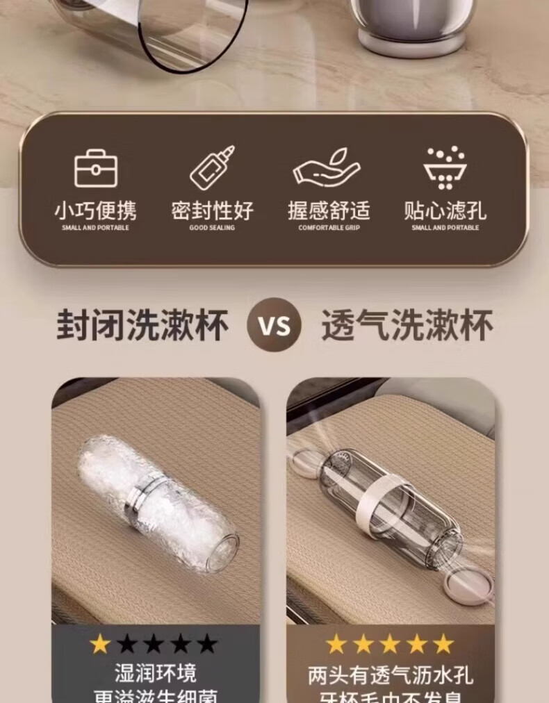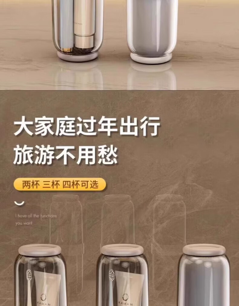 AILUKI日本旅行洗漱套装漱口杯三合一便携式牙刷牙膏食品级沥水防霉 奶黄色【共2杯_可沥水可防菌_O异