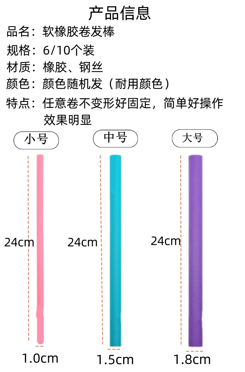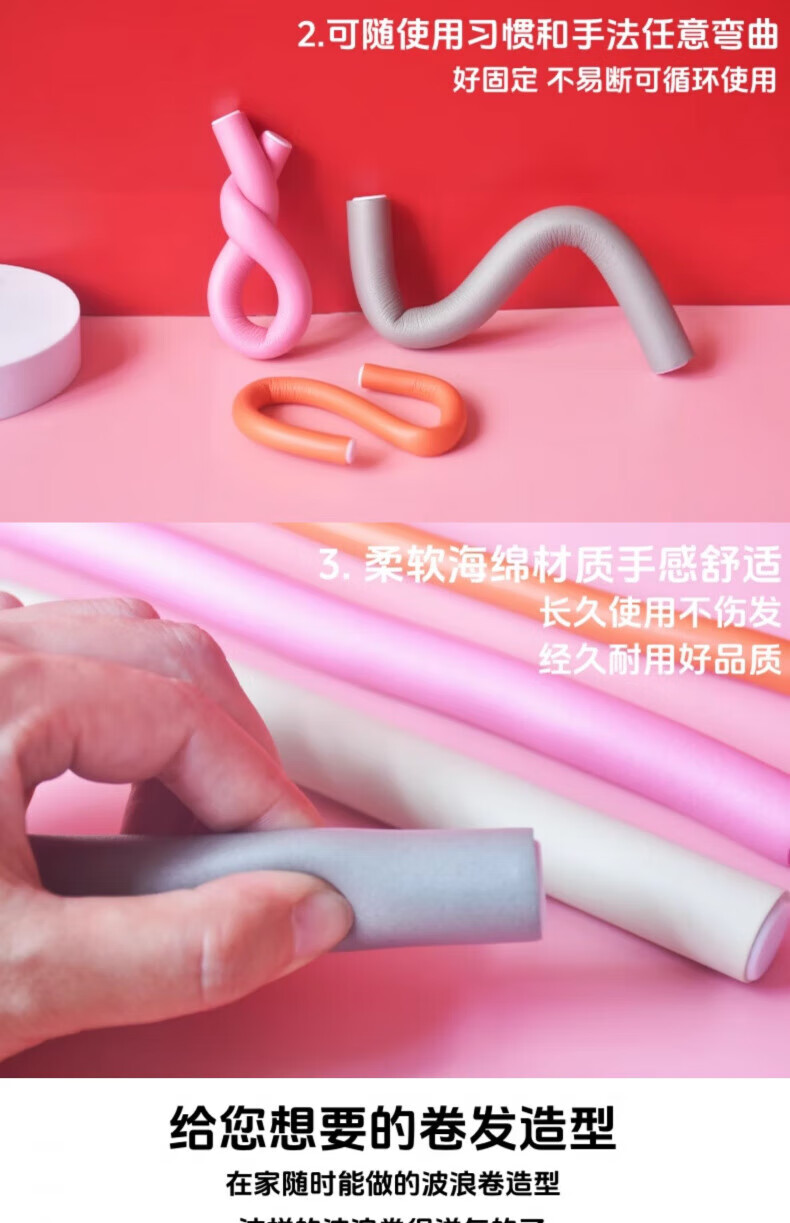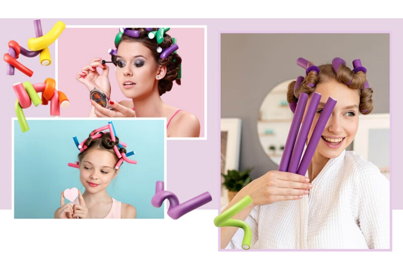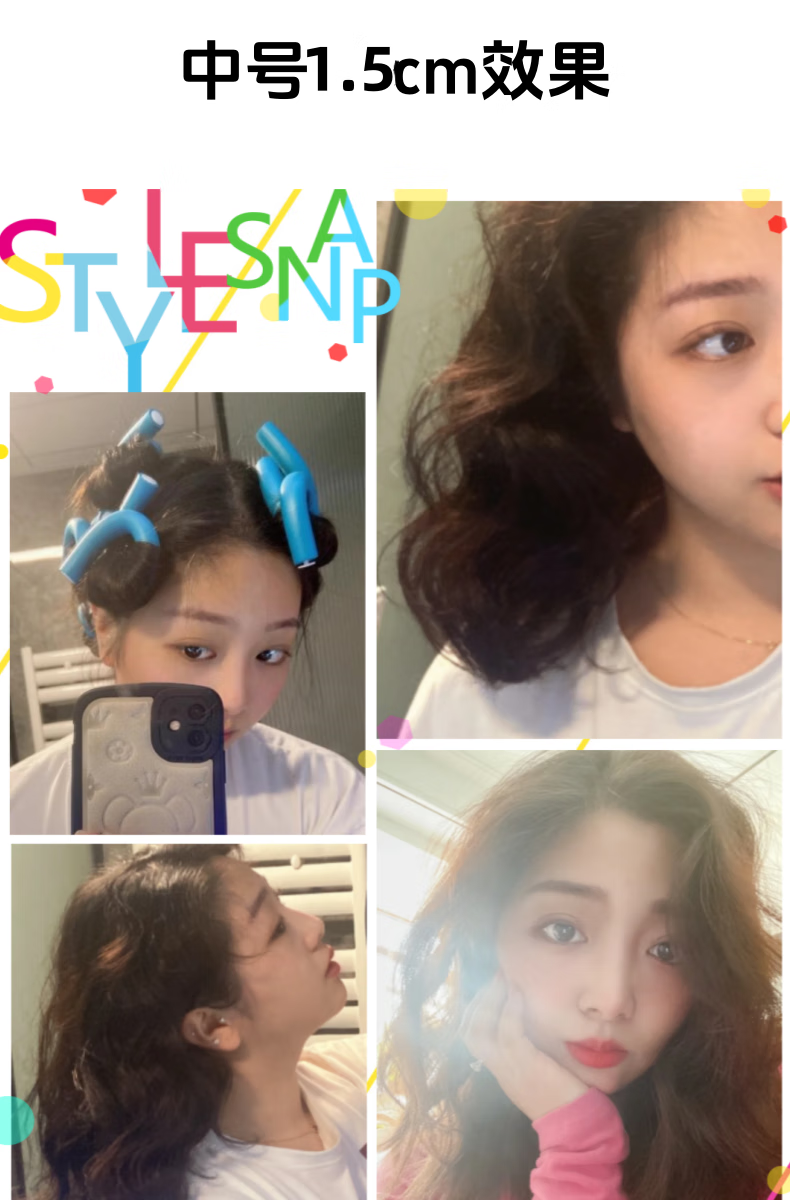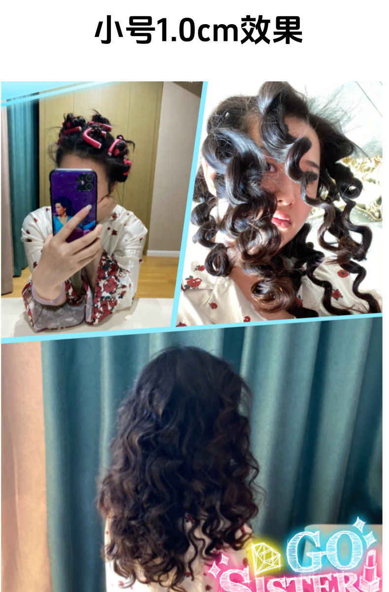 AILUKI日本护理懒人睡眠海绵卷发棒免烫大波浪卷发筒蓬松定型神器不伤发 大号10个装【直径1.8cm】_紫色