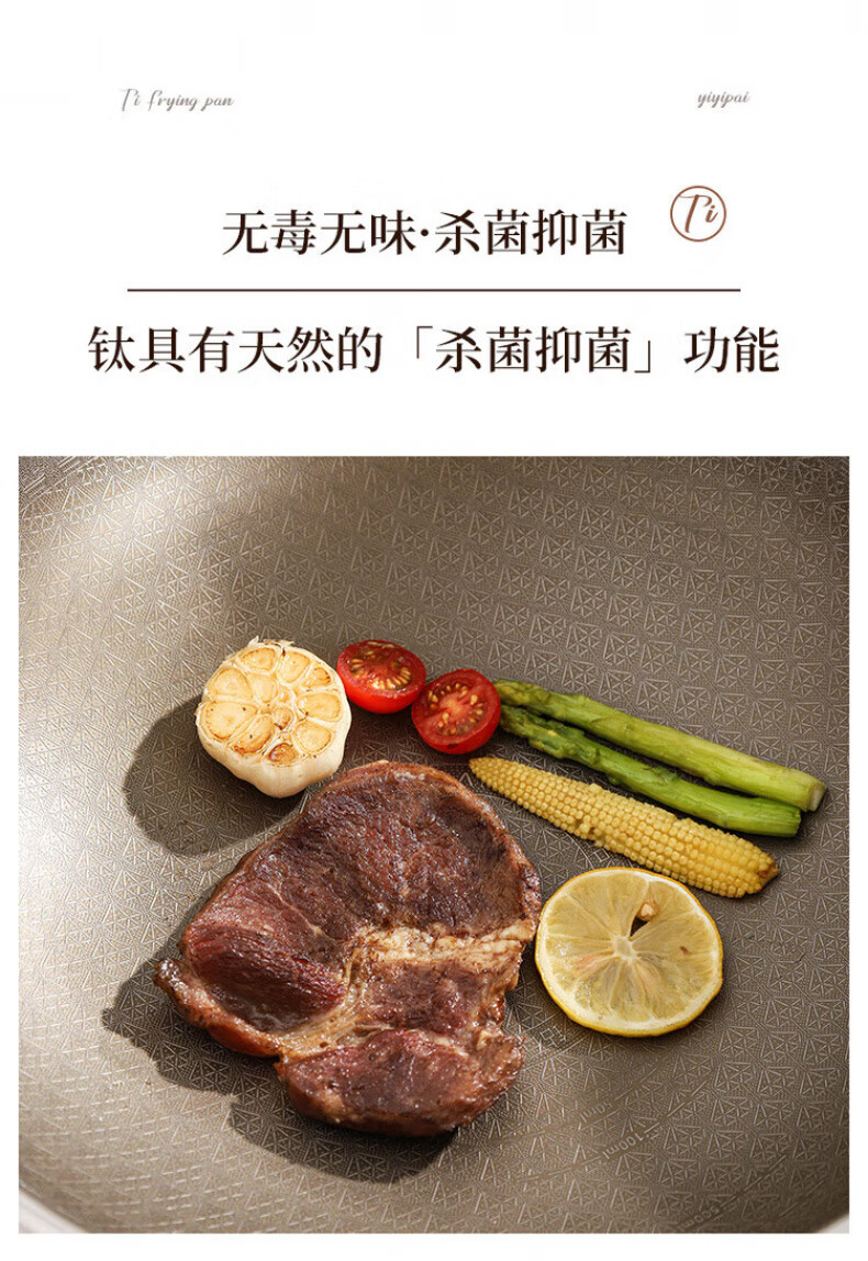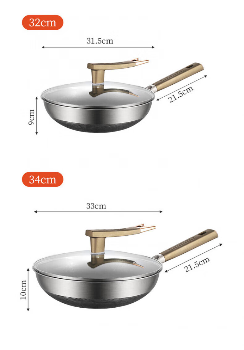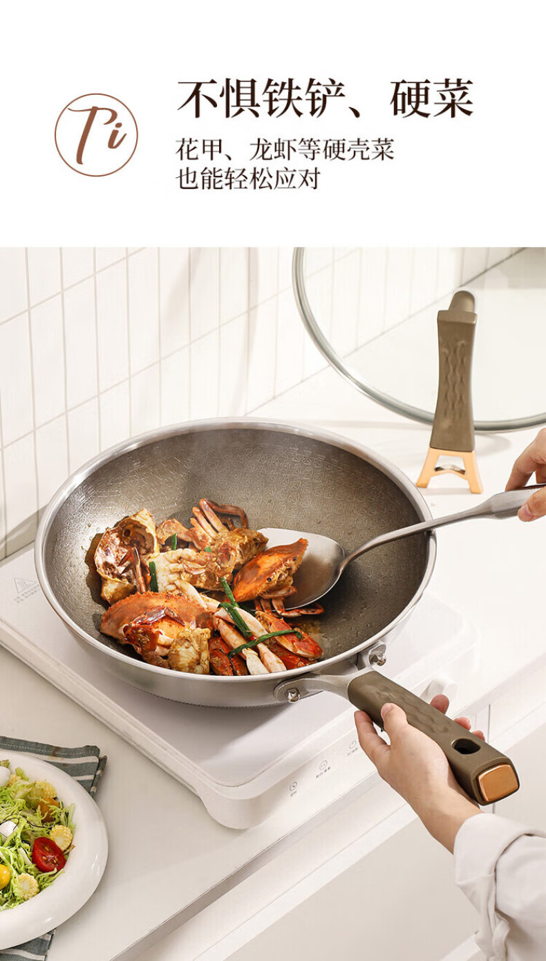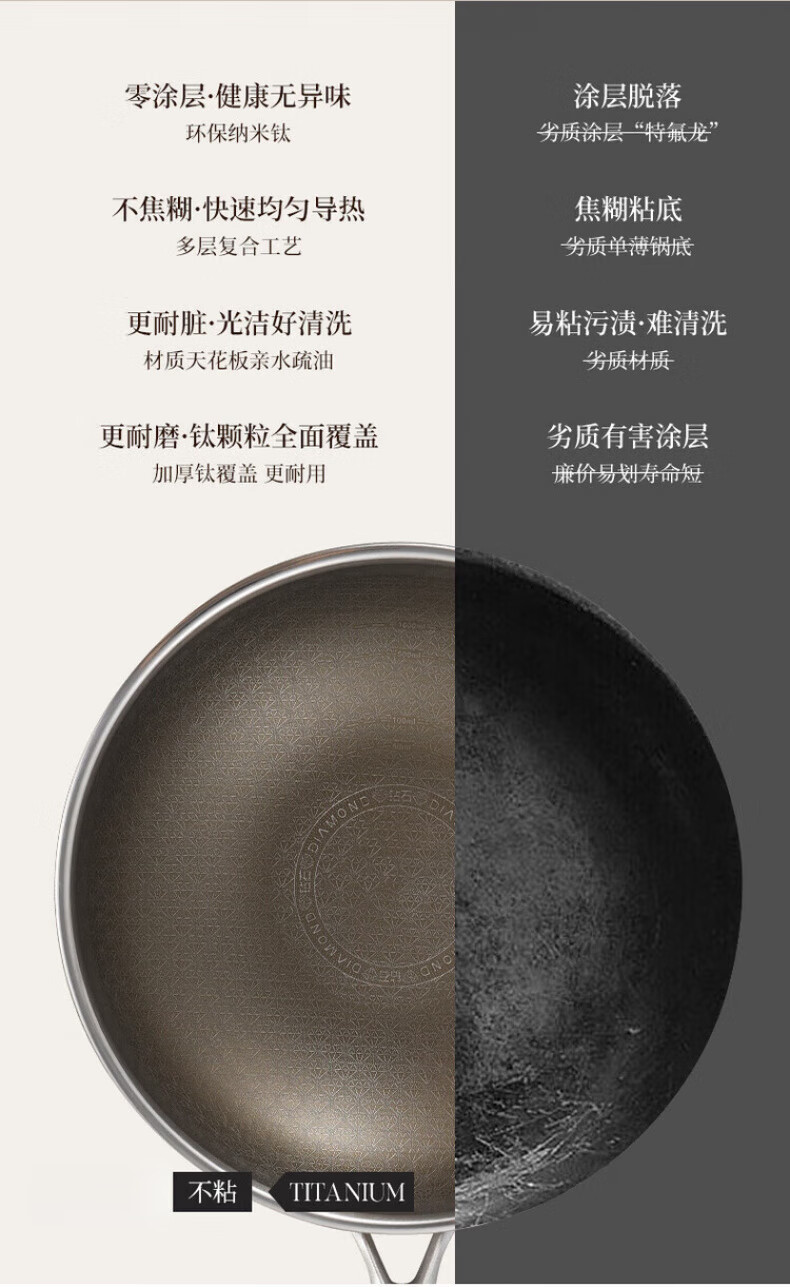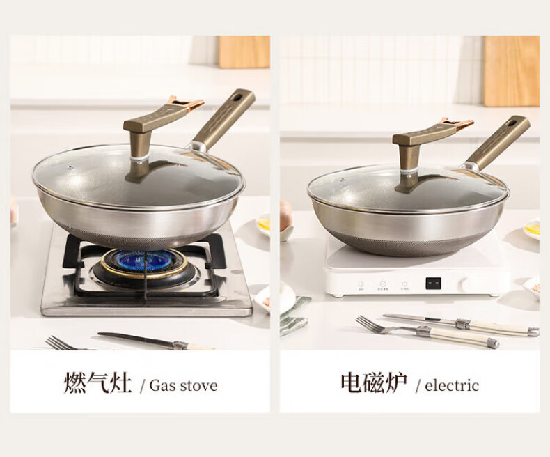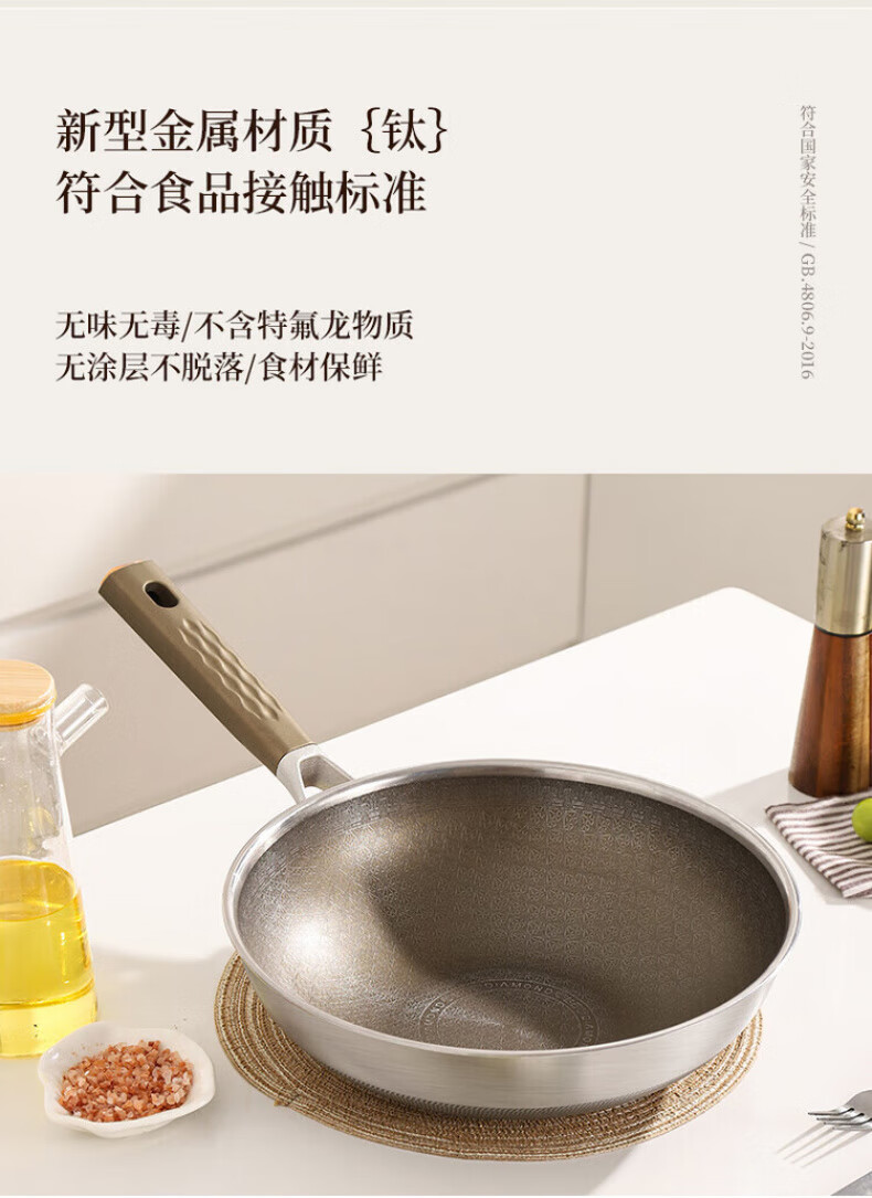 DEATKN德国316钛钢炒锅无涂层不粘锅炒菜锅家用电磁炉灶通用不锈钢钛锅 316L+双面钛【30CM无盖】60w次耐磨不粘 1寸