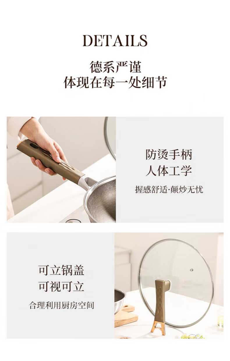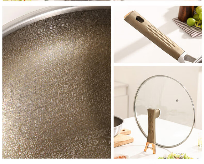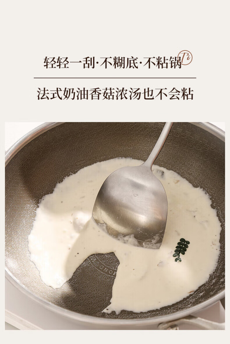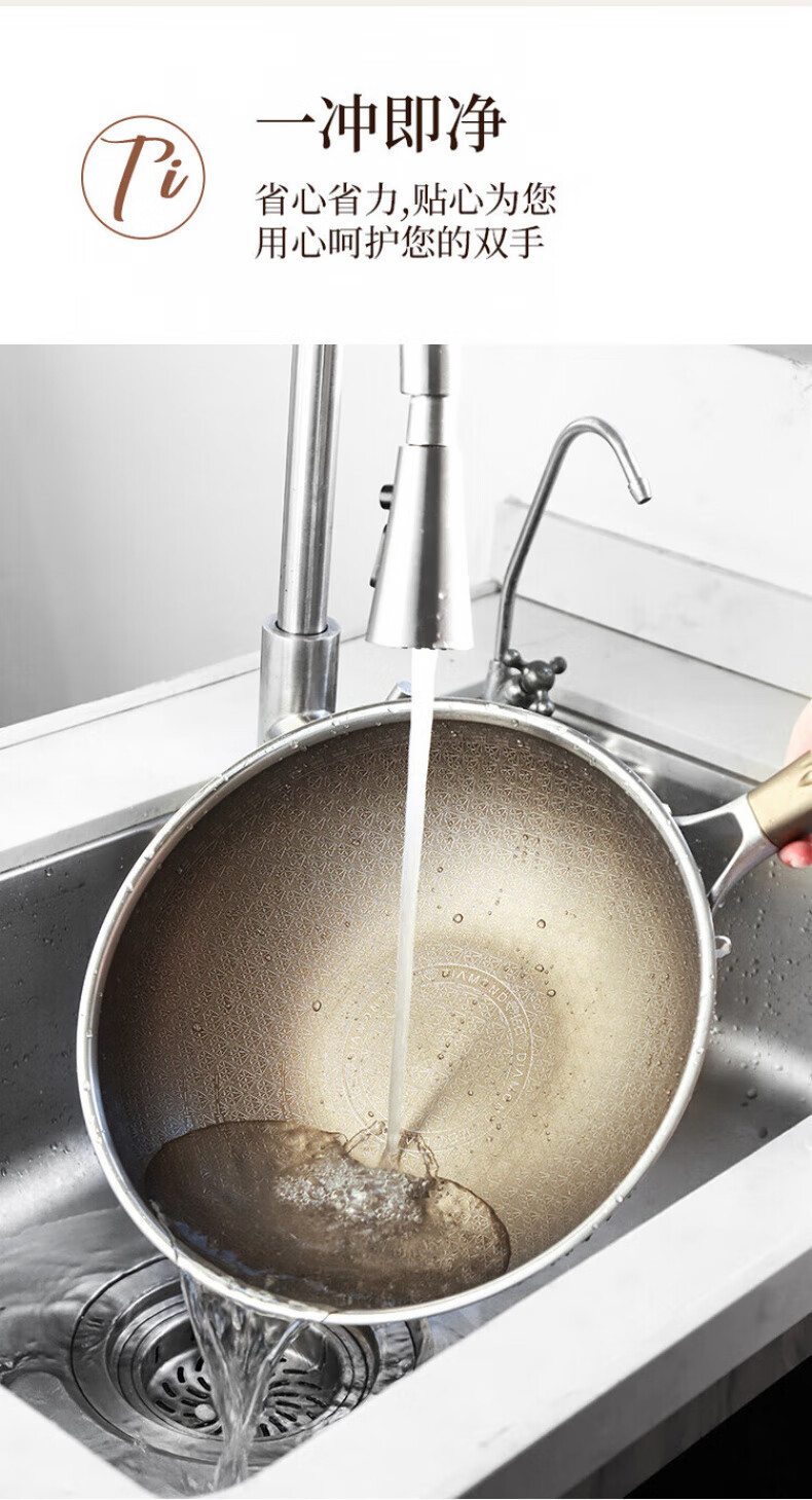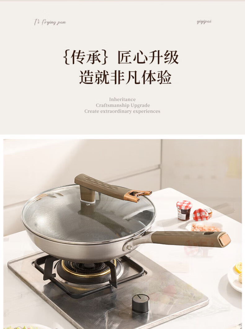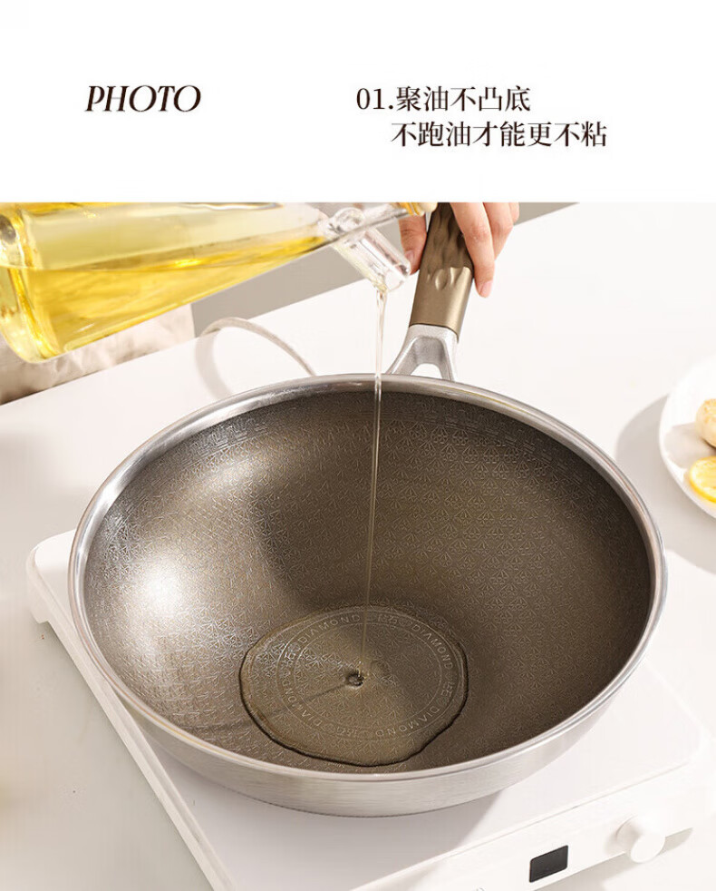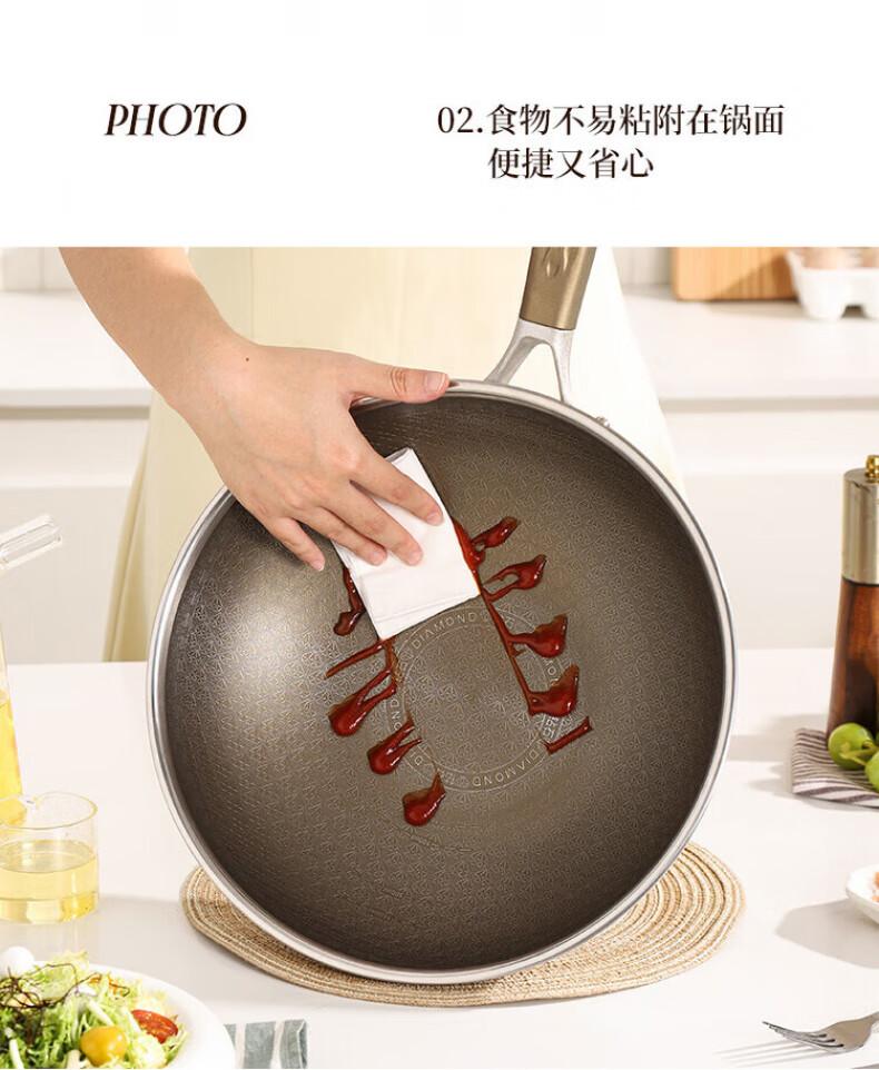 DEATKN德国316钛钢炒锅无涂层不粘锅炒菜锅家用电磁炉灶通用不锈钢钛锅 316L+双面钛【30CM无盖】60w次耐磨不粘 1寸