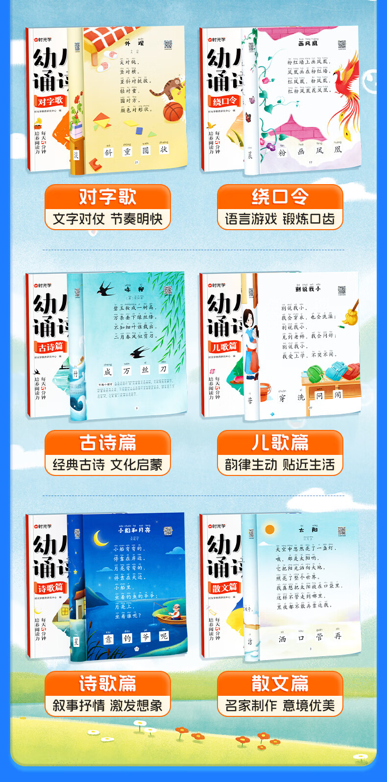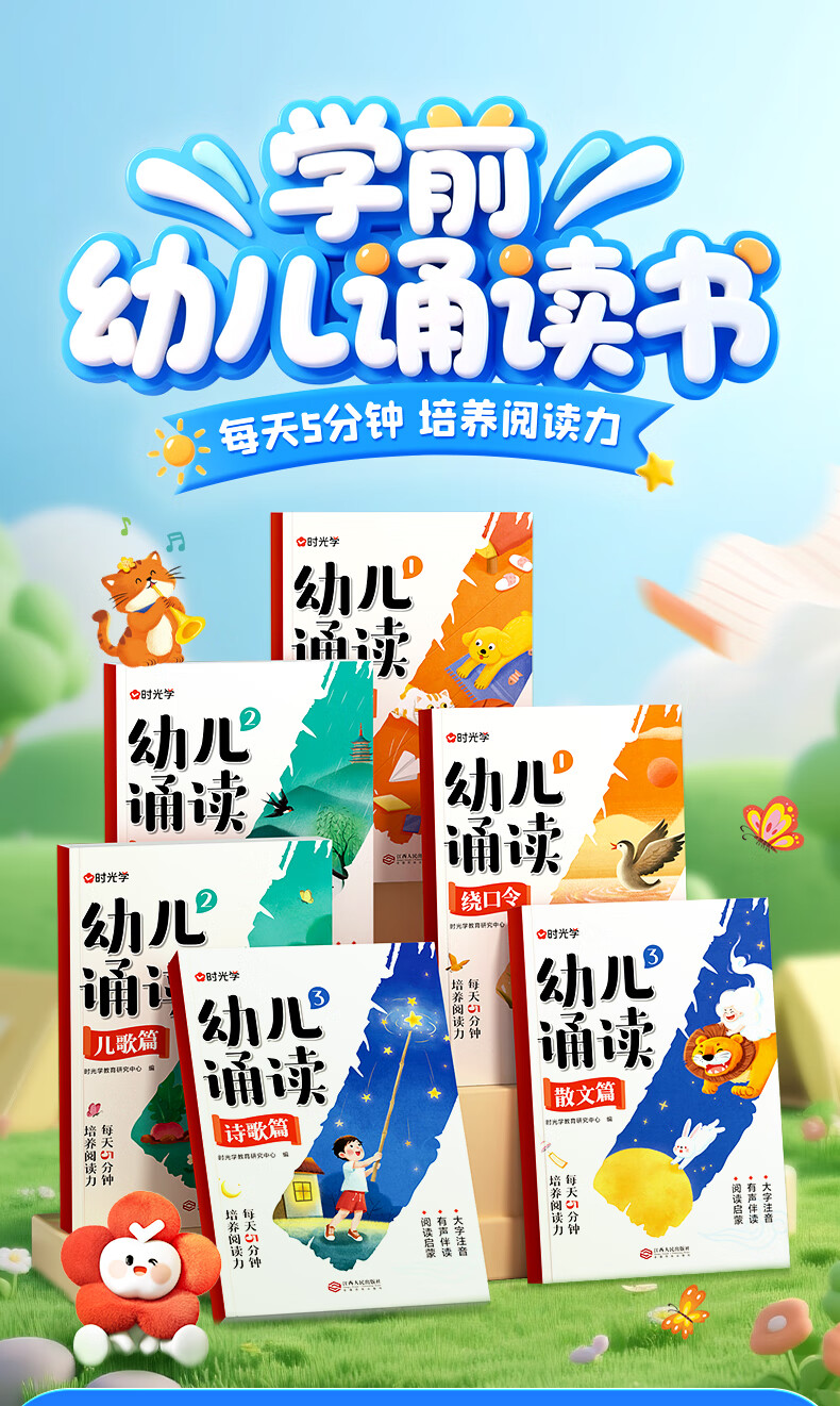 【央视网阅读推荐】时光学幼儿诵读启蒙书 3-8岁儿童早教趣味识字幼小衔接分级阅读绘本书 推荐【幼儿诵读全6本】3-8岁适用