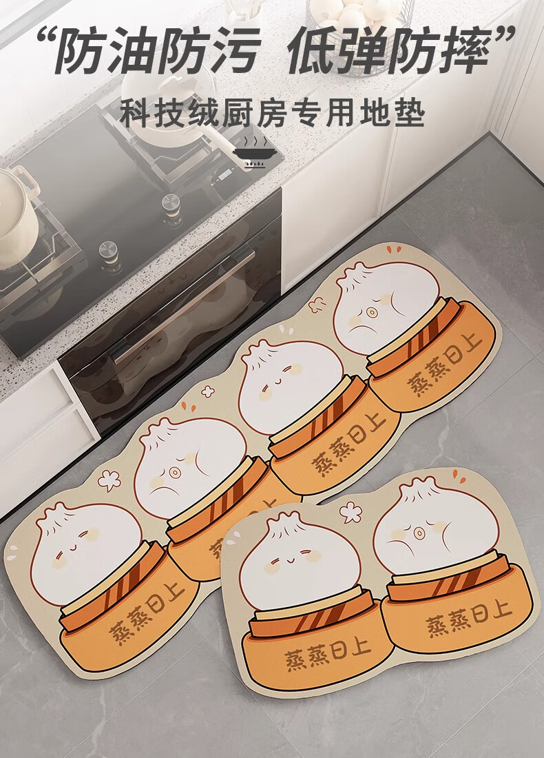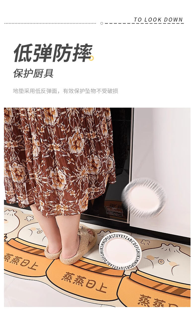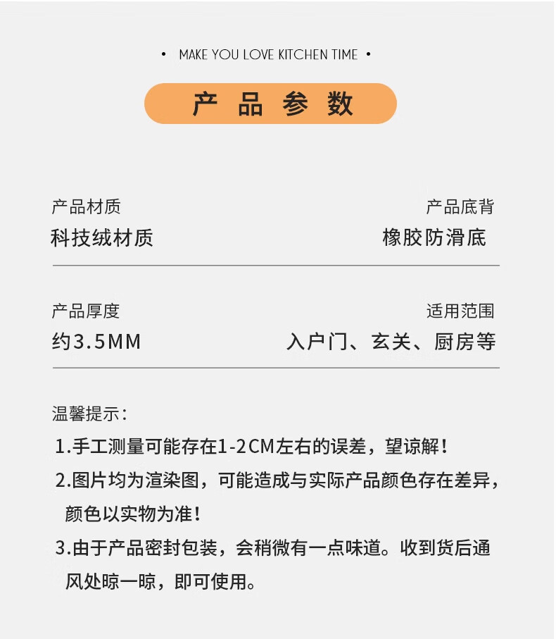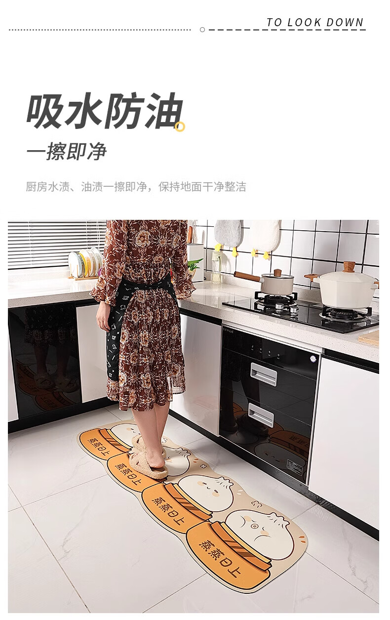 季象厨房地垫专用长条防水防油吸水垫大面积防滑垫子免洗可擦耐脏脚垫 GZN-Y开心厨房-土司片 40X60cm【单块装】