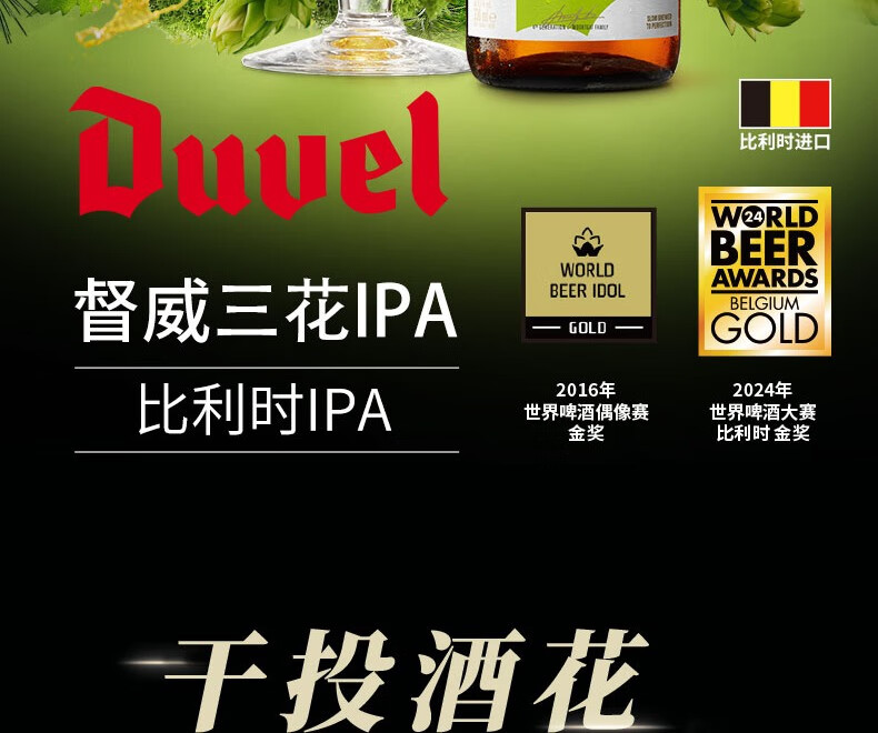 督威(DuveL)三花IPA精酿啤酒 330ml*6瓶 比利时原瓶进口京东自营