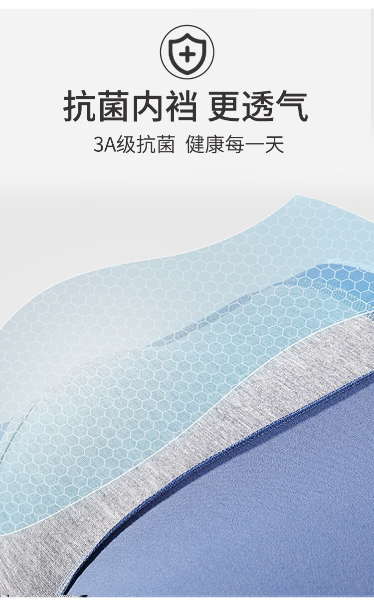 男士内裤纯棉舒适男生三角短裤头底裤衩中腰抗菌大码新款潮 4条装-深灰+浅粉+浅蓝+宝蓝 2XL(120-140斤)