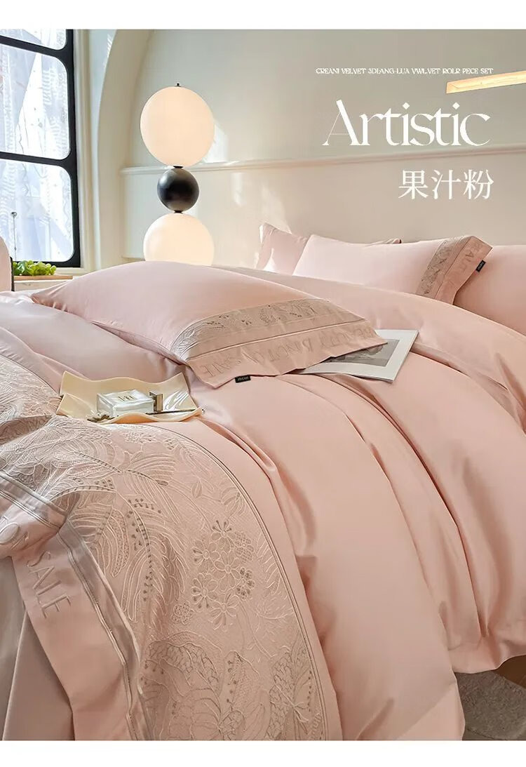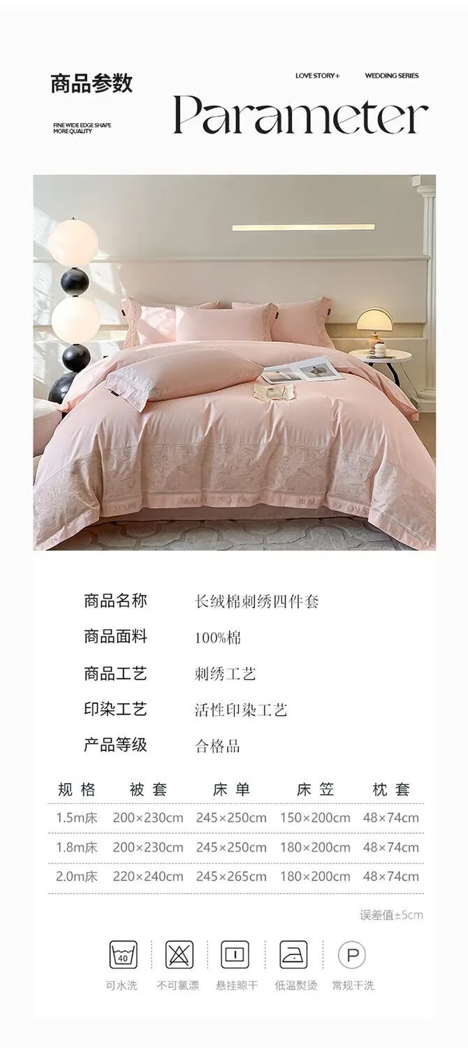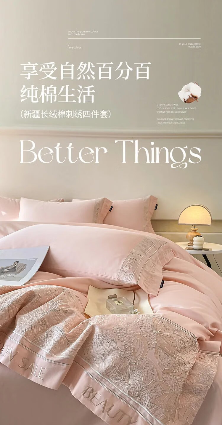 LAVIE HOME罗莱出品140支长绒棉四件套加厚床单被套保暖四季通用床上用品 【果汁粉】100新疆A类纯棉 床单款 1.8米四件套【被套200X230