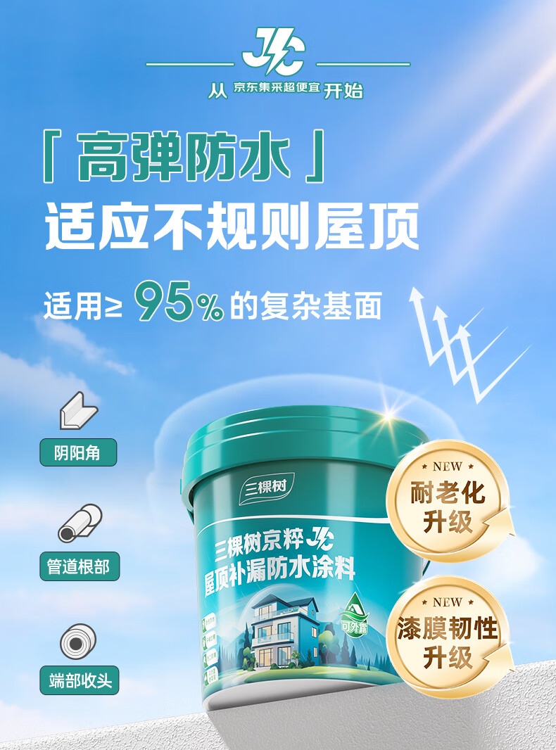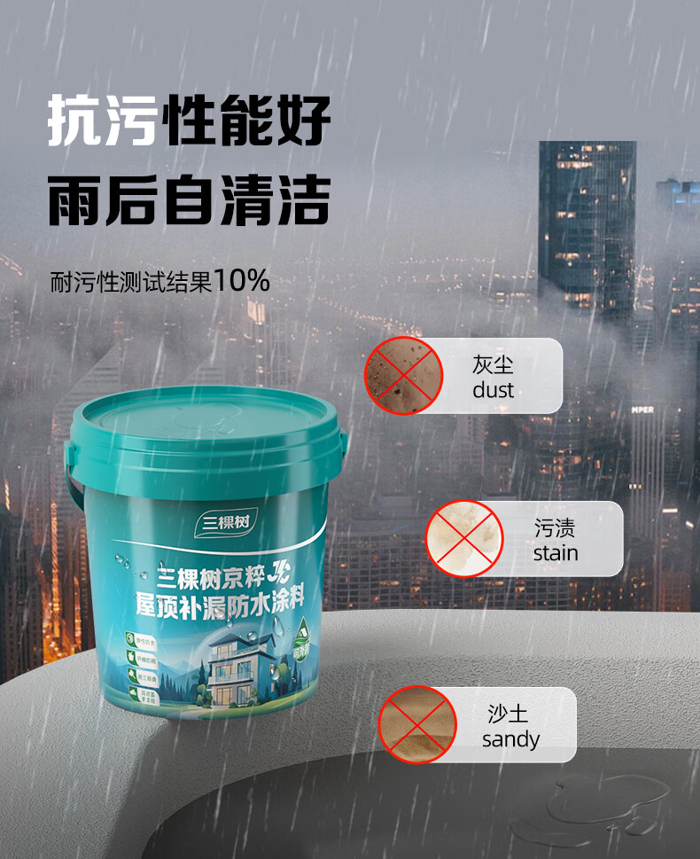 三棵树漆(SKSHU)JC屋顶防水涂料补漏材料耐高温防晒平房漏水补漏王外墙灰色18kg