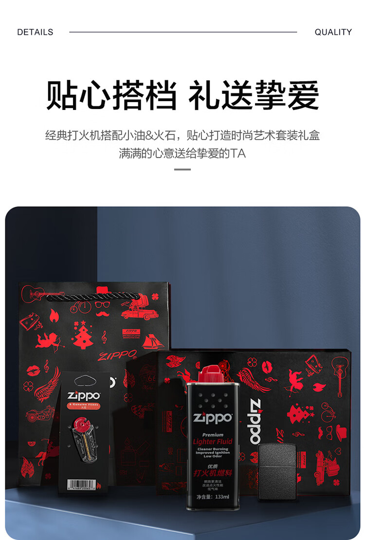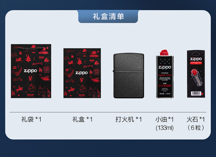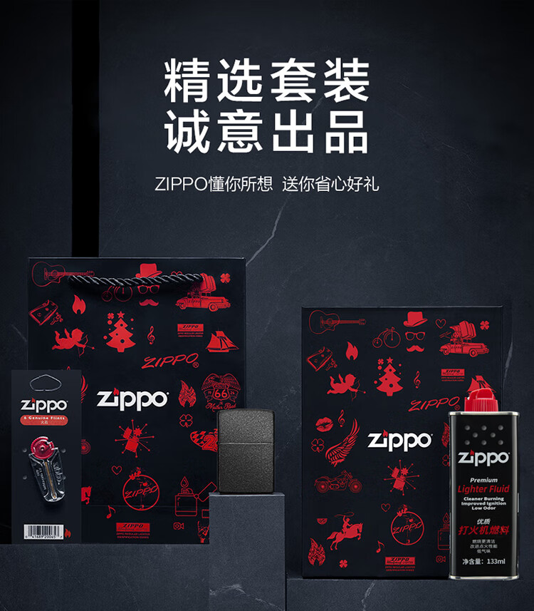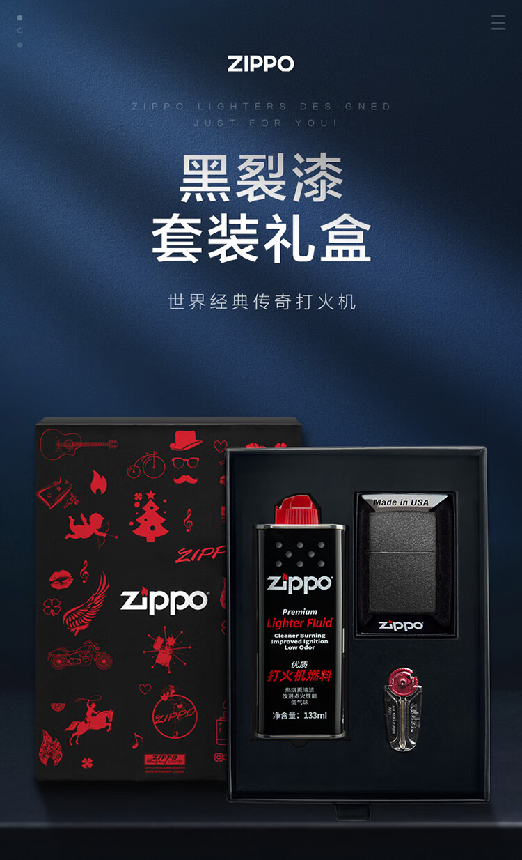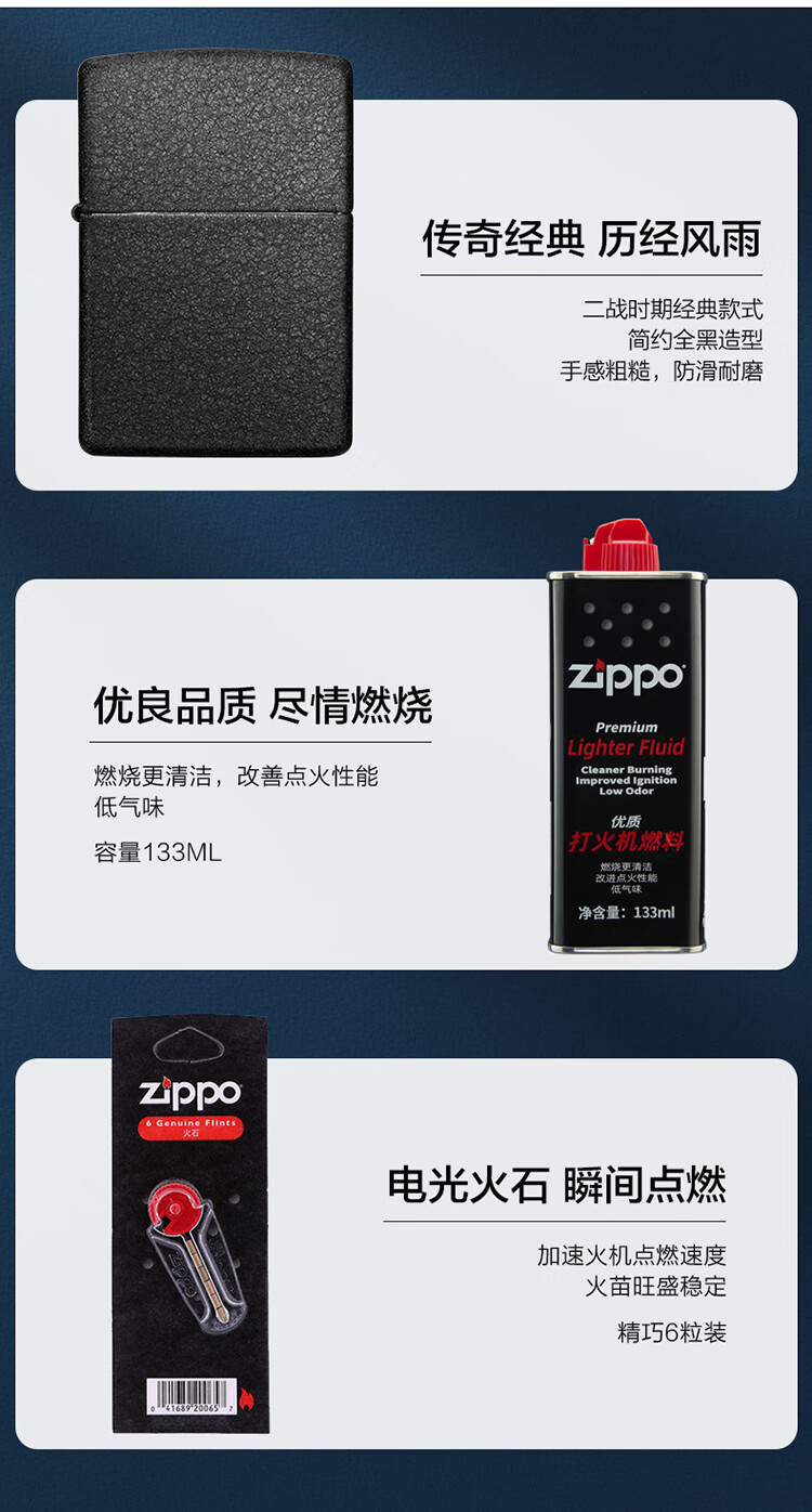 ZIPPO打火机之宝防风煤油 黑裂漆 生日礼物送男友送老公 含油套装