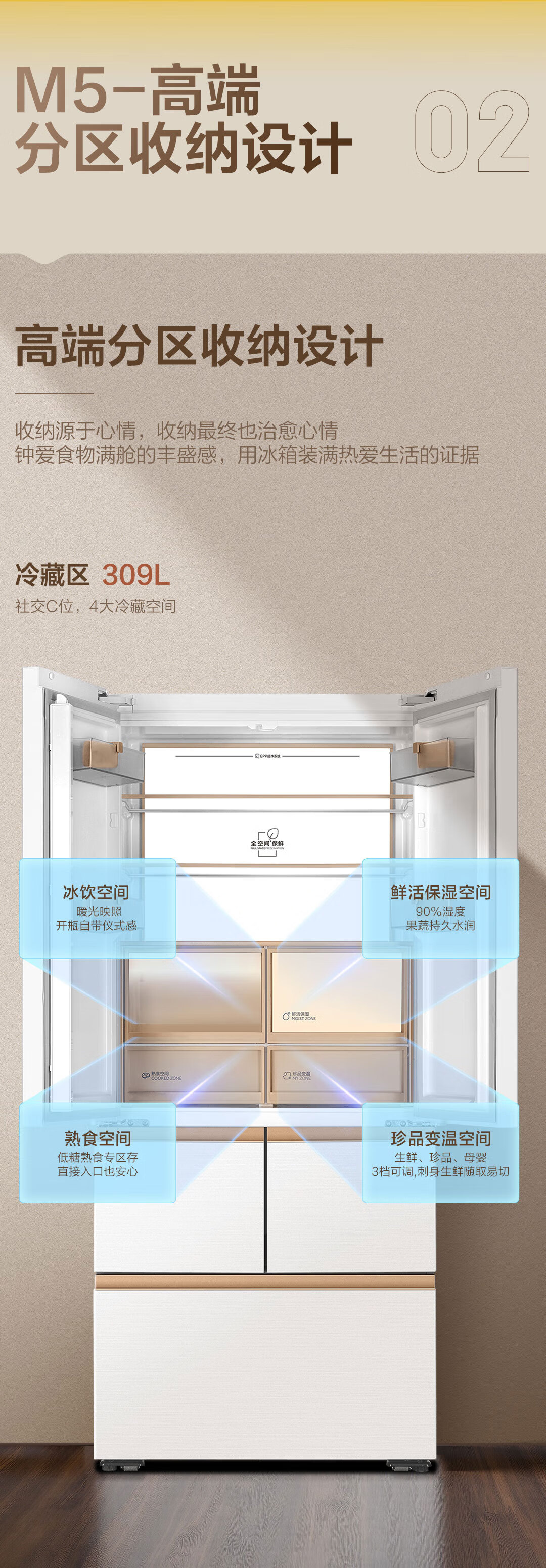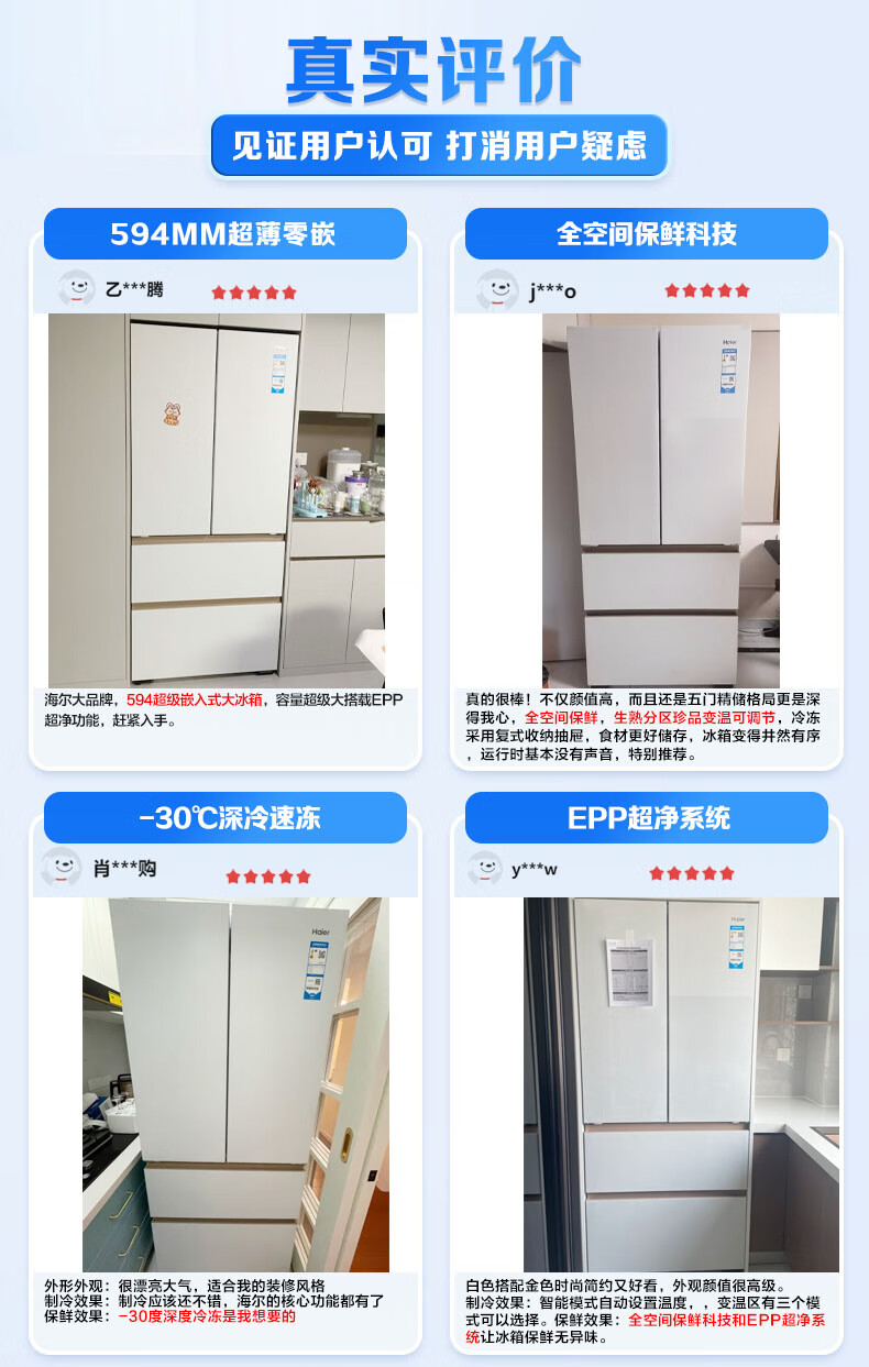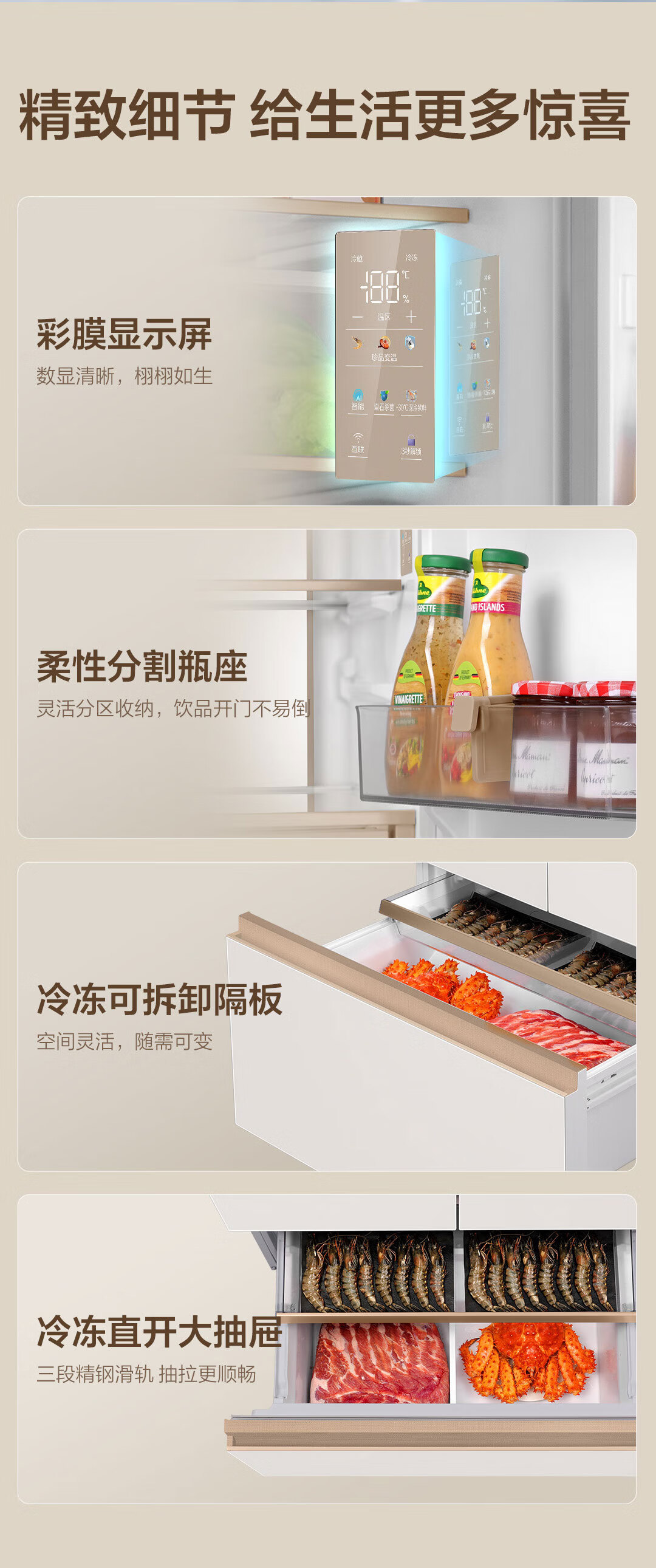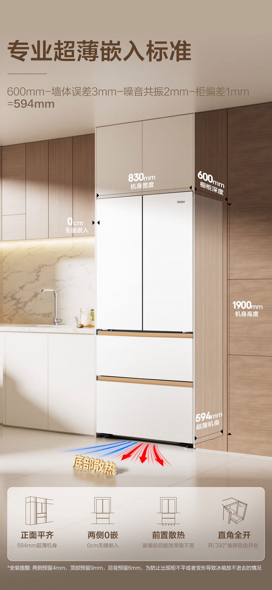 海尔(Haier)511/512升麦浪套系全空间保鲜594专业超薄零嵌法式多门EPP超净一级能效变温家用电冰箱国家补贴20% 五门BCD-512WGHMD1BWLU1咨询领补贴