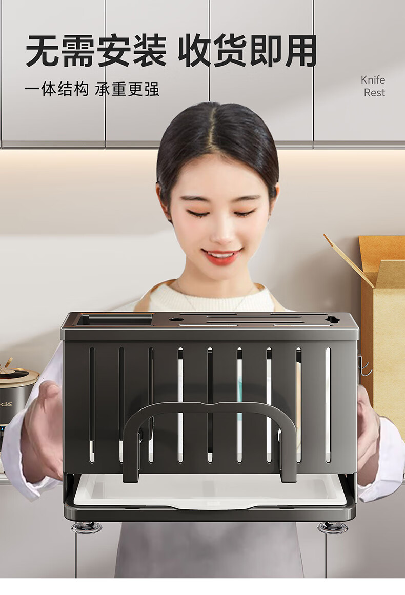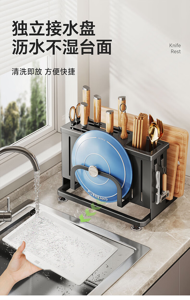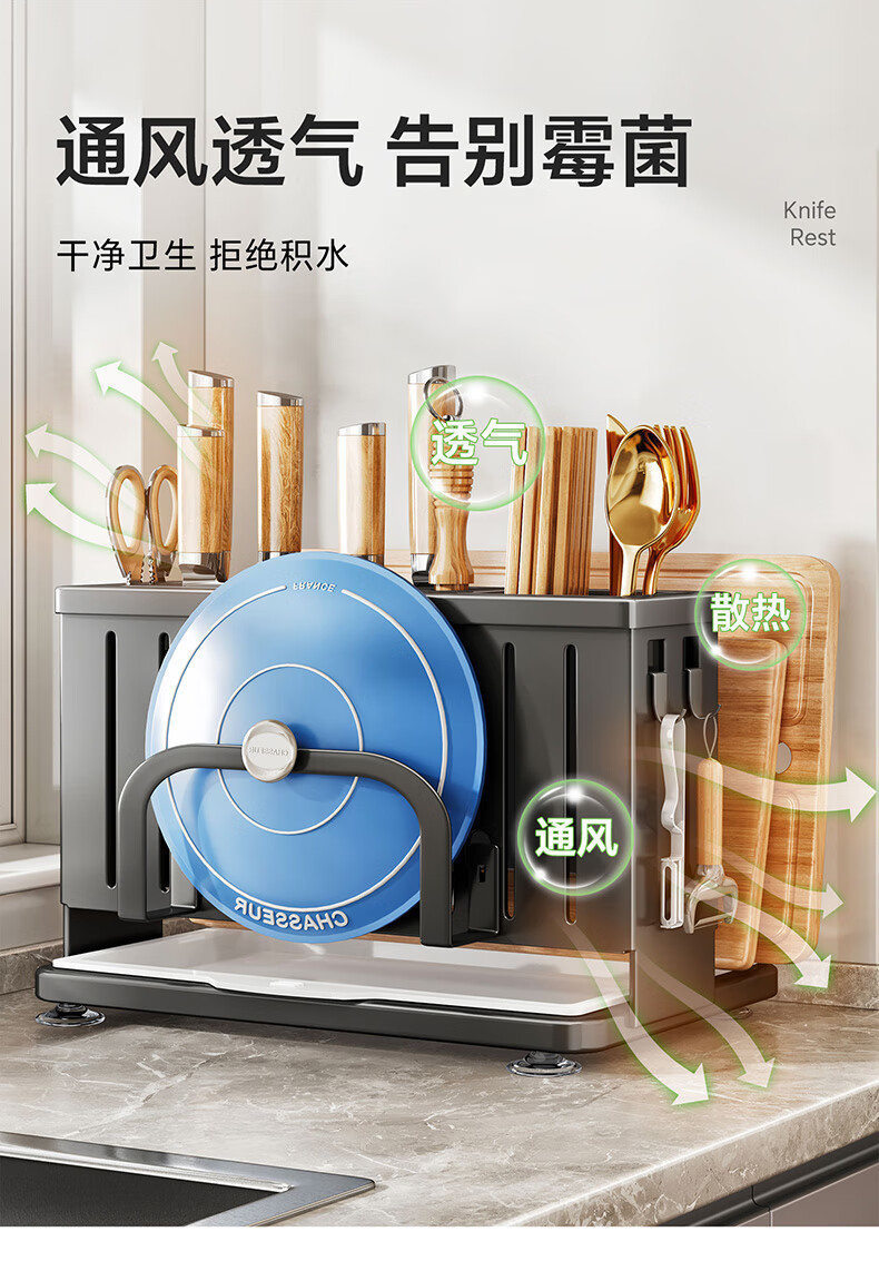 帅仕(shuaishi)厨房刀架置物架放菜刀板锅盖一体砧板筷子笼刀具收纳架双筷筒台面