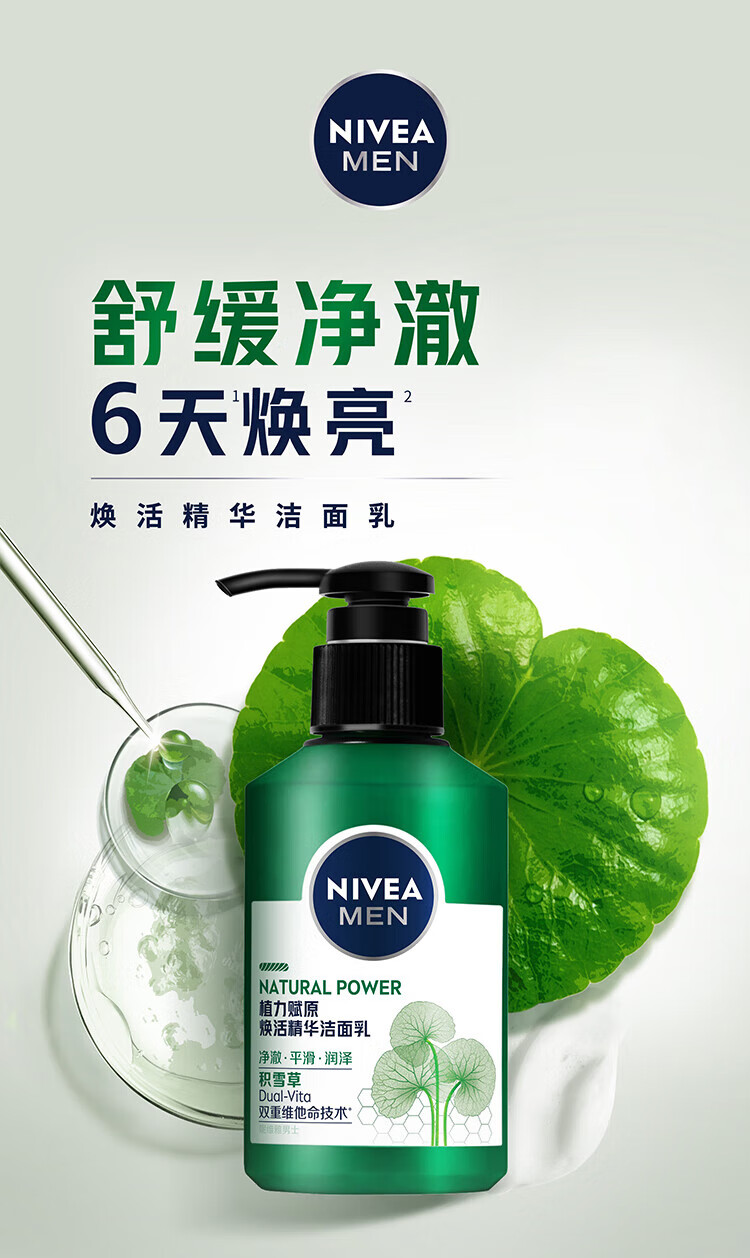妮维雅男士积雪草植力赋原焕活精华洁面乳150ml 洗面奶 【临期清仓】