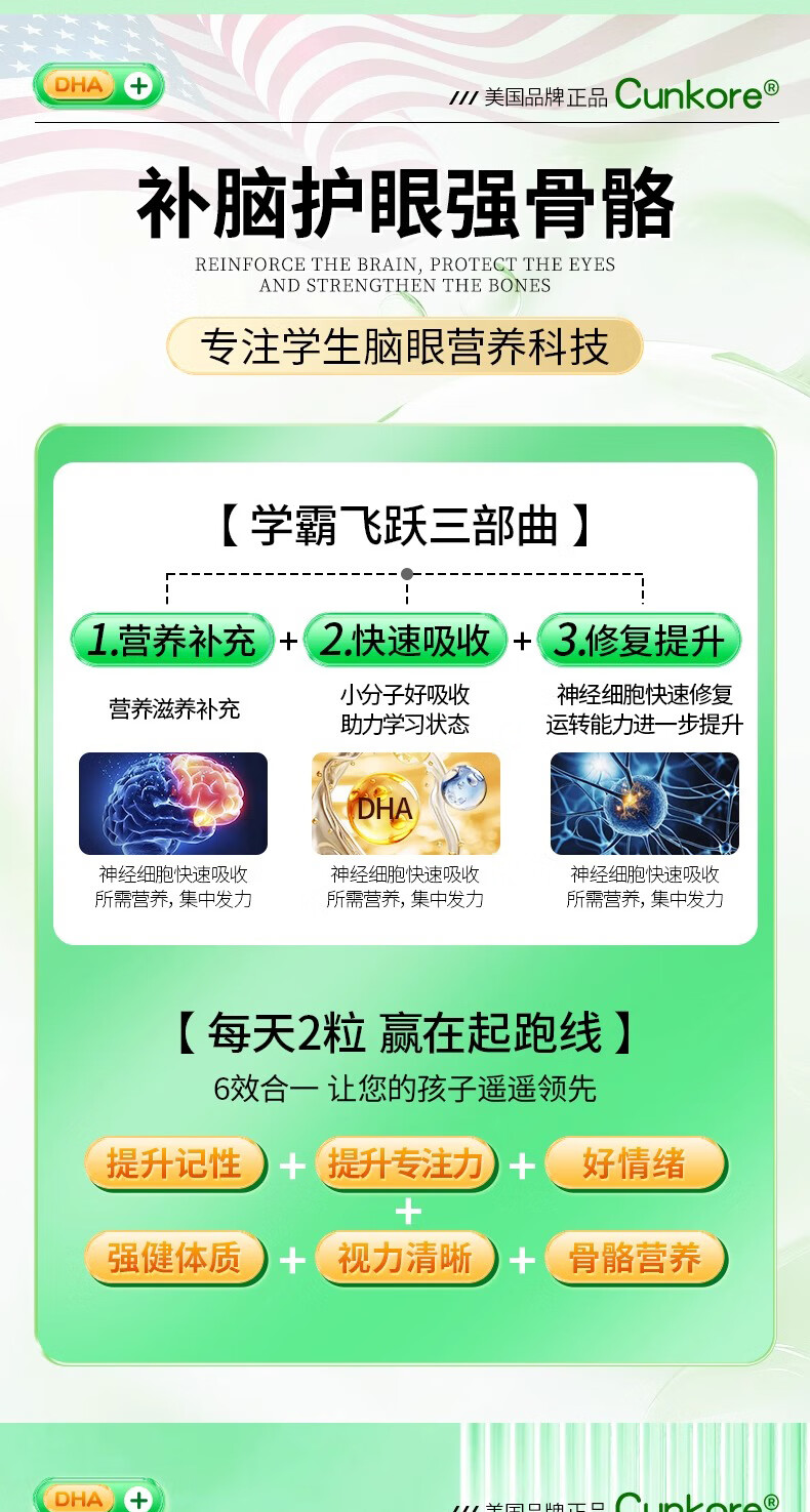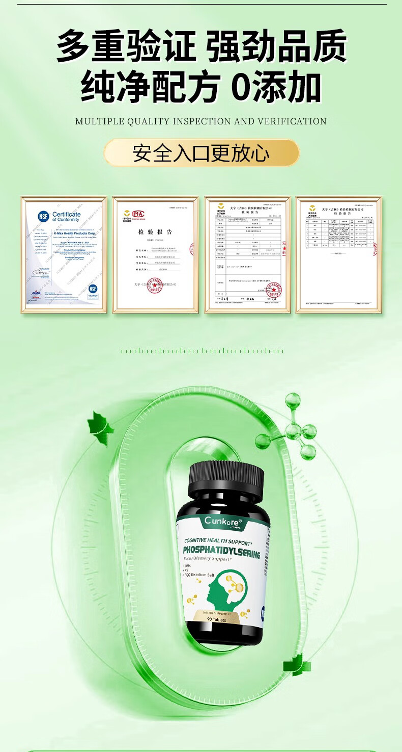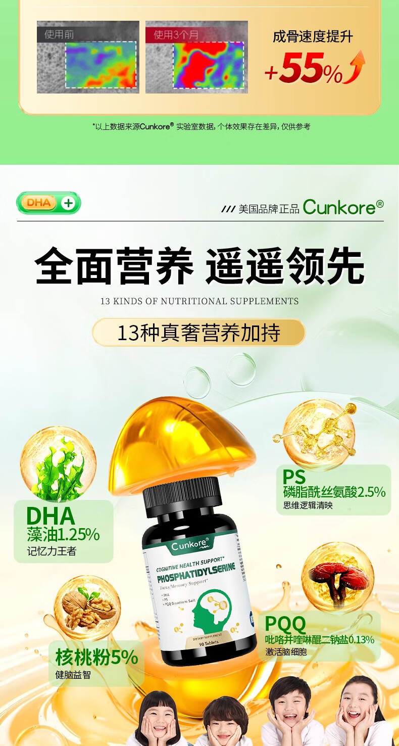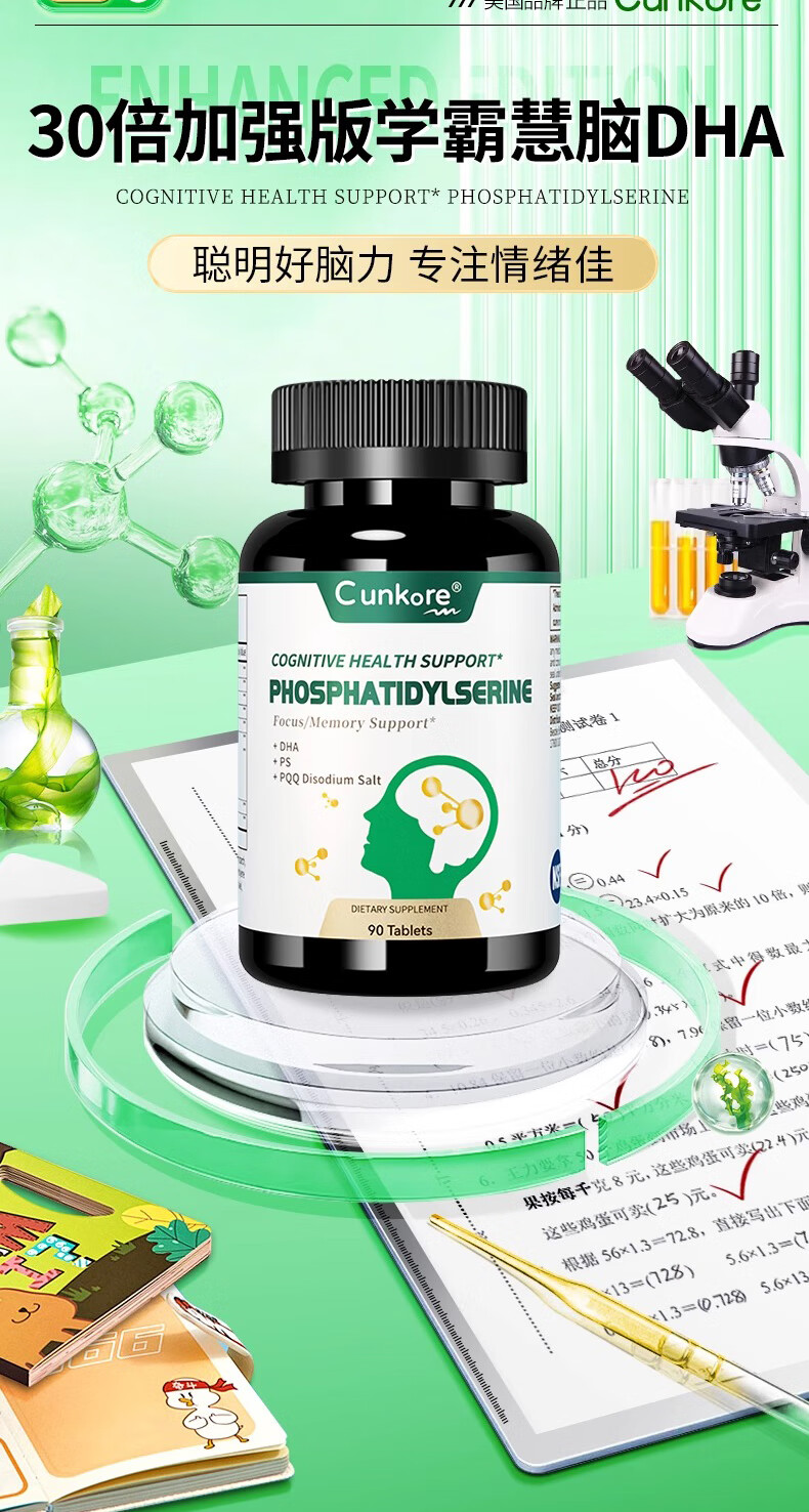 Cunkore原装进口神经酸dha学生青少年补脑增强记忆力 磷脂酰丝氨酸 90/粒