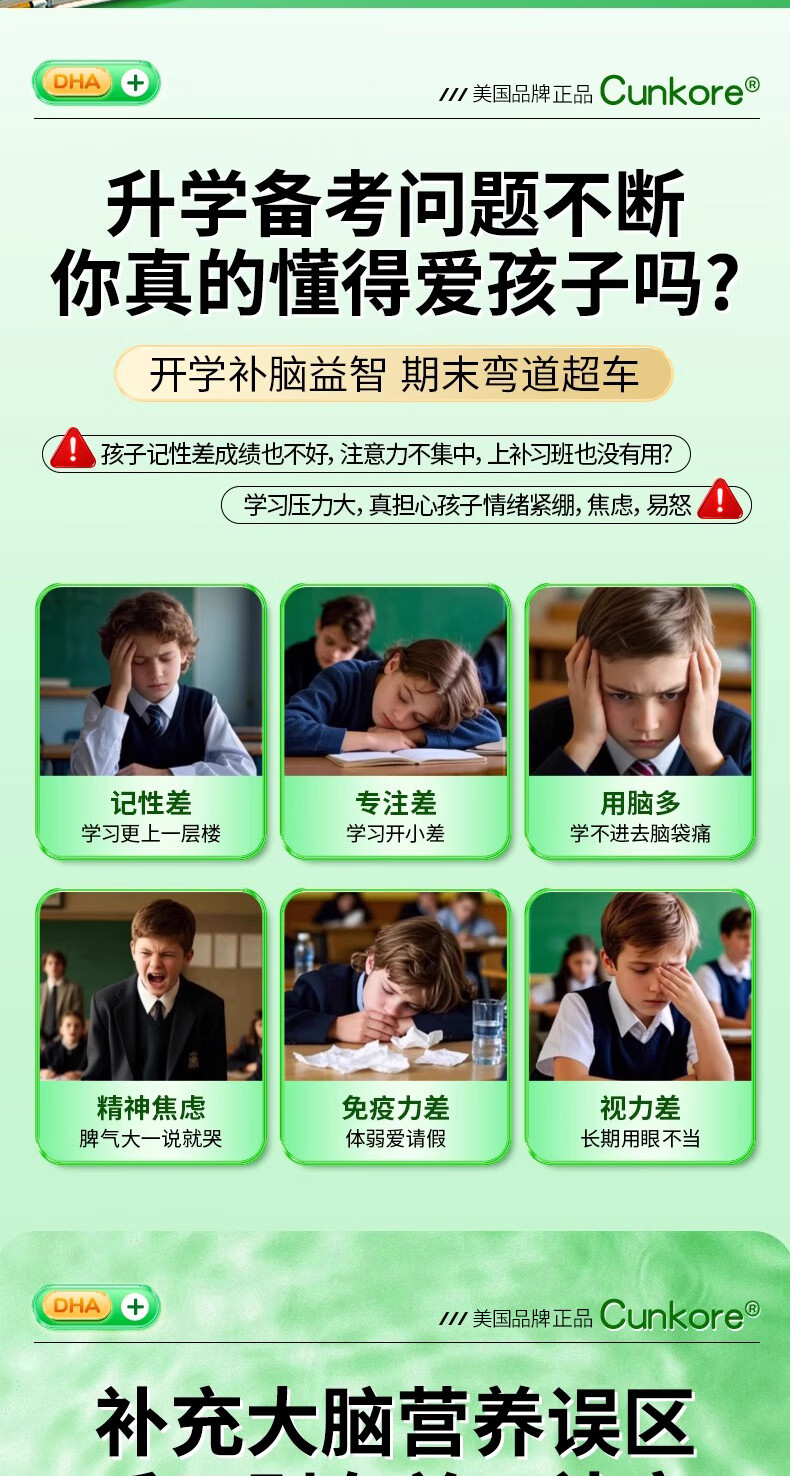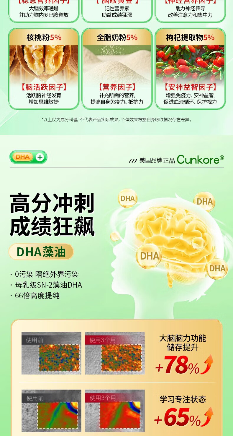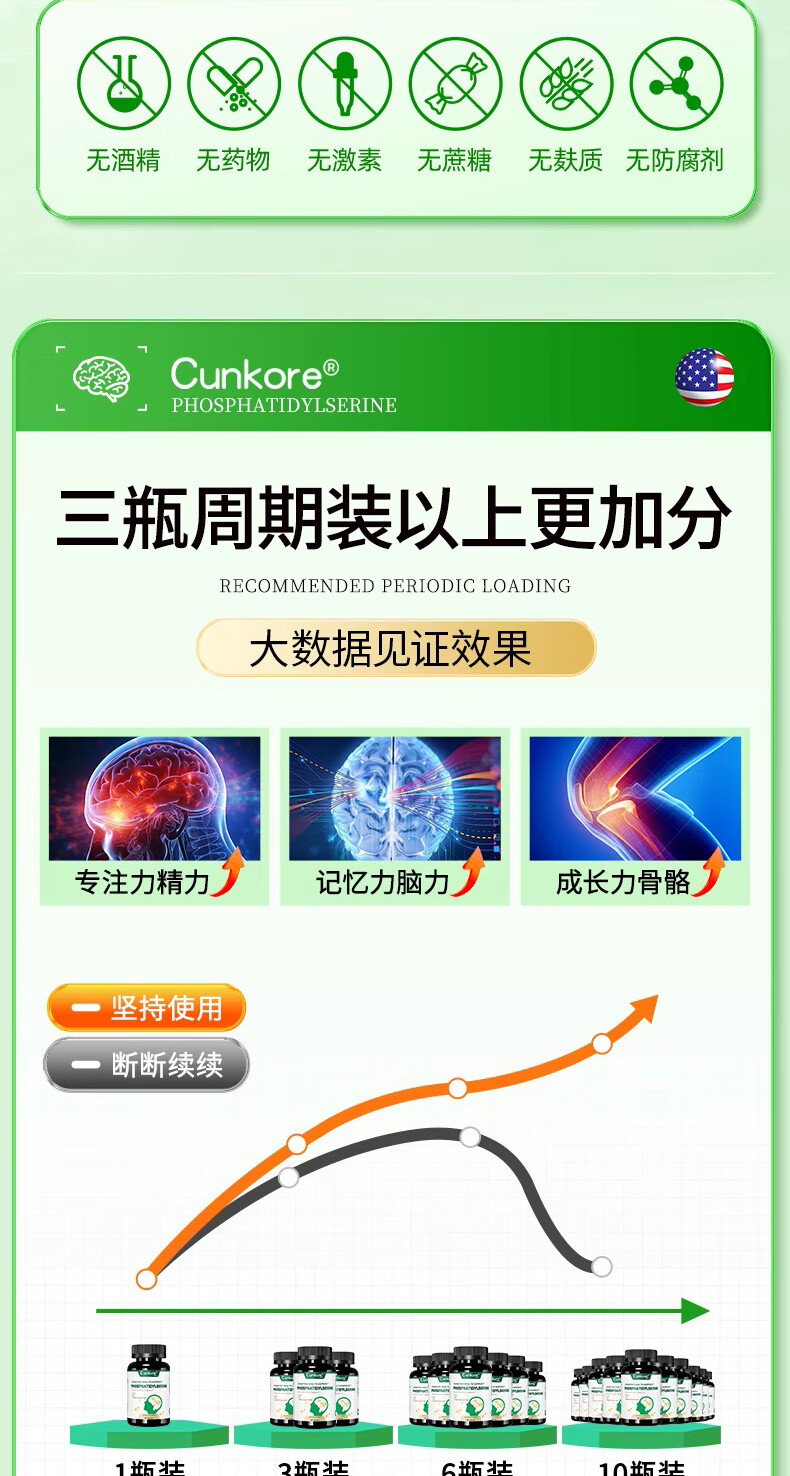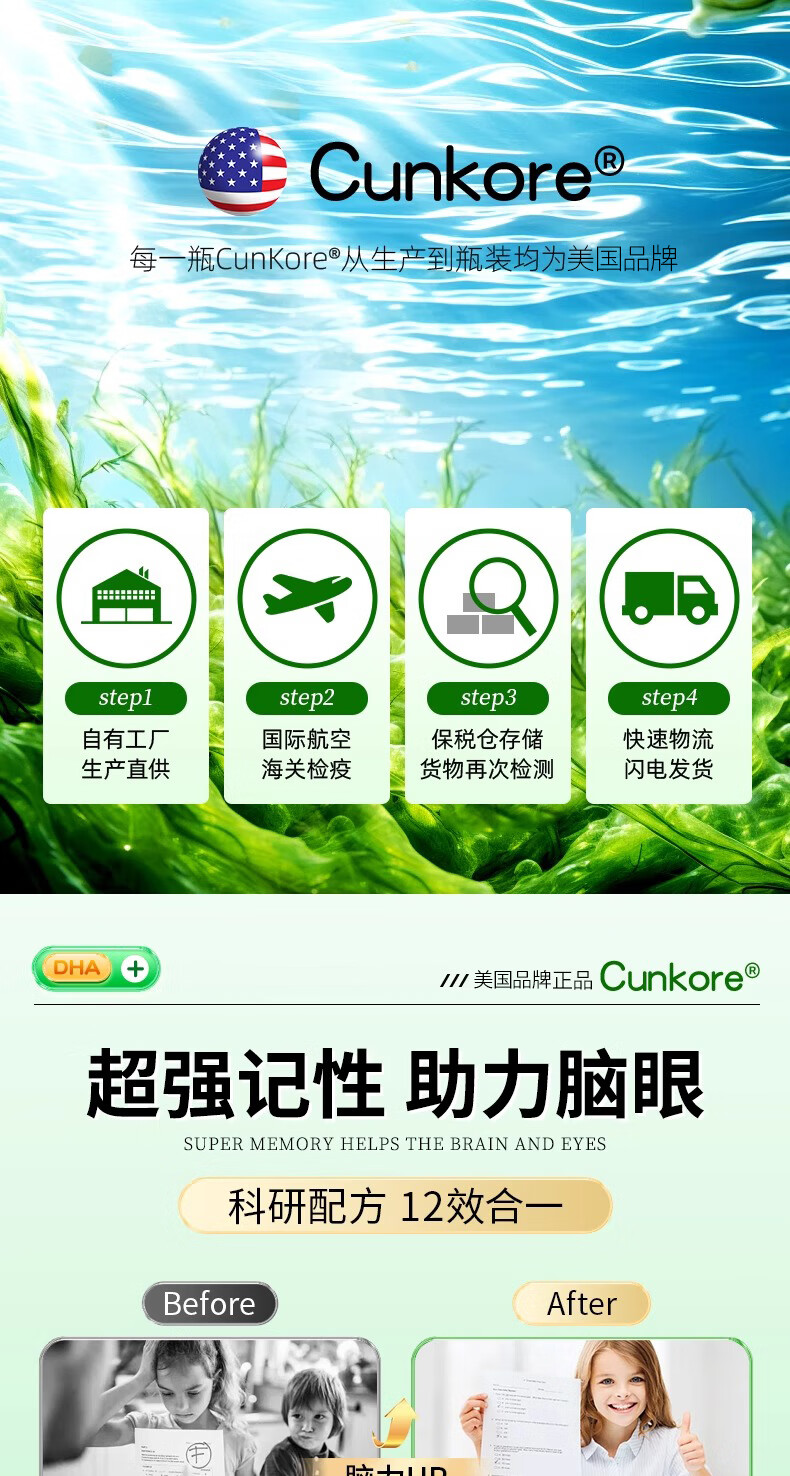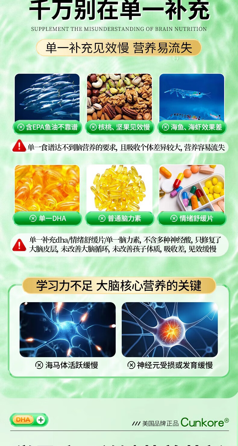Cunkore原装进口神经酸dha学生青少年补脑增强记忆力 磷脂酰丝氨酸 90/粒