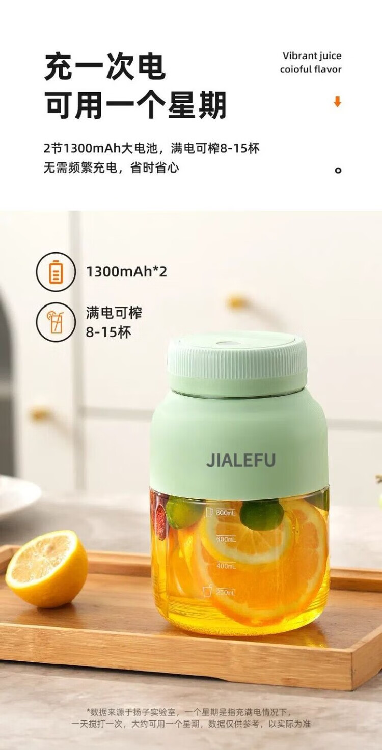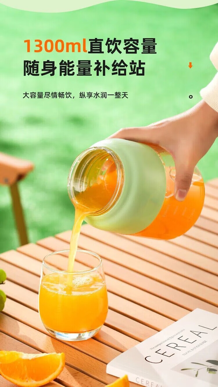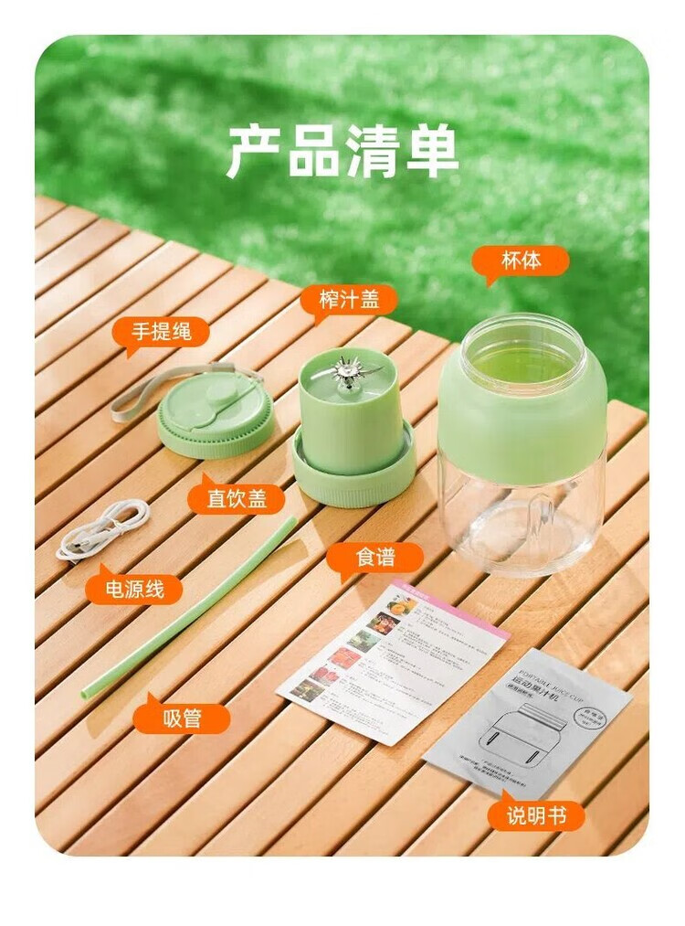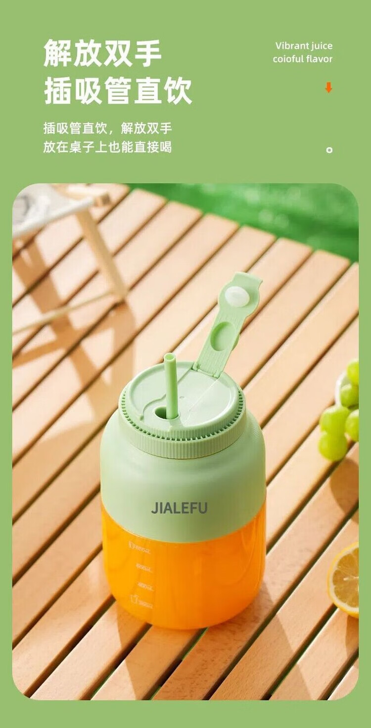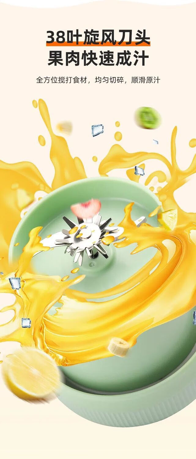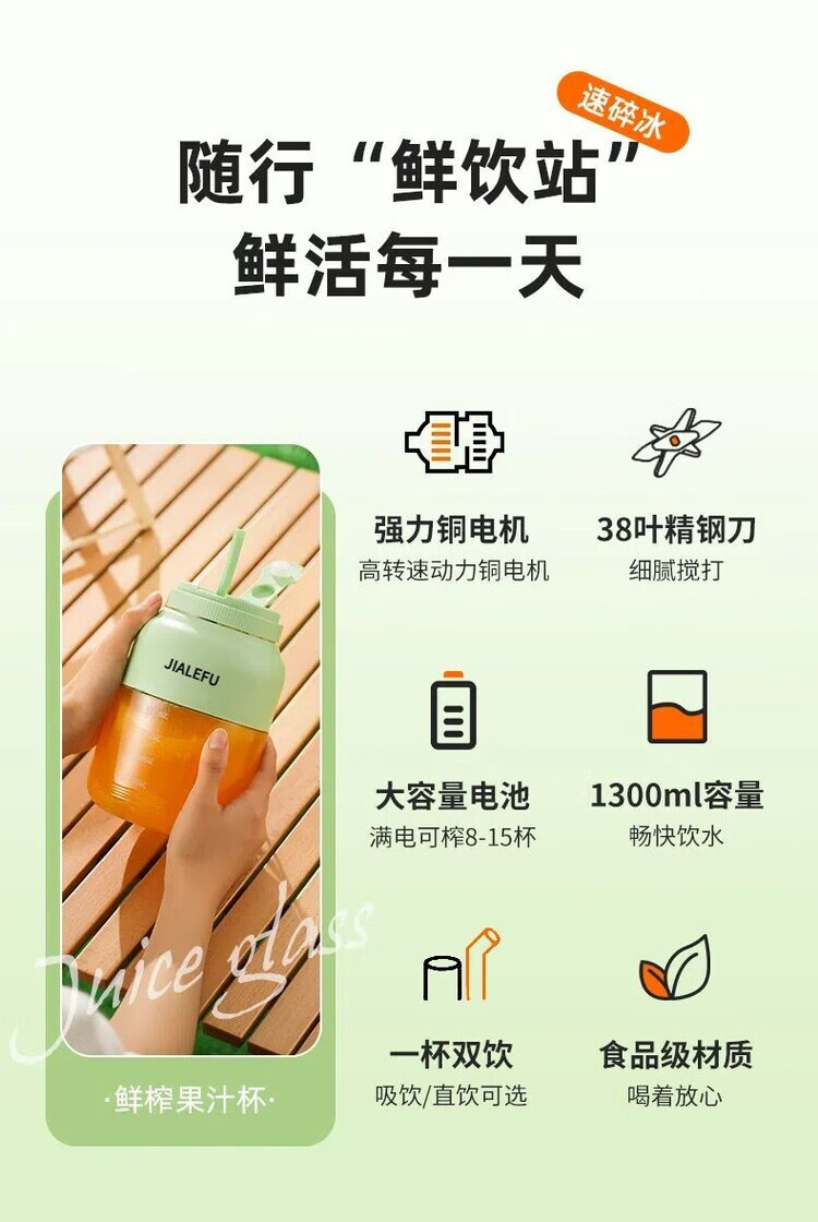DEATKN多功能便携榨汁机大容量家用果汁机无线便携鲜榨 绿色1300ML/38叶刀送手提带+吸管
