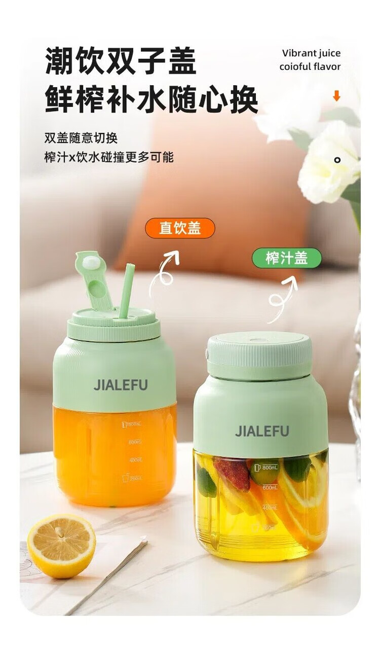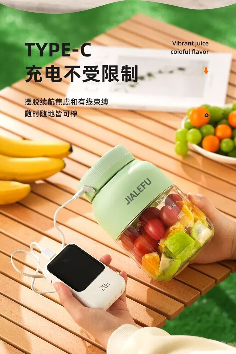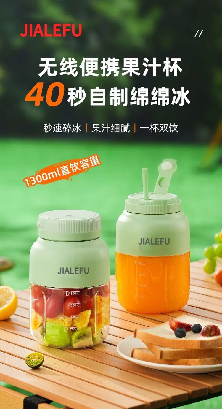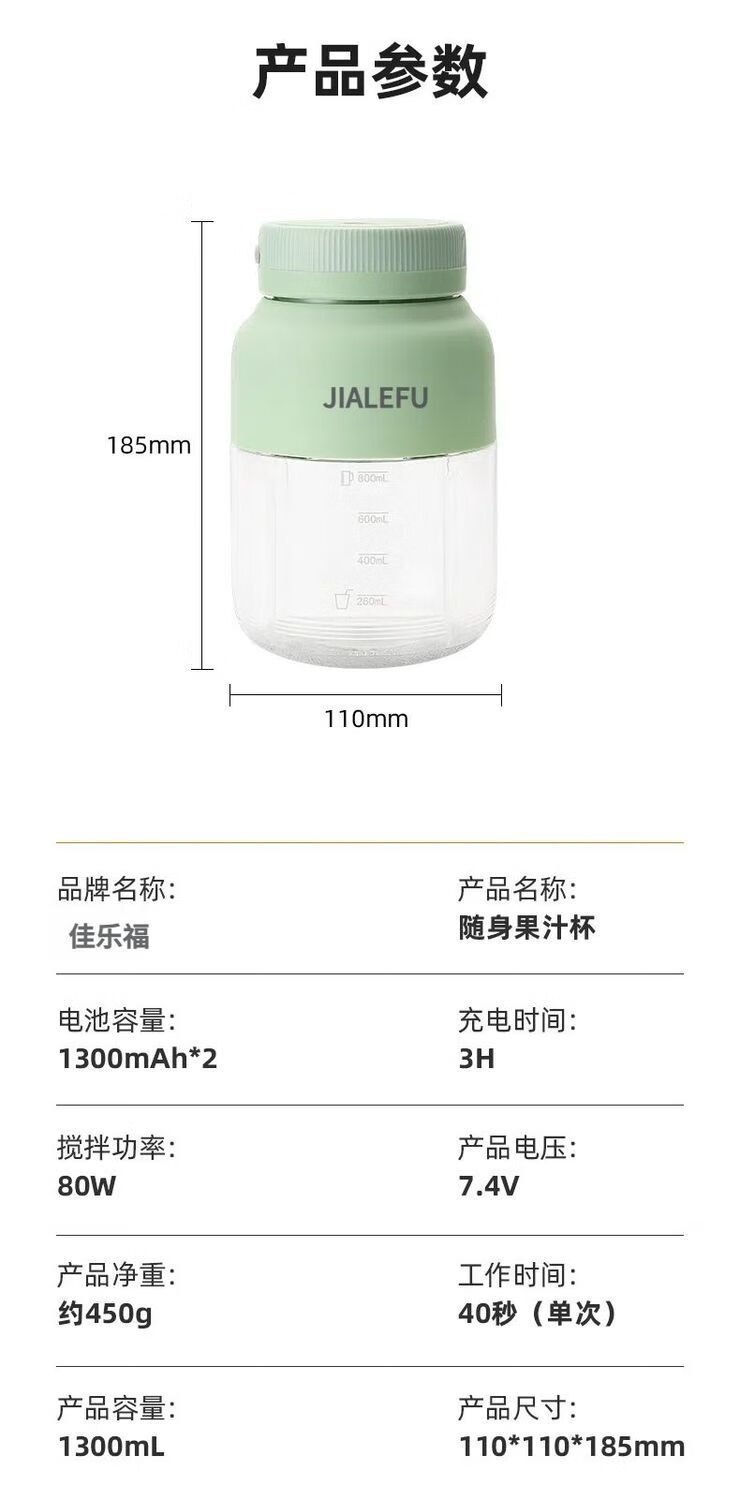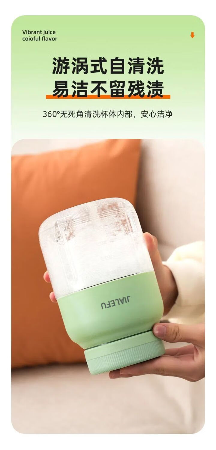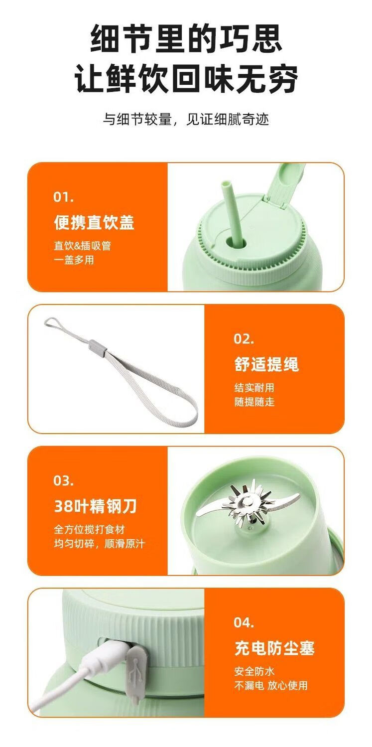 DEATKN多功能便携榨汁机大容量家用果汁机无线便携鲜榨 绿色1300ML/38叶刀送手提带+吸管
