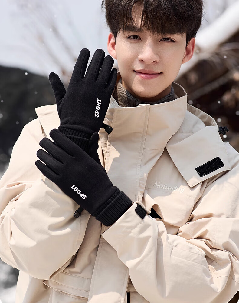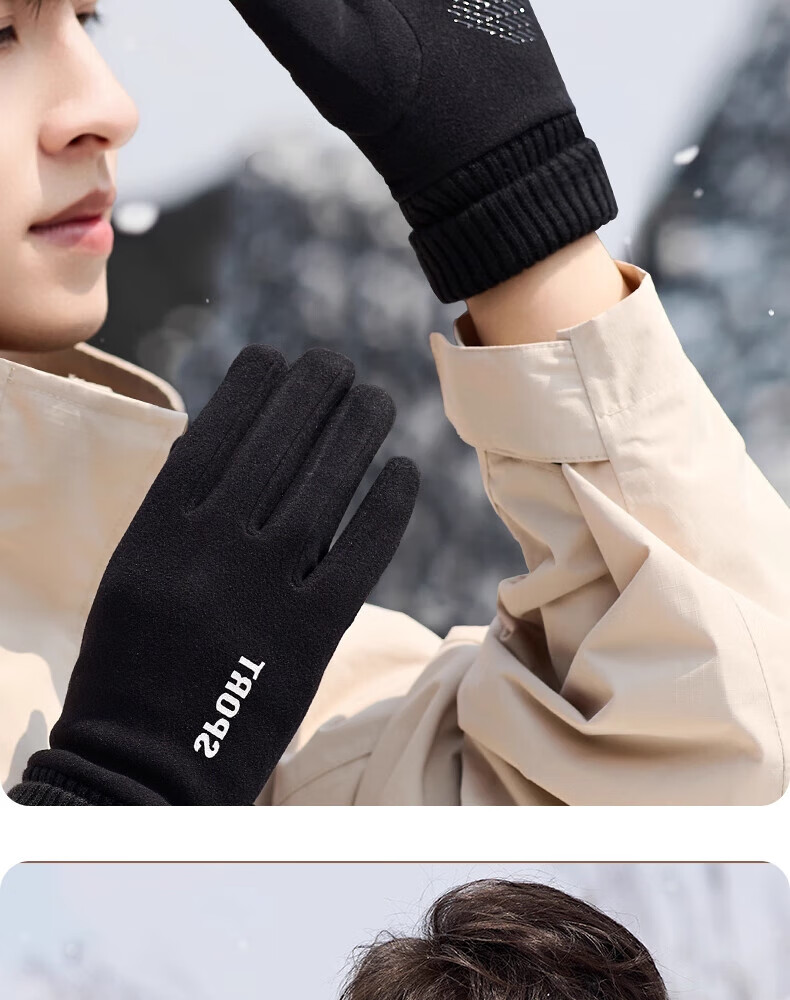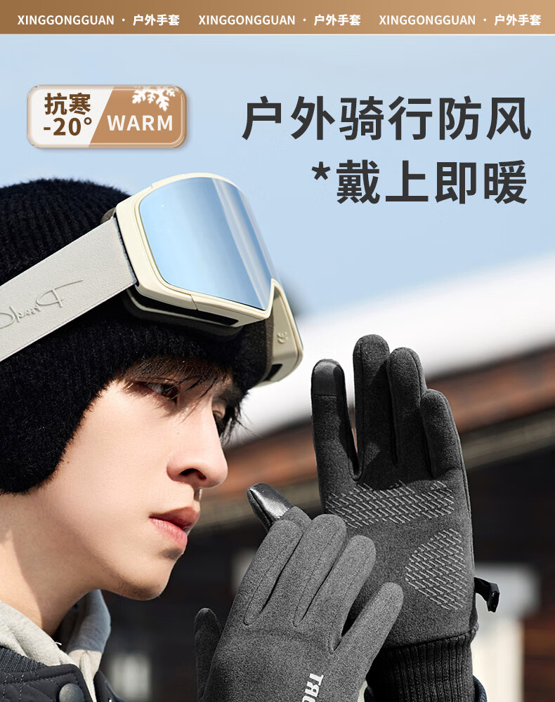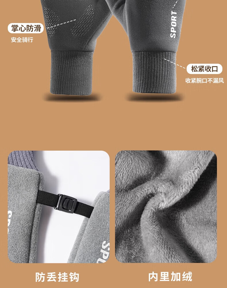 WCZ德国防风加绒加厚可触屏手套男秋冬季保暖防寒冬天户外骑行登山骑 云炭黑(男款) 均码