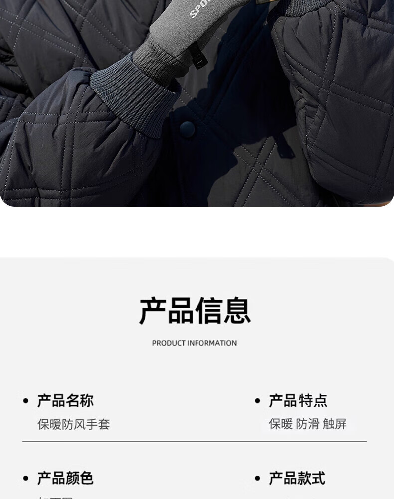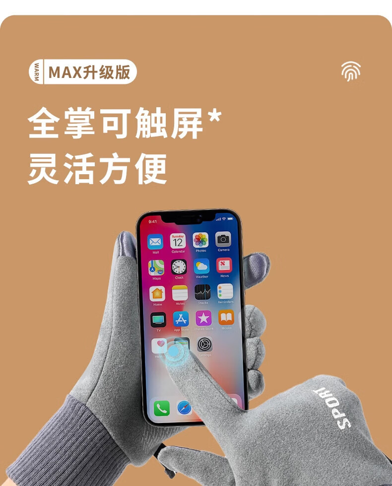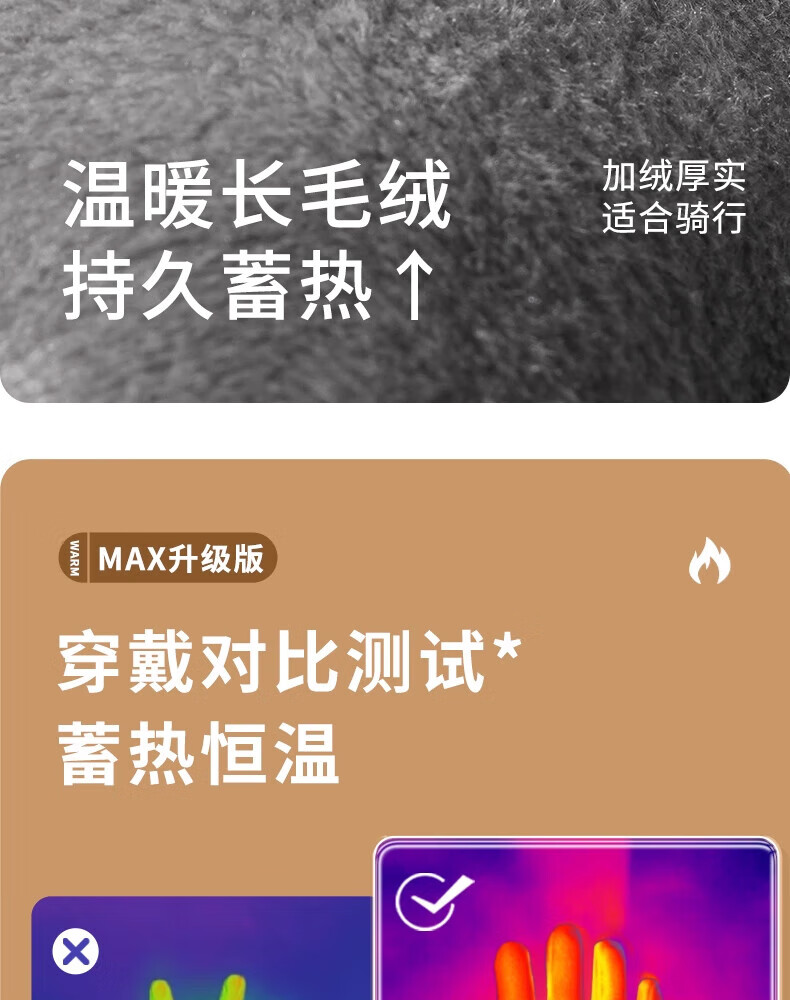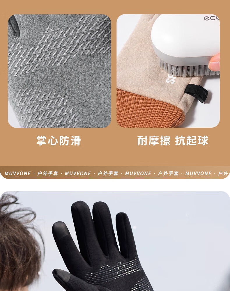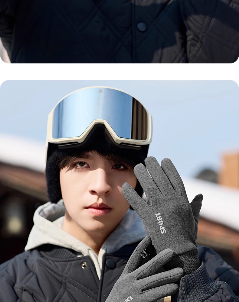 WCZ德国防风加绒加厚可触屏手套男秋冬季保暖防寒冬天户外骑行登山骑 云炭黑(男款) 均码