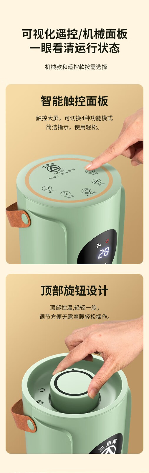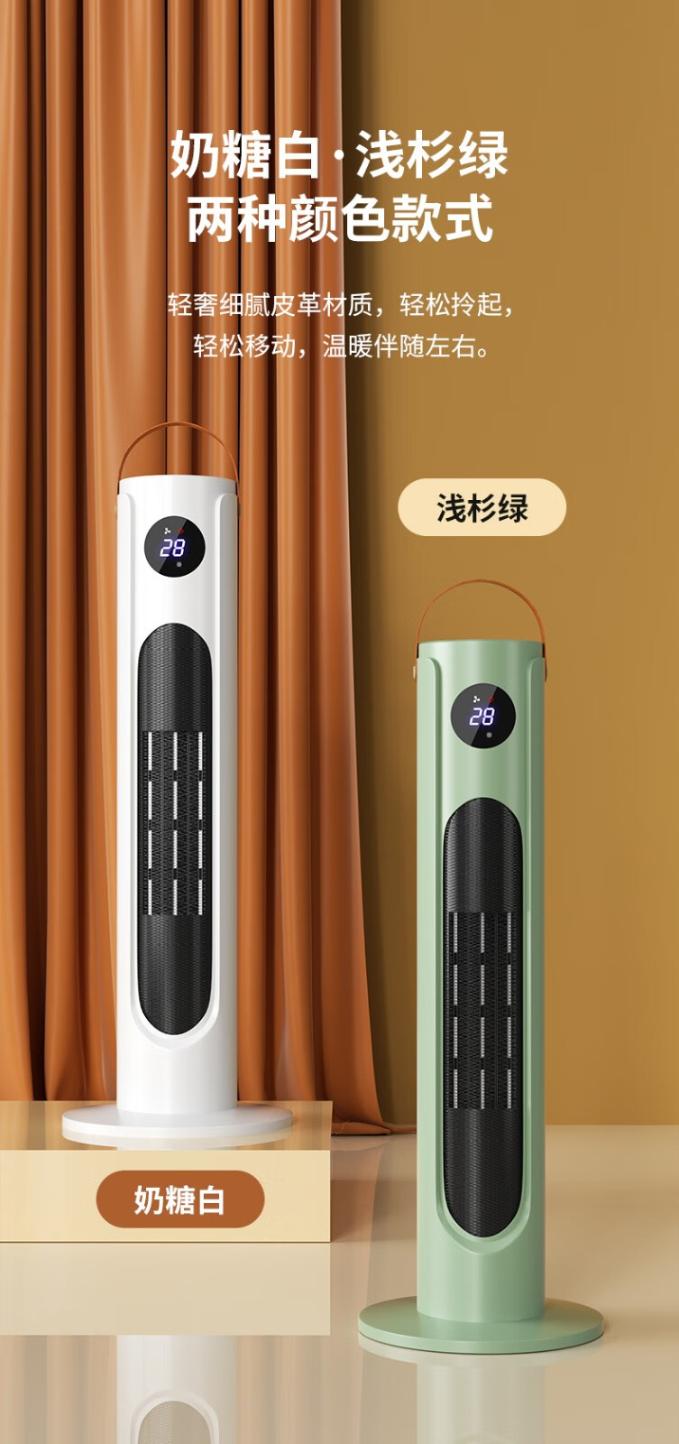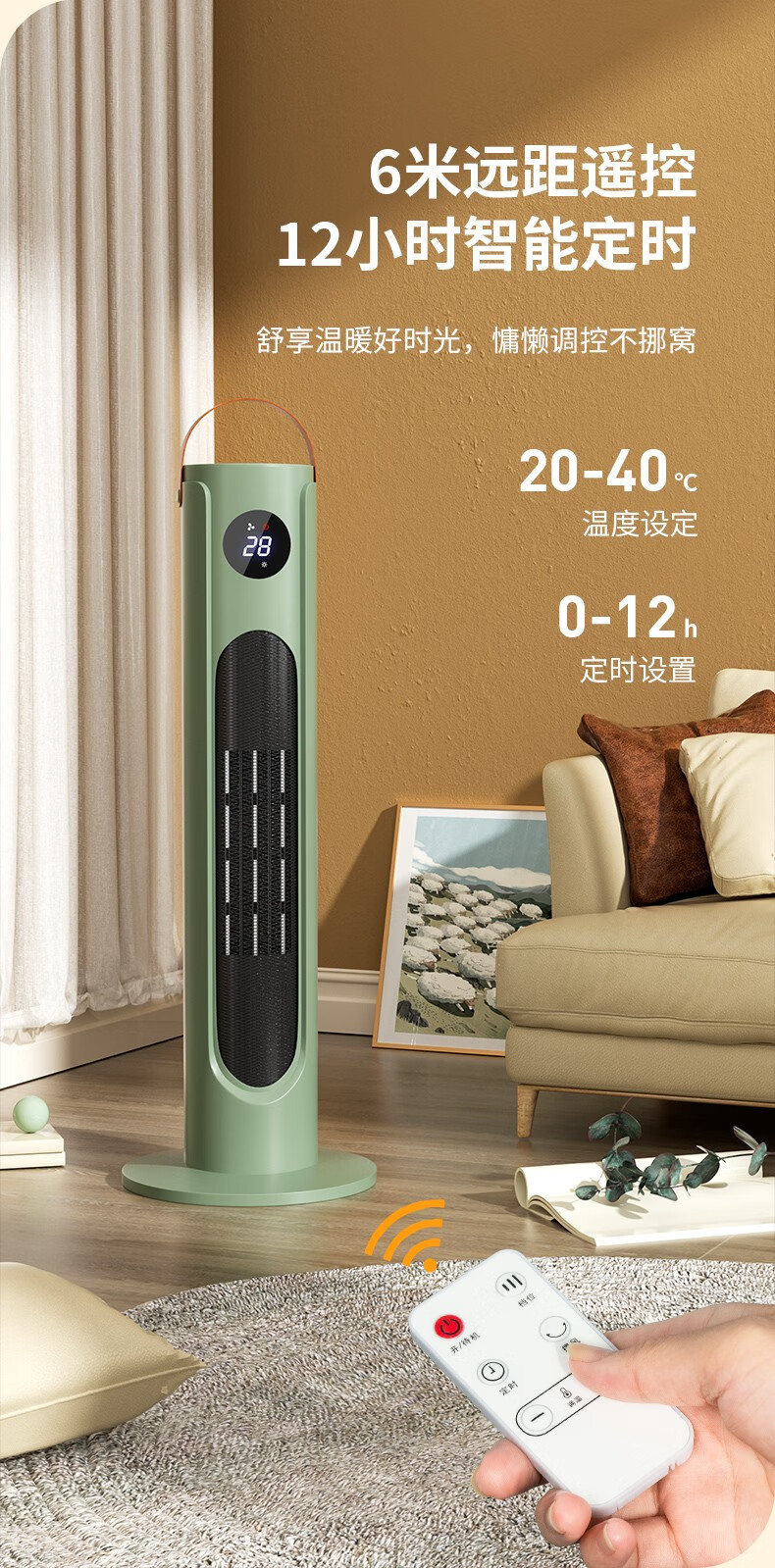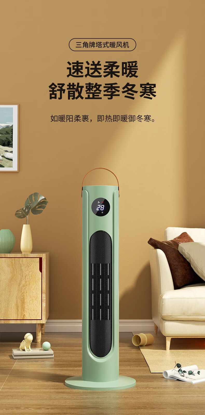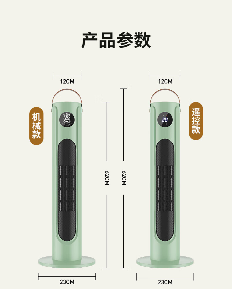 三角牌(Triangle) 取暖器暖风机电暖器电暖气热风机家用浴室卧室办公室塔式立式小太阳电热扇 奶白塔扇2000W【遥控智能】三档调温