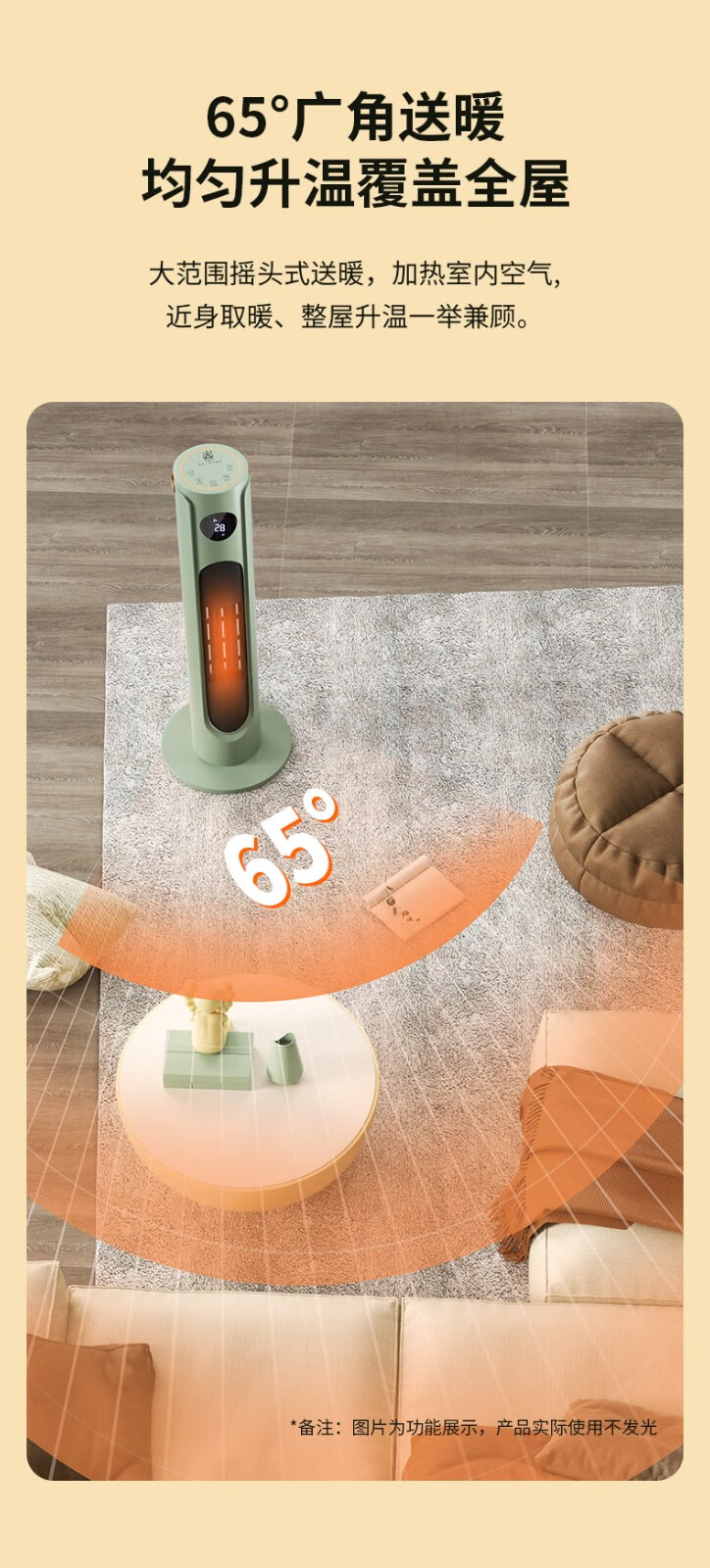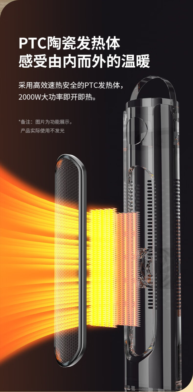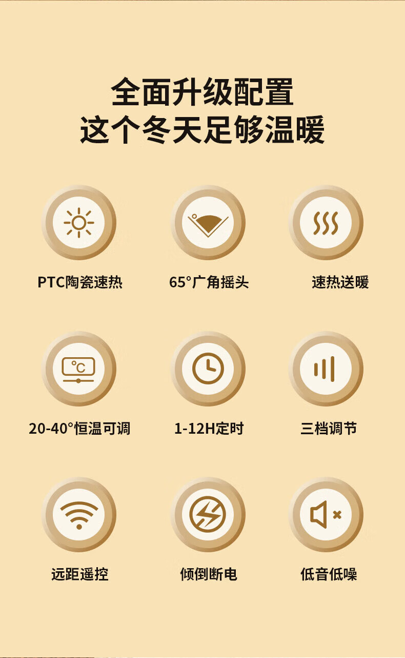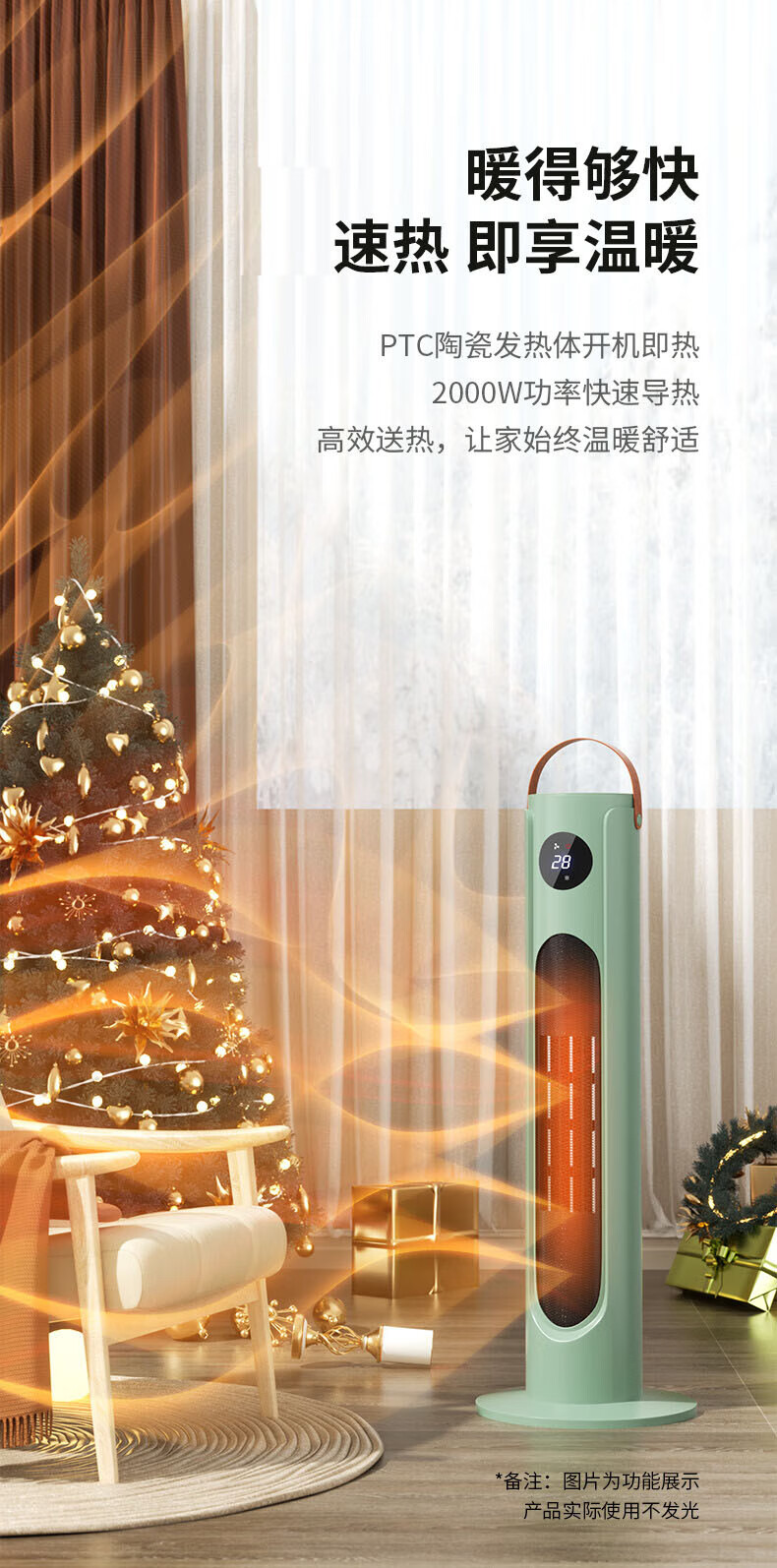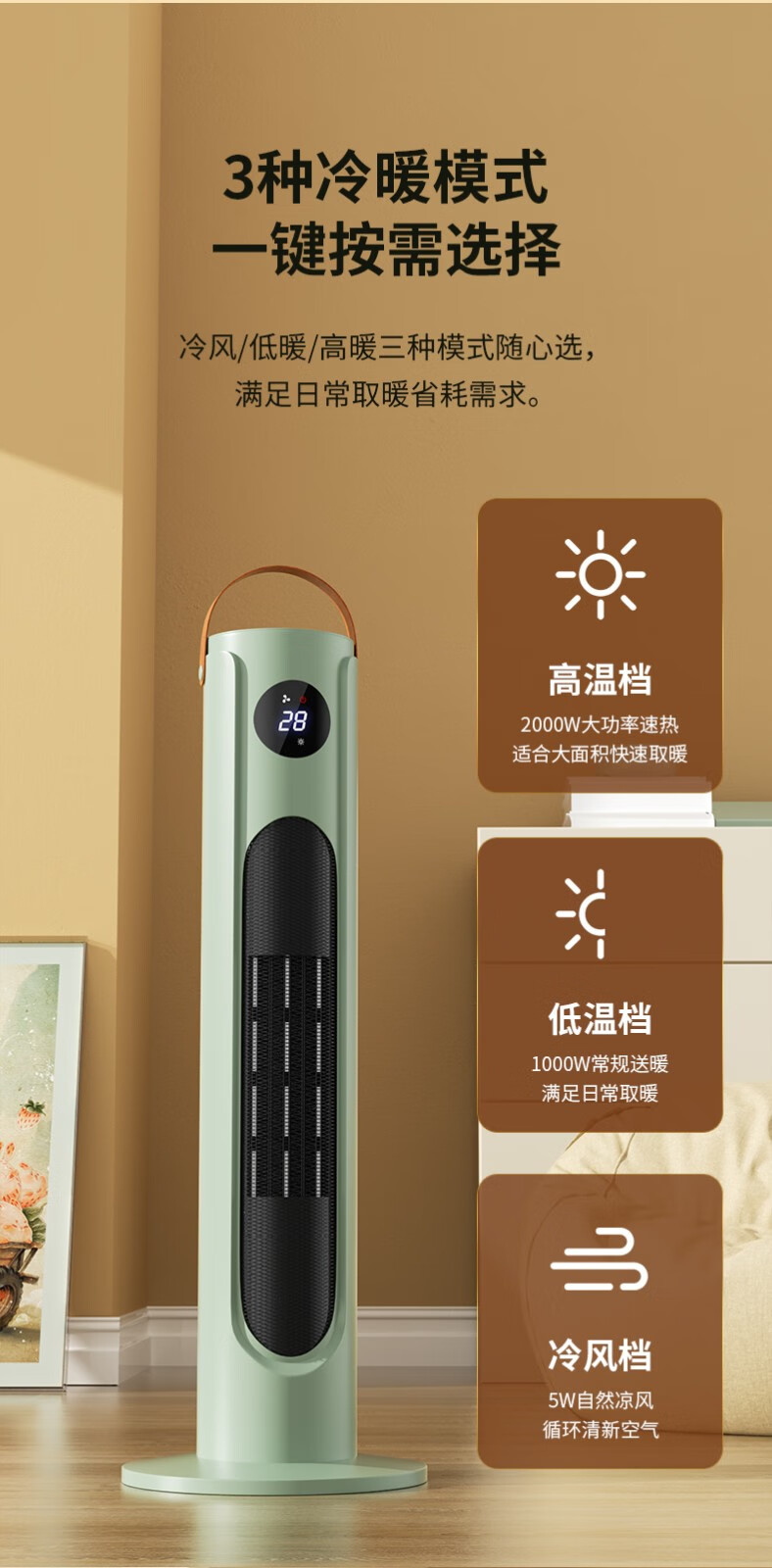 三角牌(Triangle) 取暖器暖风机电暖器电暖气热风机家用浴室卧室办公室塔式立式小太阳电热扇 奶白塔扇2000W【遥控智能】三档调温