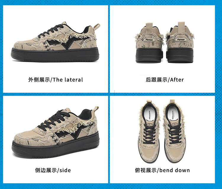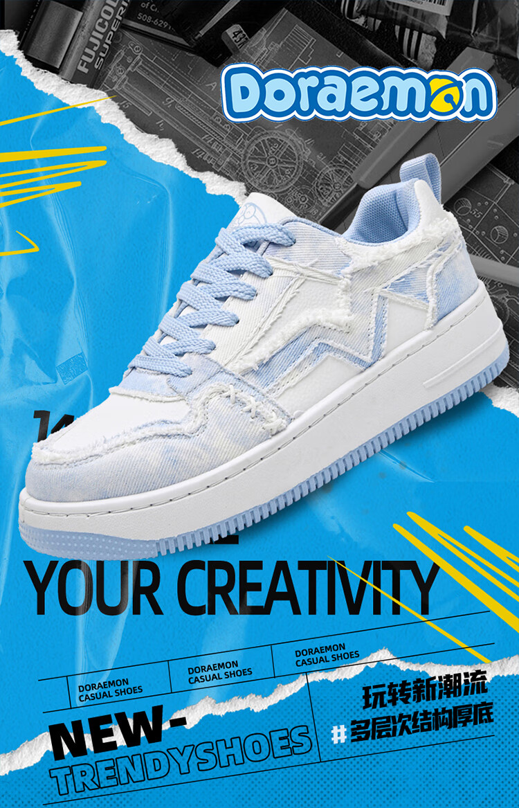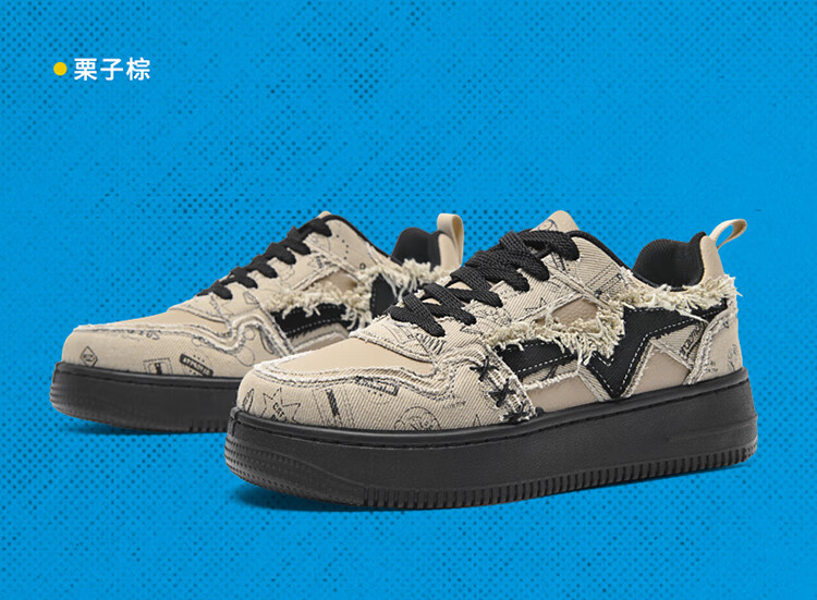 哆啦A梦男鞋秋季新款复古百搭厚底板鞋男士低帮透气运动休闲鞋子男款潮鞋 栗子棕 44
