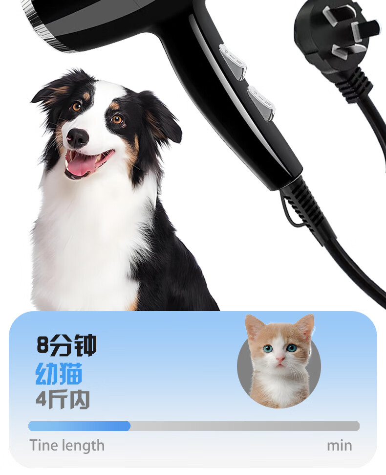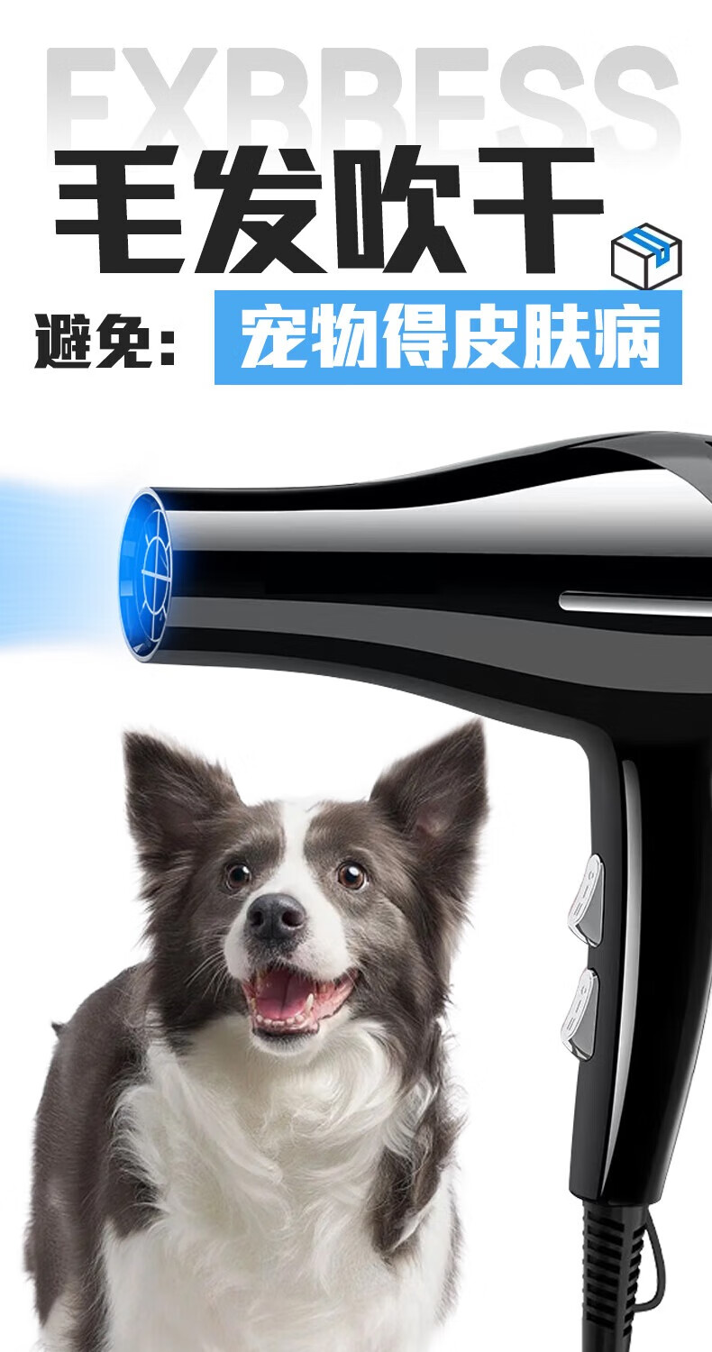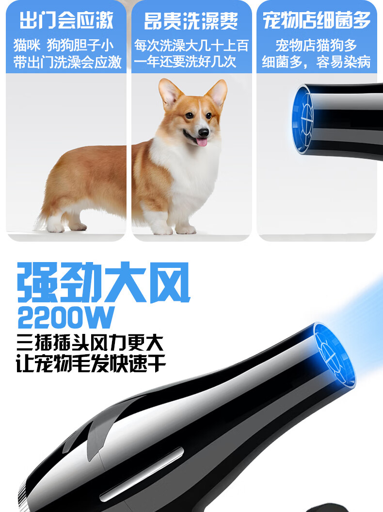 宠物电吹风机狗狗专用大功率蓝光猫犬通用除螨宠物店大风力吹水机 钢琴黑--2200风力[中长毛通用型]