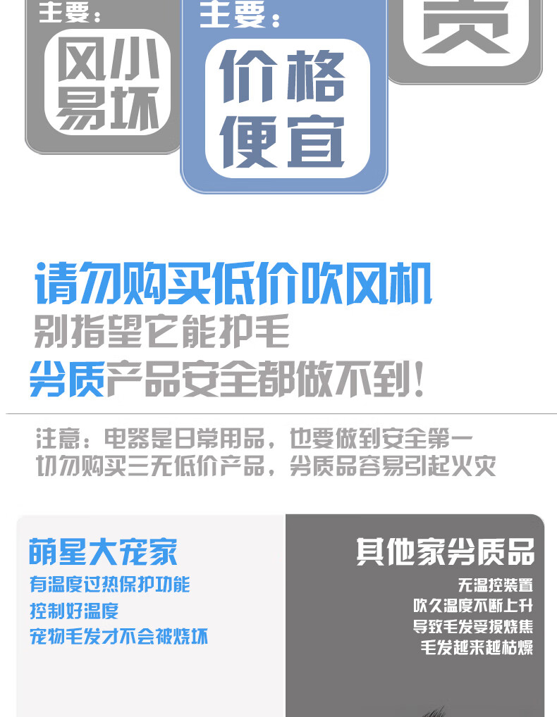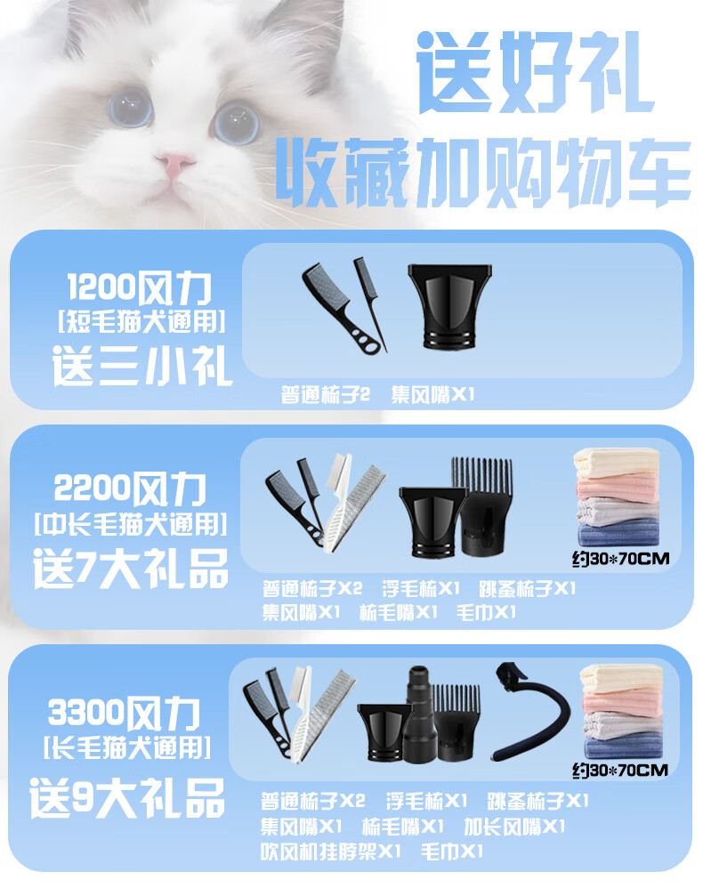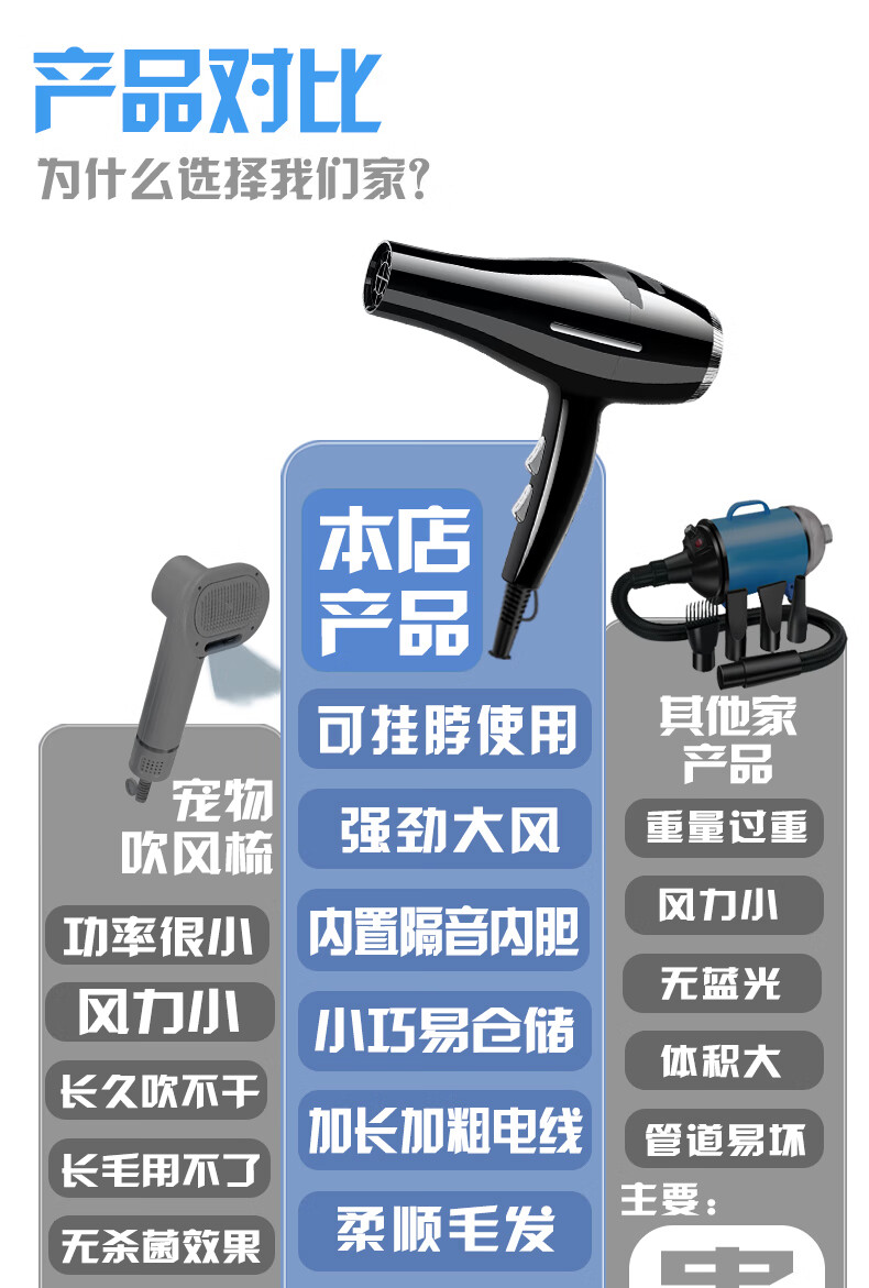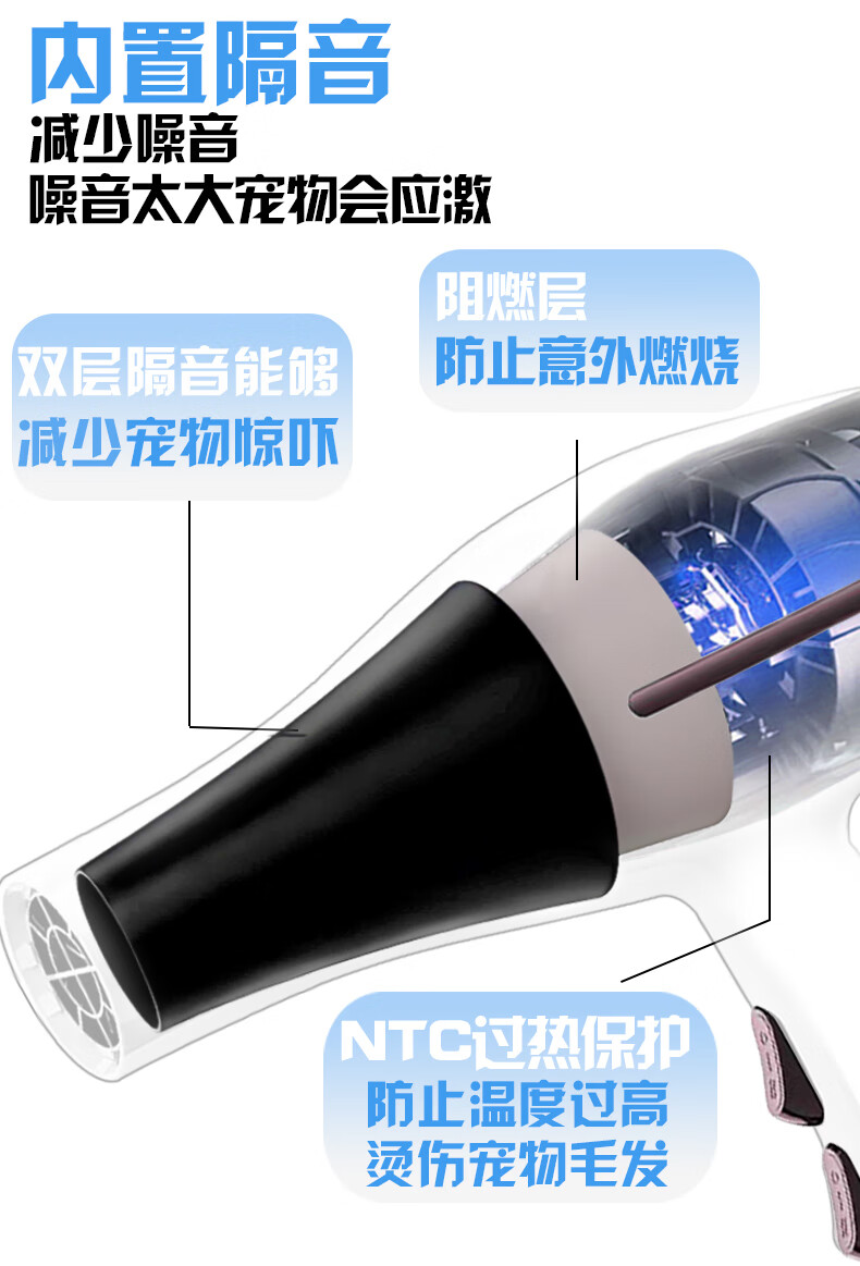 宠物电吹风机狗狗专用大功率蓝光猫犬通用除螨宠物店大风力吹水机 钢琴黑--2200风力[中长毛通用型]