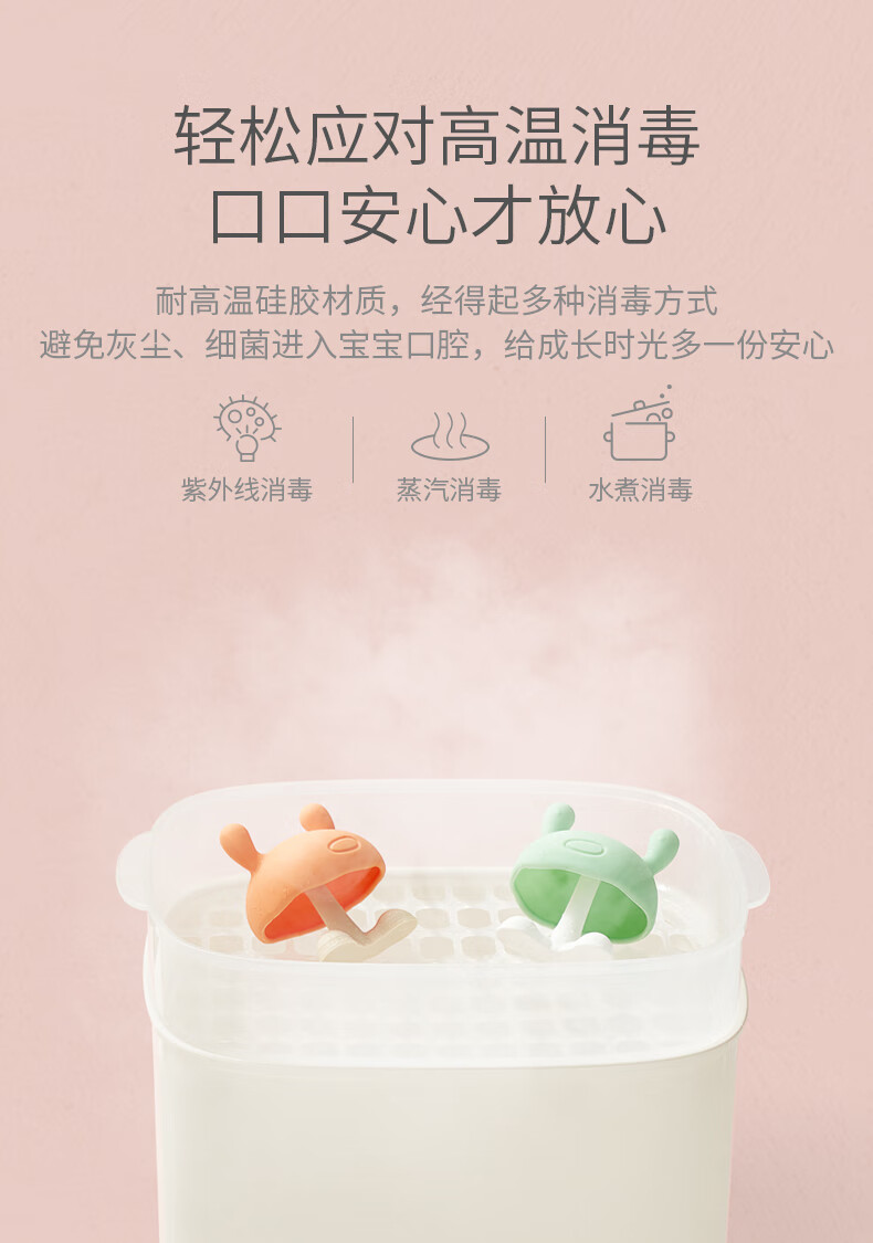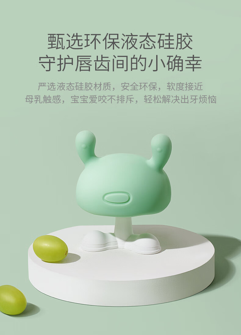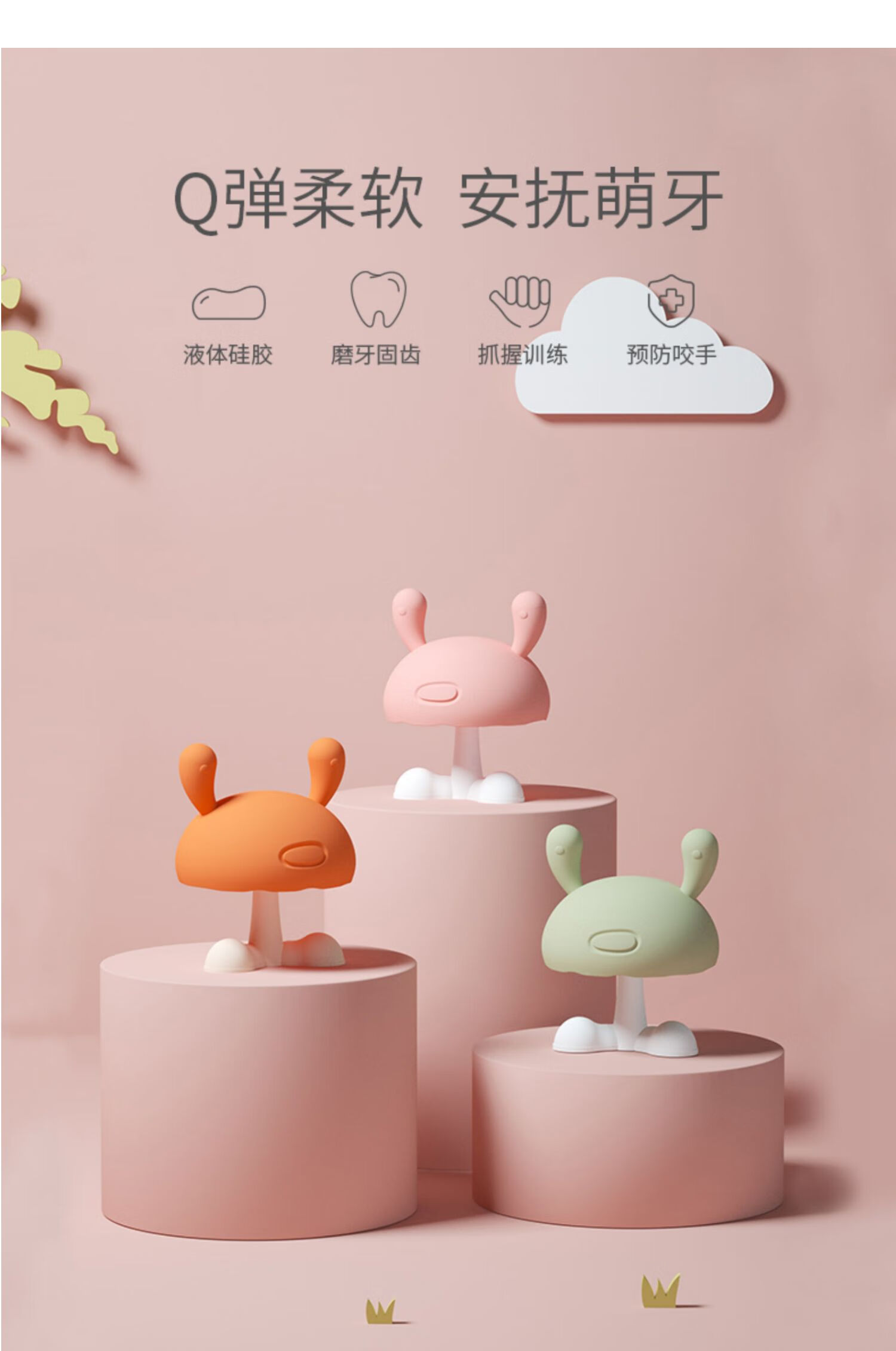 科巢小蘑菇安抚牙胶磨牙婴儿硅胶玩具宝宝防吃手神器咬胶可水煮 哈丁粉