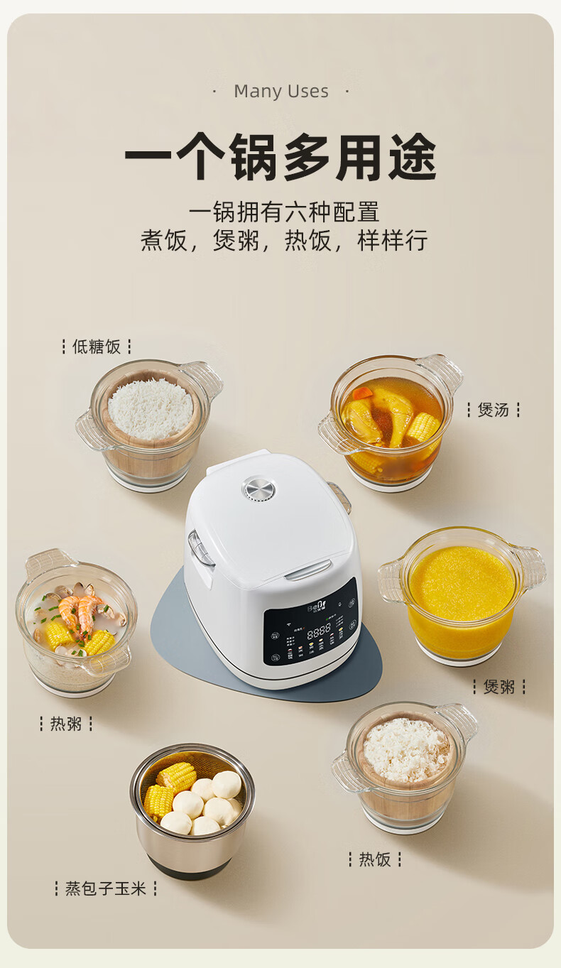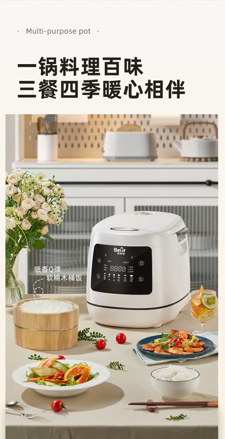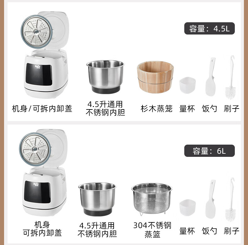 蓓家福低糖电饭煲0涂层家用蒸煮沥米汤分离蒸木桶饭多功能电饭锅 4.5L 304不锈钢锅+木桶 适合1-7人