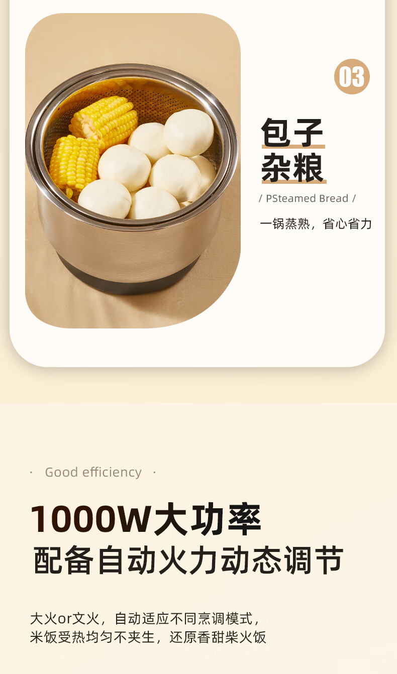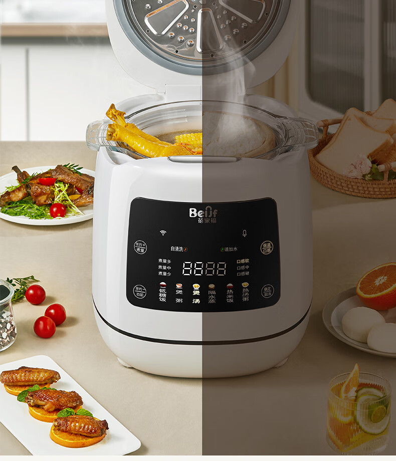 半球(PESKOE) 电蒸锅多功能电热锅家庭电炒锅电锅铸铁锅身不锈钢蒸笼 多用途锅电炒锅多功能炒锅 5L 铸铁电炒锅32CM(适用3~5人)