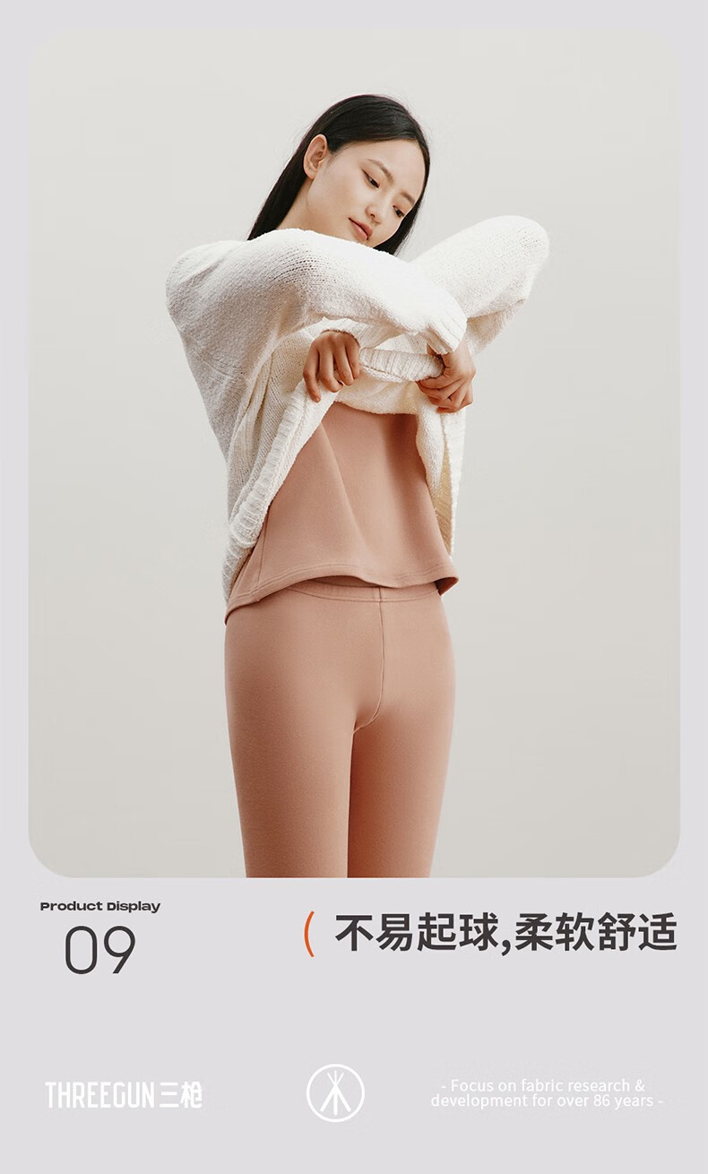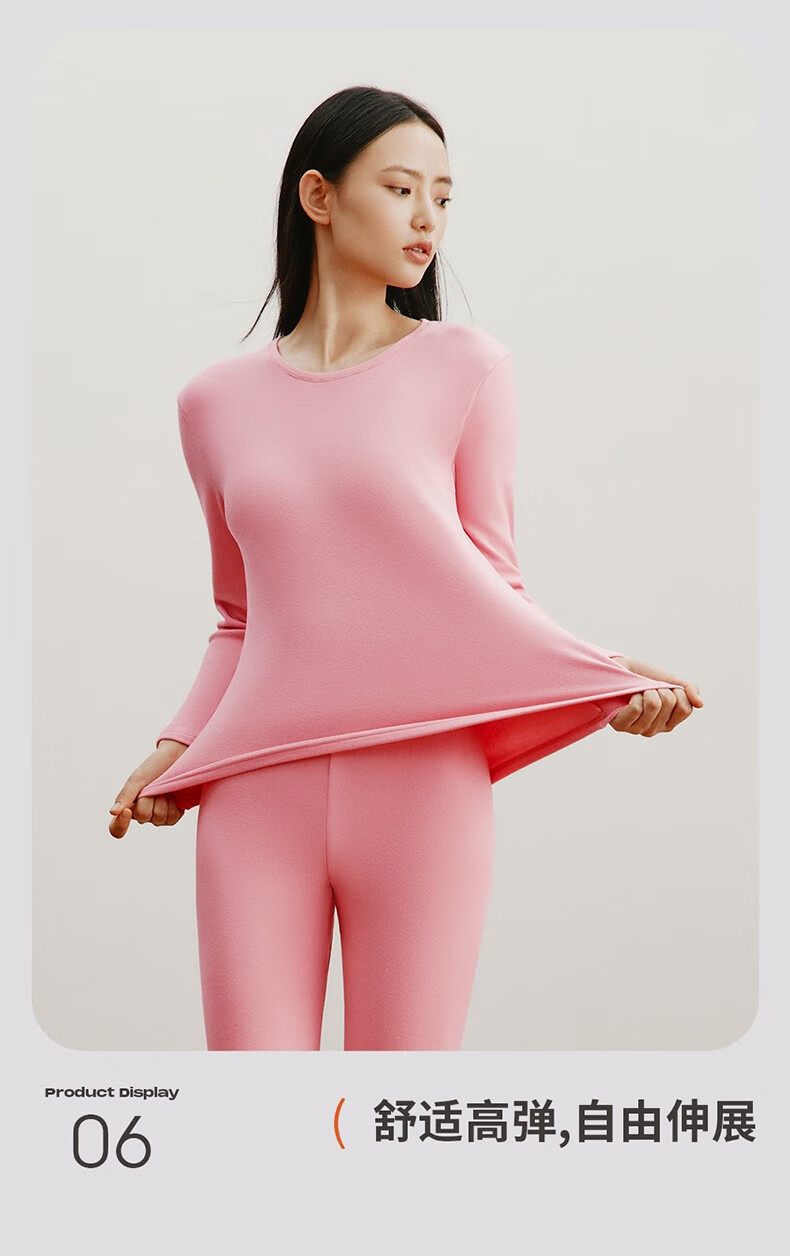 三枪(THREEGUN)朵绒棉秋衣秋裤男纯棉3A抗菌高弹双面拉绒圆领女保暖内衣套装 洛玫红-女款 2XL