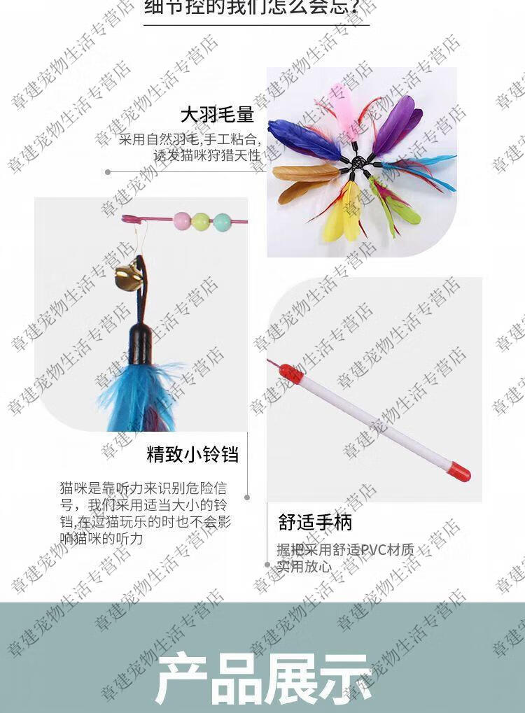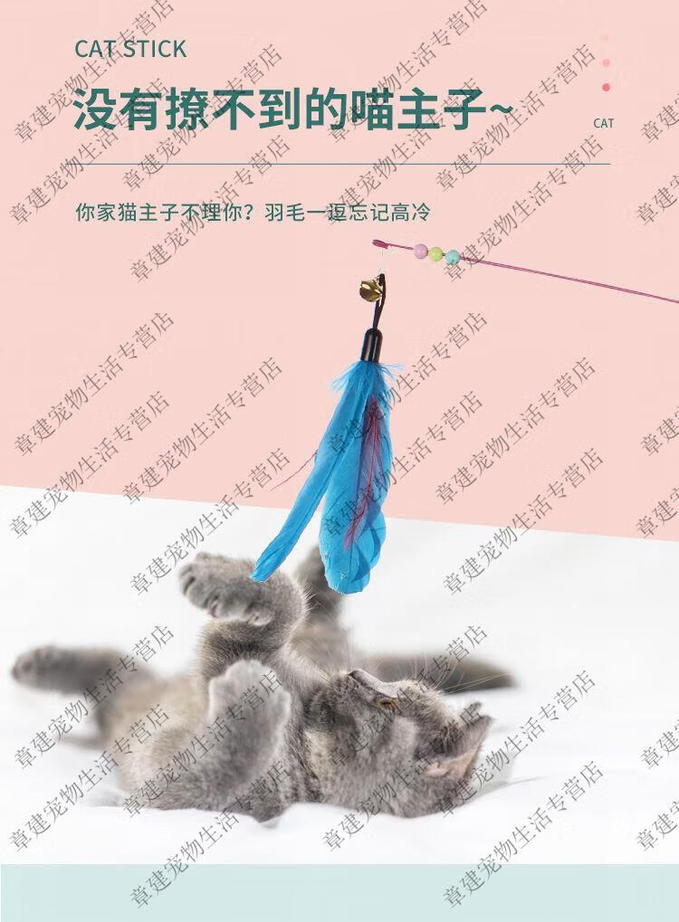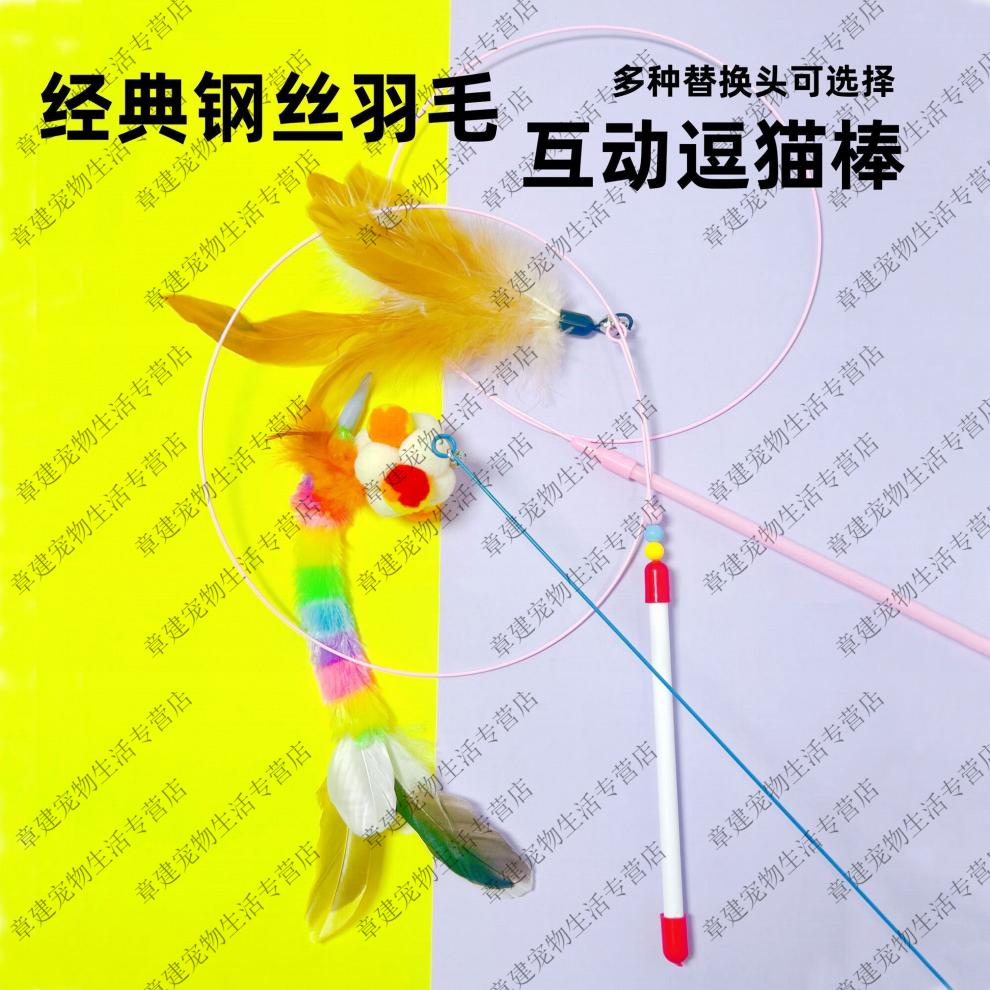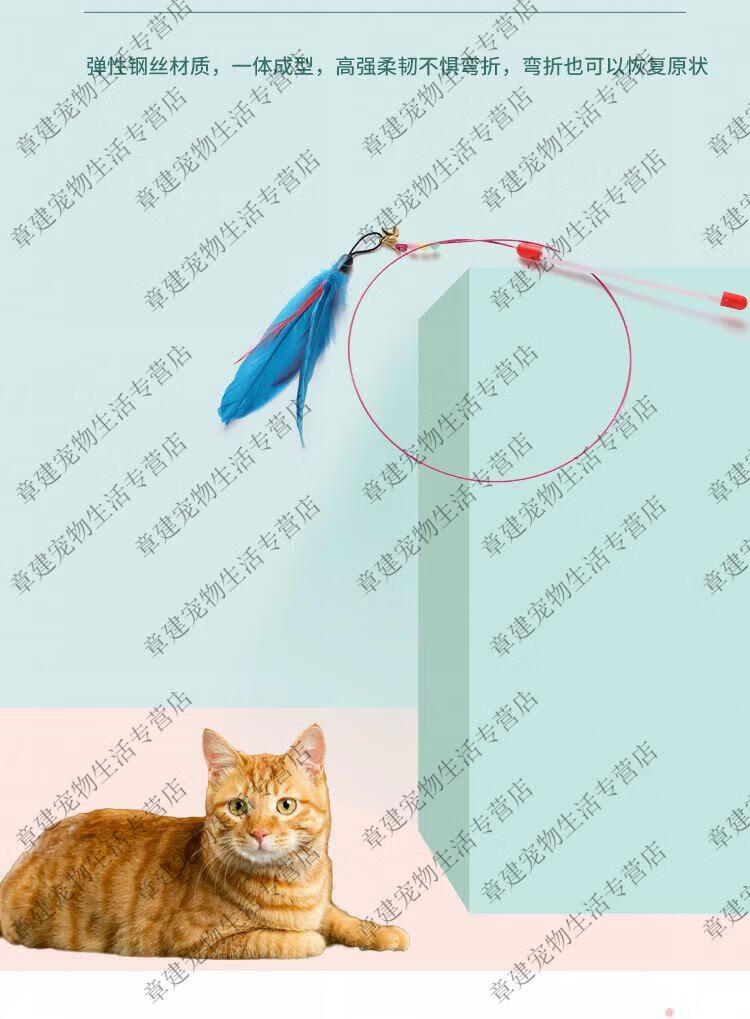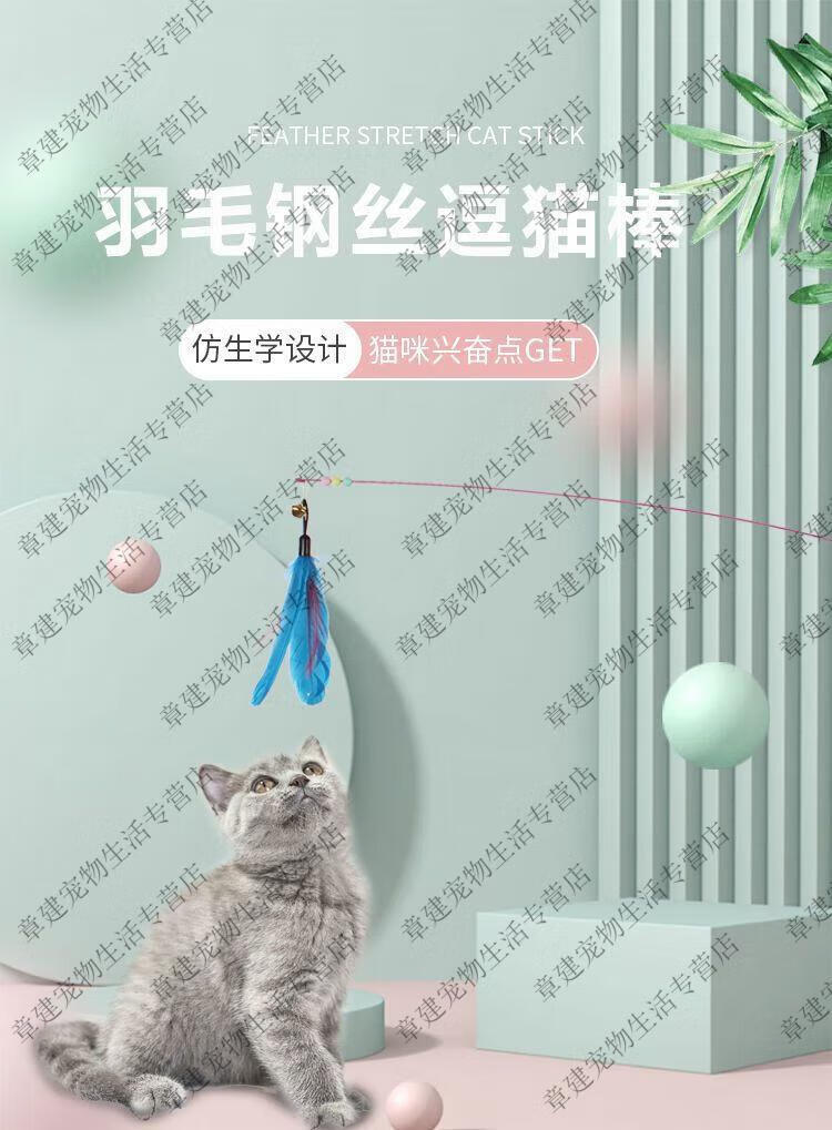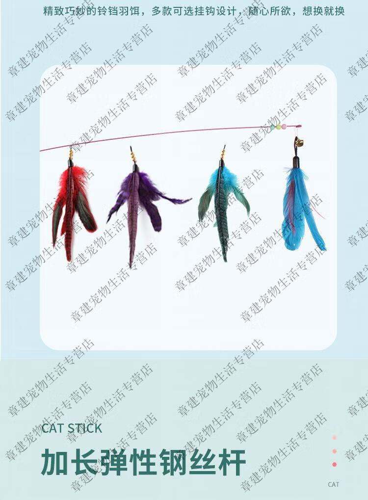 逗猫棒长杆猫猫玩具钢丝彩色羽毛带铃铛耐用0到3个月互动小猫玩具 钢丝逗猫棒+额外替换头*2