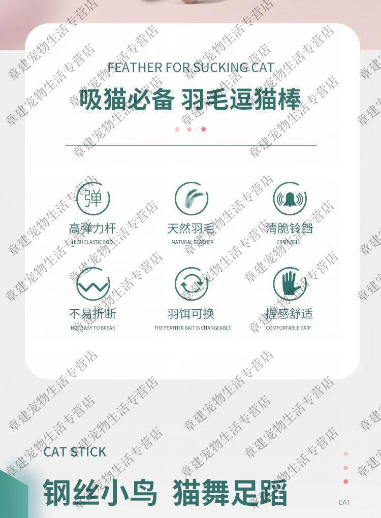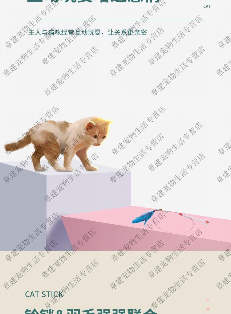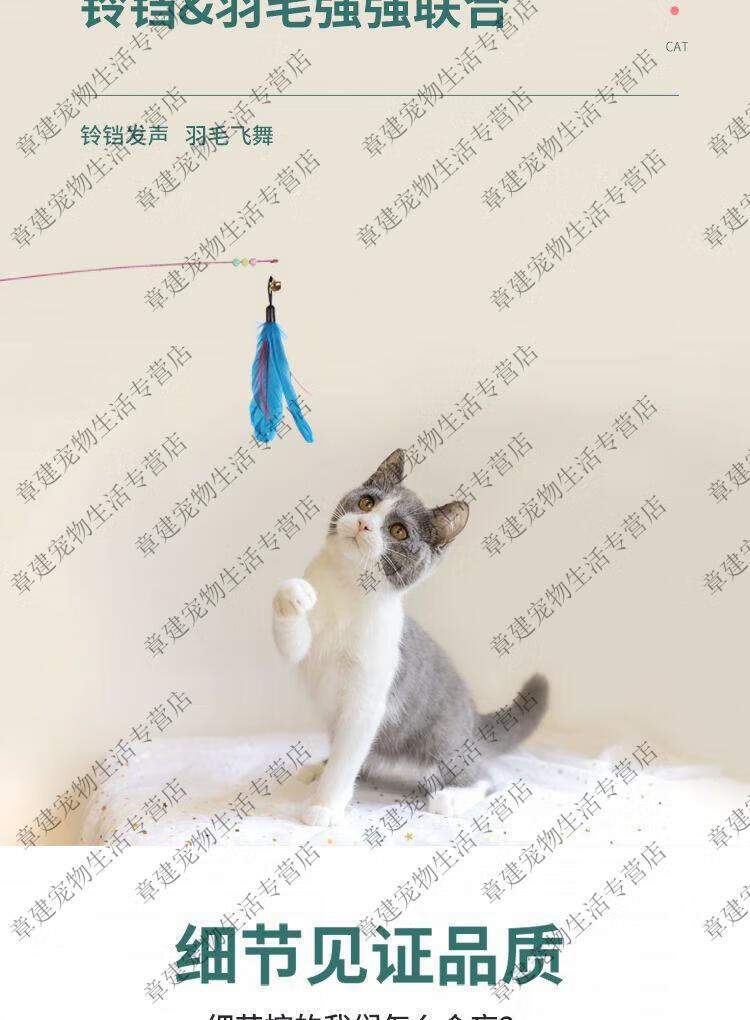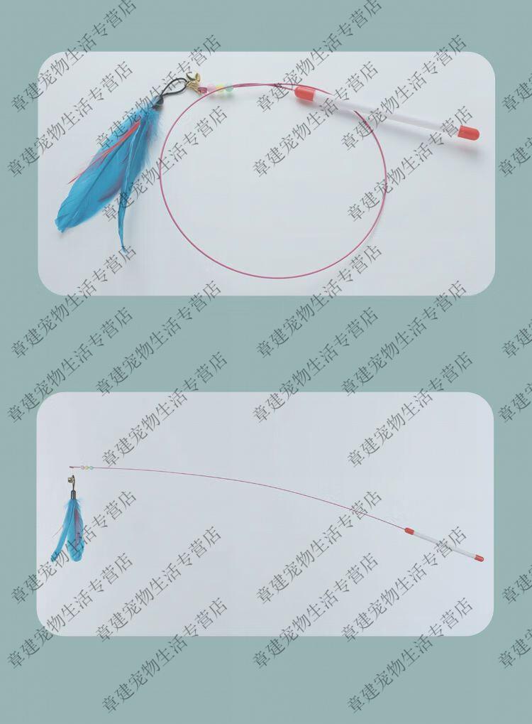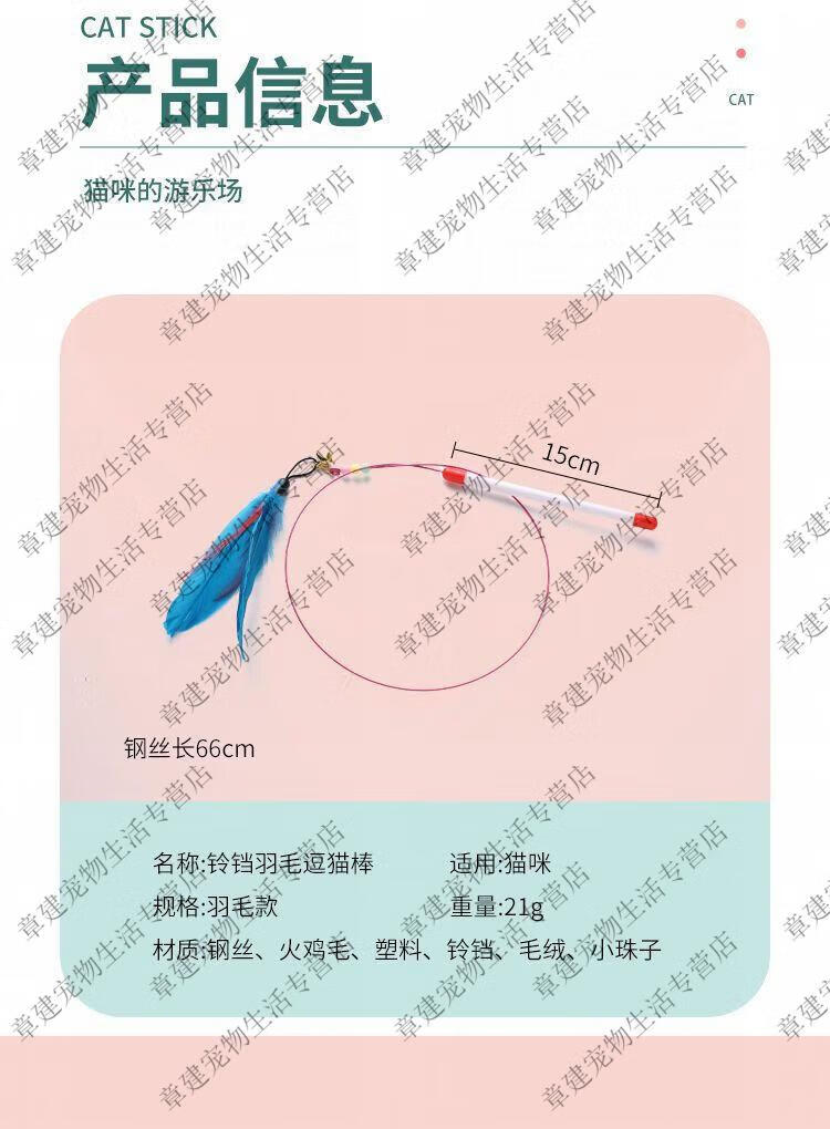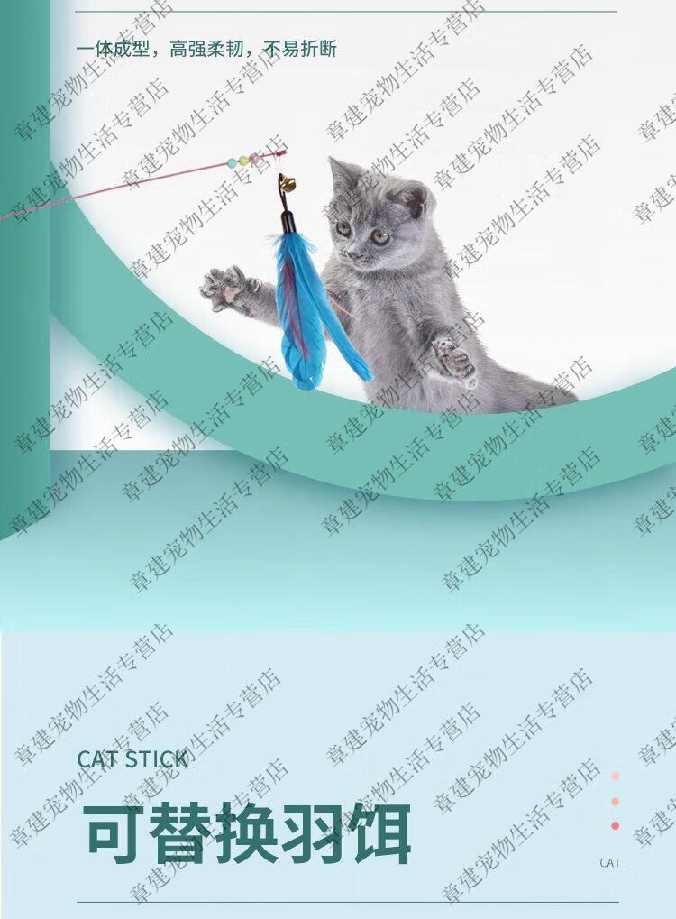 逗猫棒长杆猫猫玩具钢丝彩色羽毛带铃铛耐用0到3个月互动小猫玩具 钢丝逗猫棒+额外替换头*2