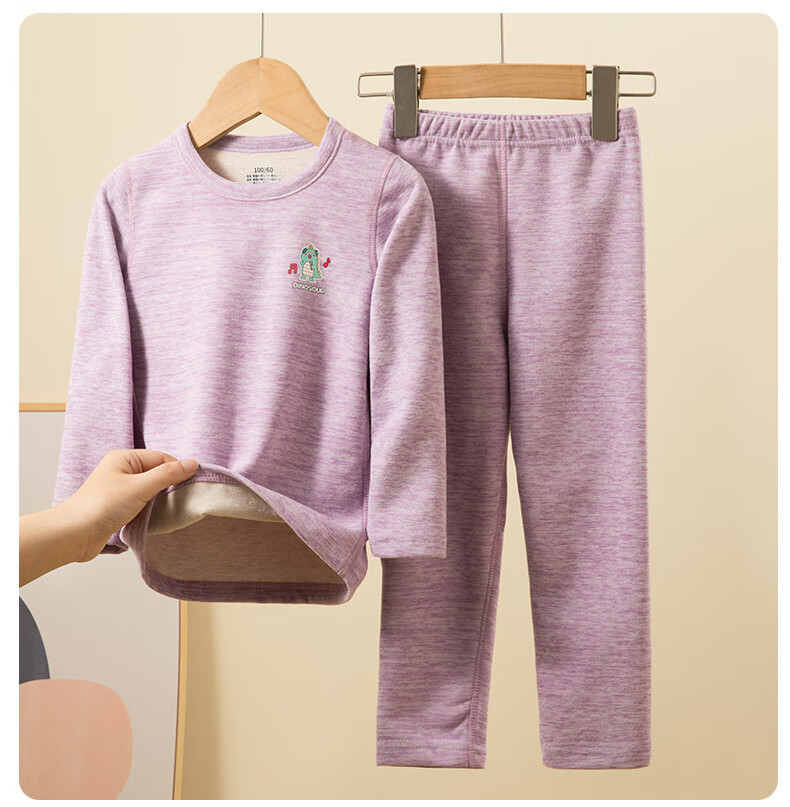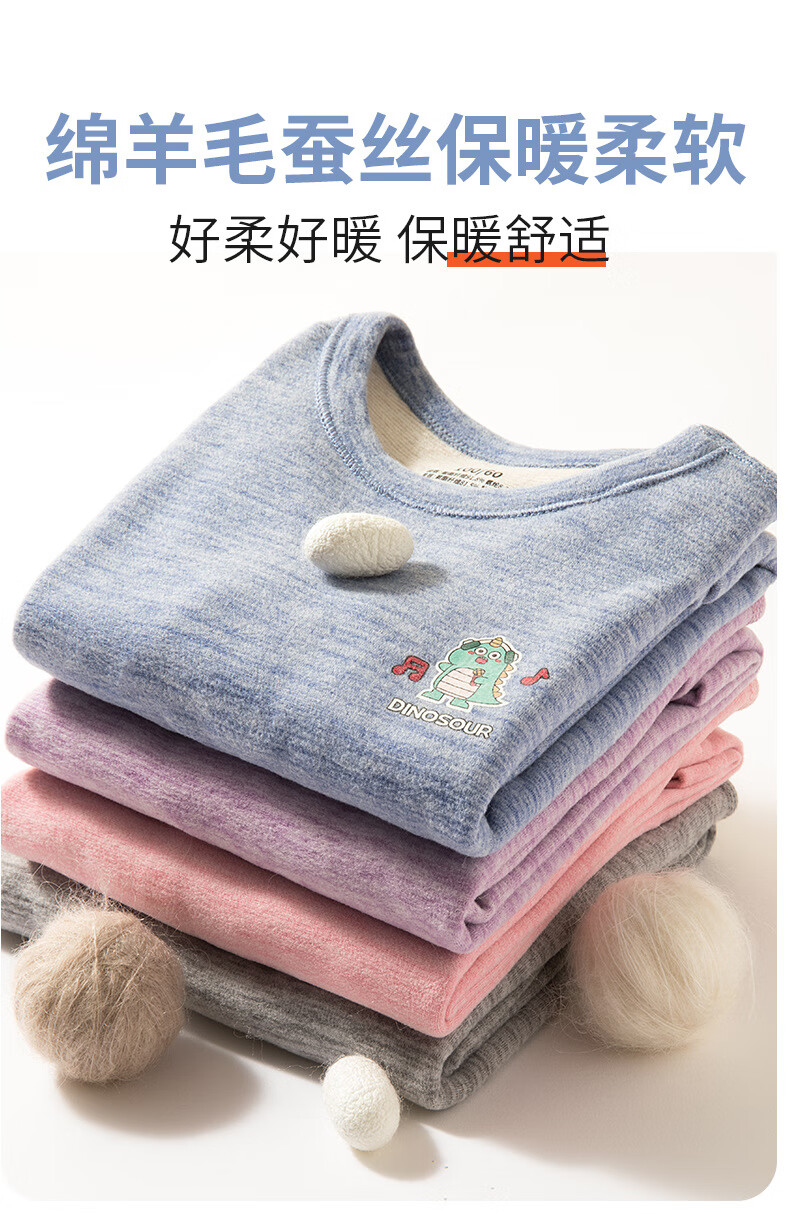有只绵羊毛蚕丝儿童保暖内衣套装双面绒磨毛男女童中大童秋衣秋裤 山羊绒蚕丝恐龙粉色 均码 160cm