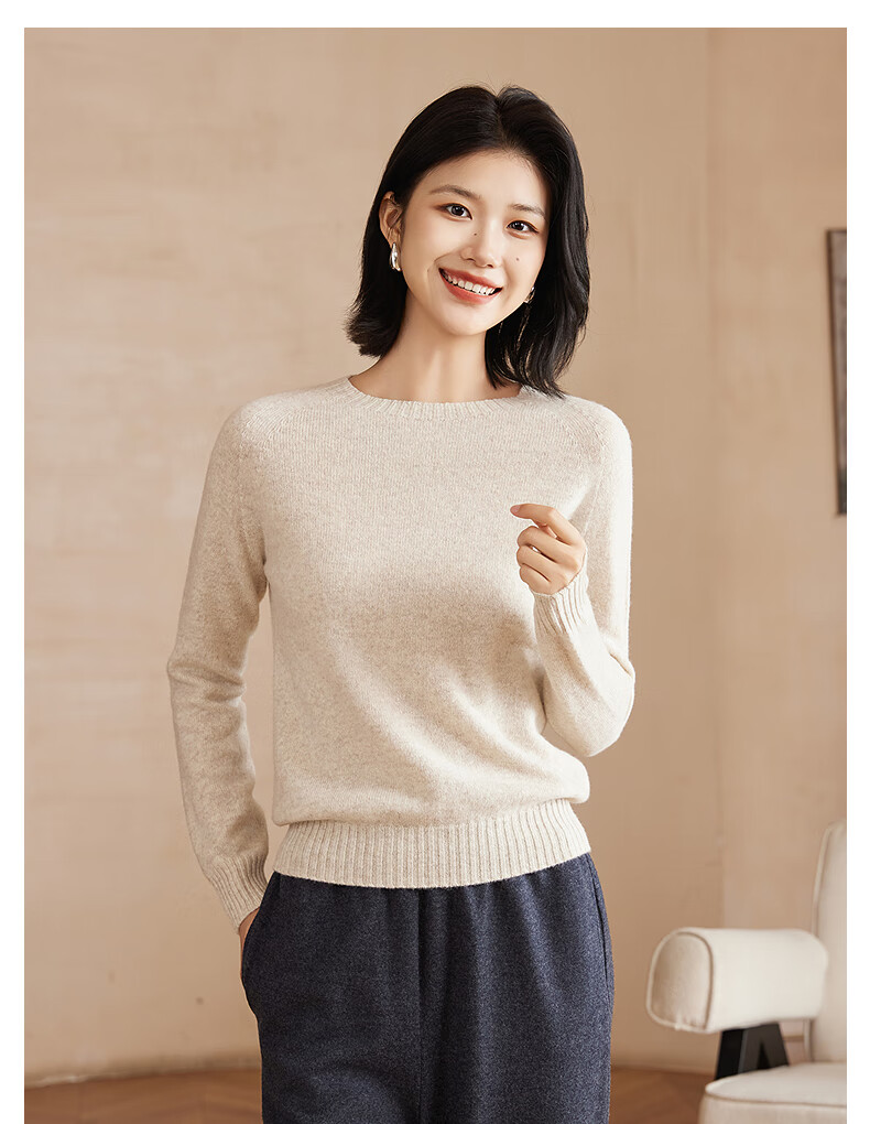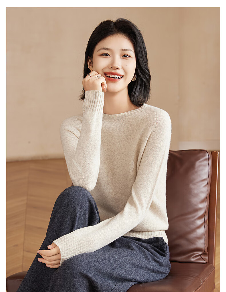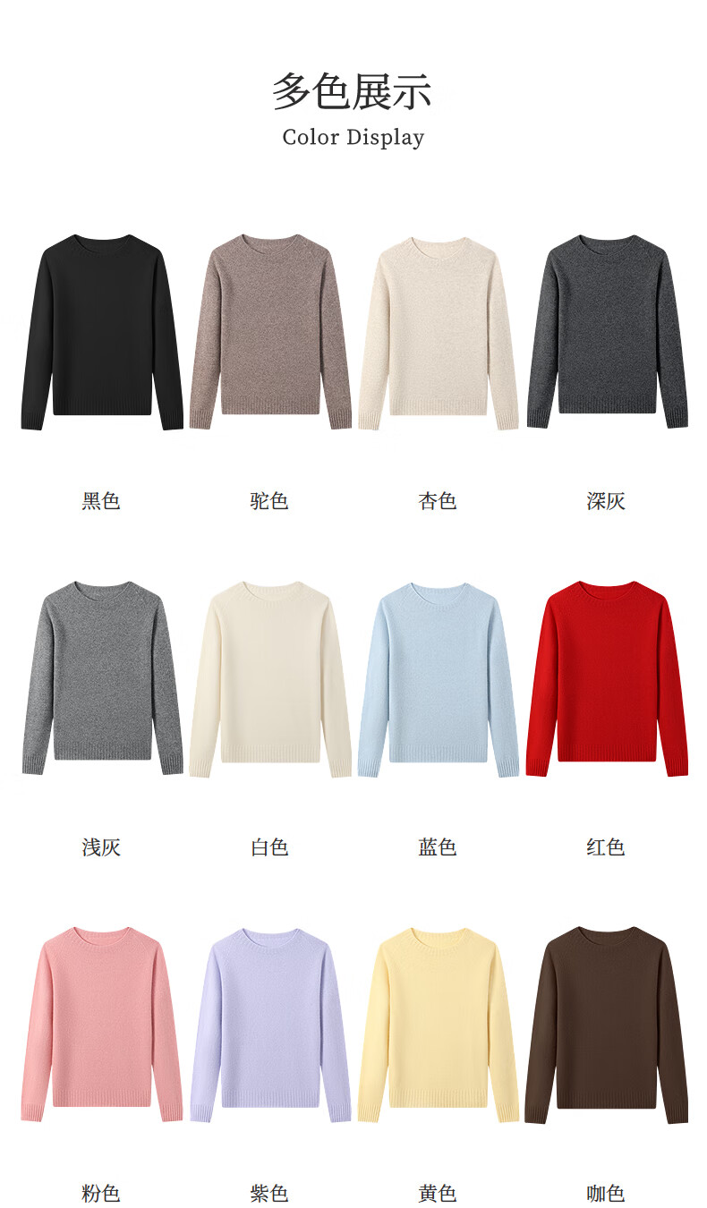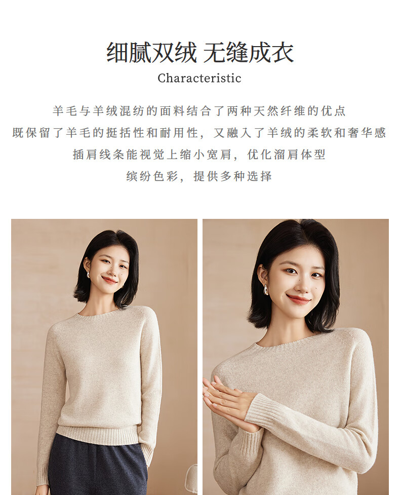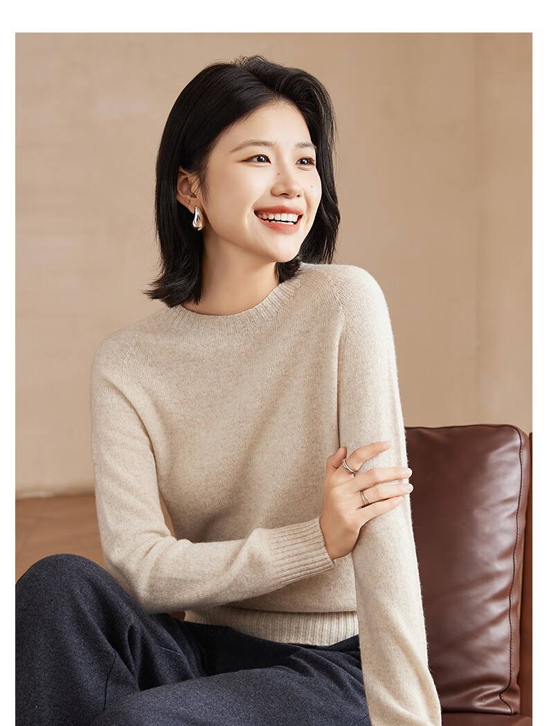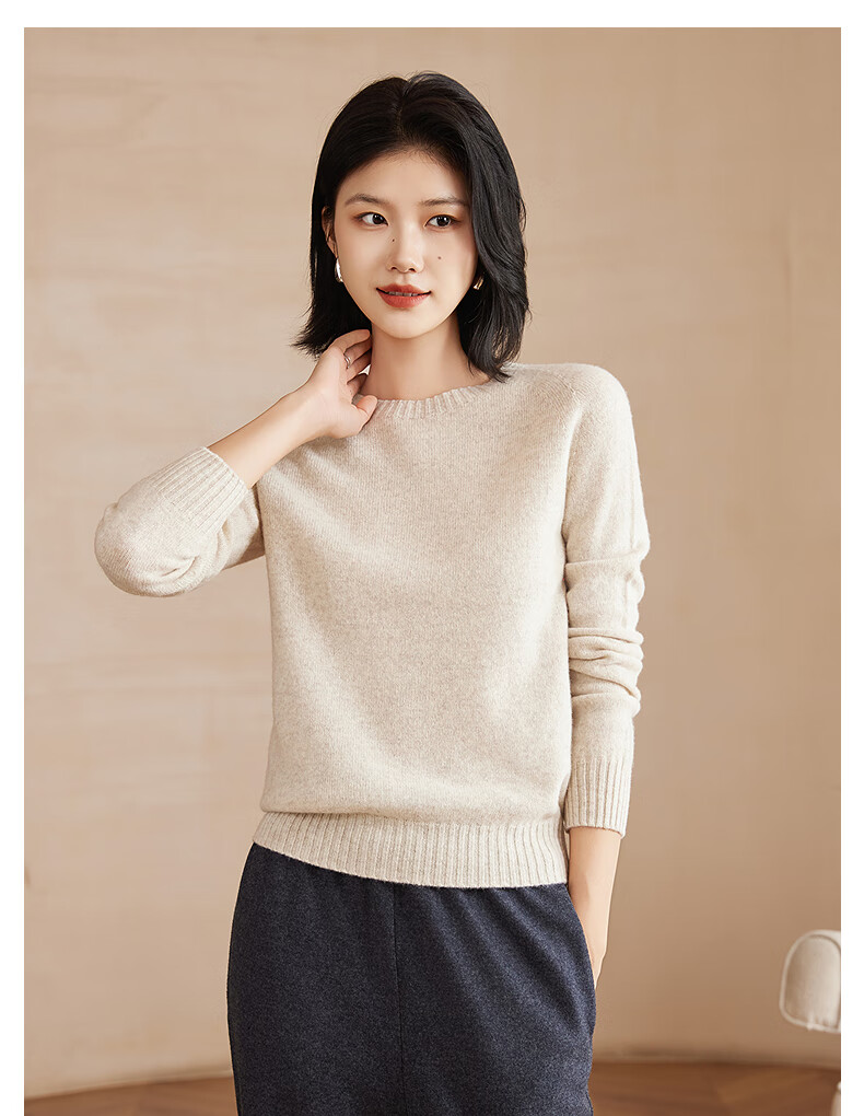 恒源祥【羊毛+羊绒】无缝一体圆领羊毛衫上衣女秋冬基础针织衫女装毛衣 红色 XL /175/96A