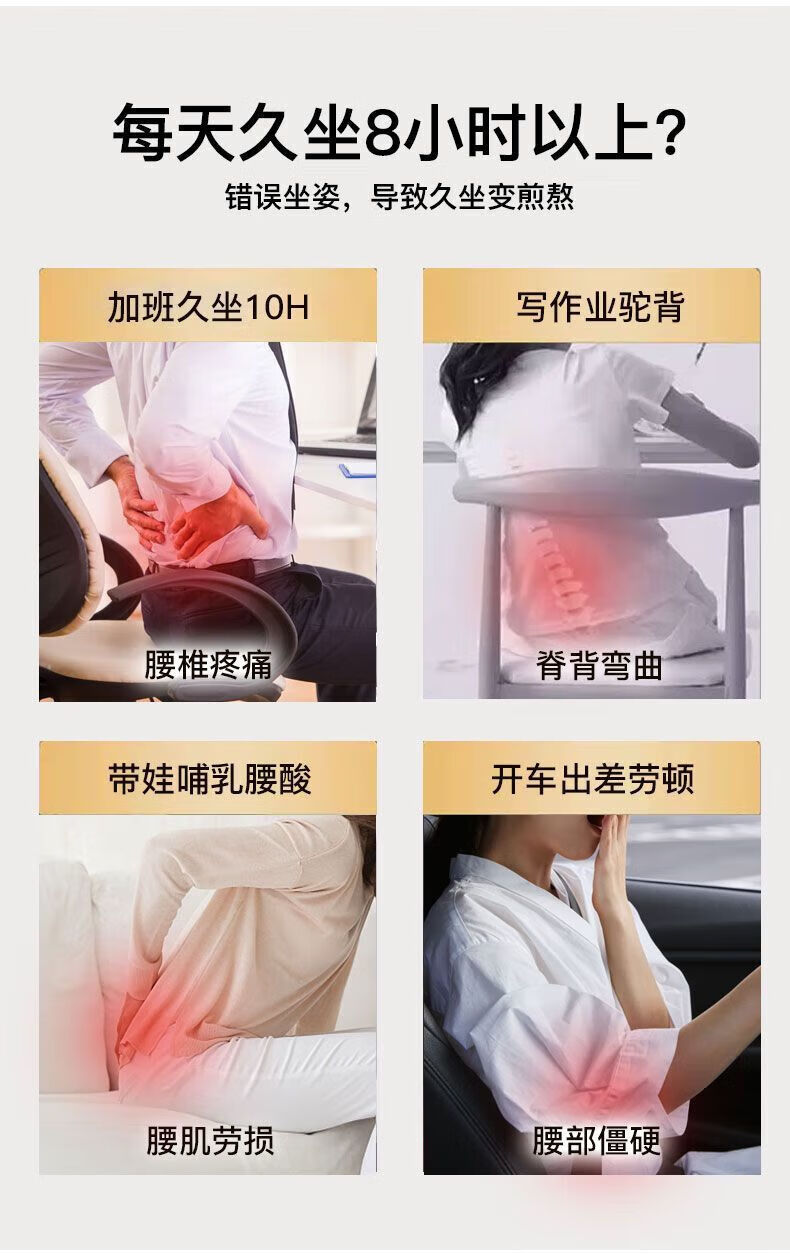 通用腰间盘突出座椅人体工学护腰坐姿椅学习办公护腰撑背久坐不累 尊贵黑(可承受200斤内)