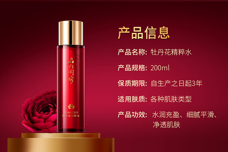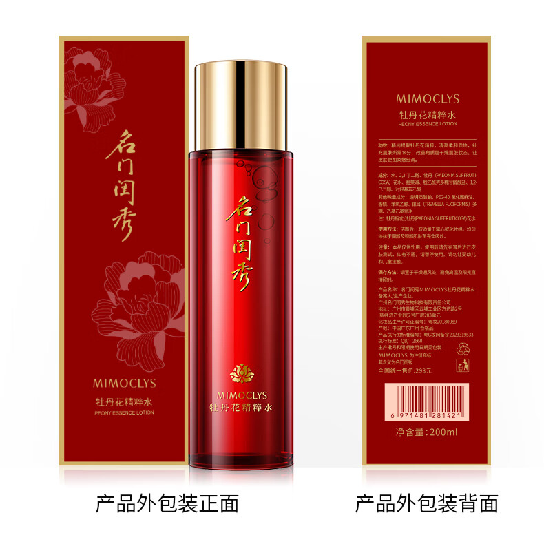 名门闺秀牡丹花精粹水200ml 面部保湿补水深层滋润柔肤水官方正品 牡丹花精粹水200ml